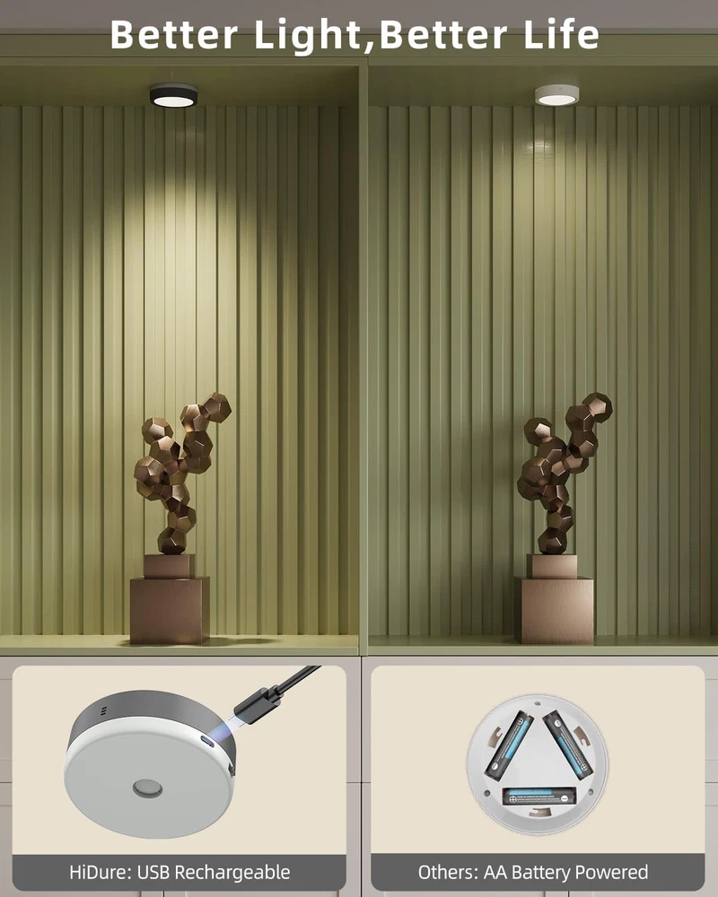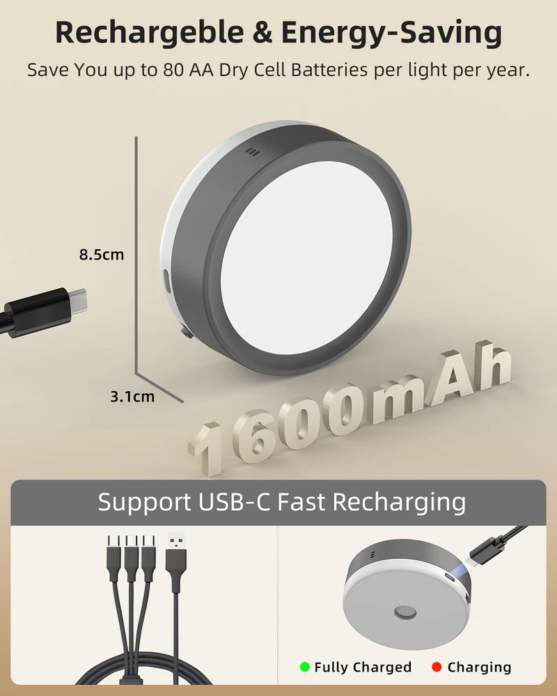 USB Rechargeable Puck Lights With Remote 1600Mah Battery Powered Push Lights New USB Rechargeable Puck Lights with Remote, 1600mAh Battery Powered Push Lights Stick on Magnetic Tap Light for Closet Wireless LED Kitchen Under Cabinet Light Shelf Press Button Light Wall Touch Light Product Description: The USB Rechargeable Puck Lights with Remote offer versatile and convenient lighting solutions for any space. These wireless LED lights are powered by a 1600mAh rechargeable battery, providing long-lasting illumination without the need for permanent wiring. Featuring a magnetic design, they can easily be attached to metal surfaces, making them perfect for closets, under cabinets, shelves, or any area in need of additional light. With a press button and remote control, these puck lights provide easy operation and brightness adjustment for all your lighting needs. Features: USB Rechargeable Battery: Equipped with a 1600mAh rechargeable battery, these lights can be charged via USB, eliminating the need for constant battery replacement. Wireless & Easy Installation: These puck lights are battery-powered and can be installed without any complicated wiring, offering quick setup with magnetic or adhesive backing. Remote Control Operation: Enjoy easy control with the included remote, allowing you to turn lights on/off, adjust brightness, and set lighting modes from a distance. Magnetic Design: The built-in magnets make these lights easy to attach to metal surfaces, perfect for placement in closets, cabinets, or shelves. Touch & Press Button Control: Besides the remote, the lights feature a touch-sensitive button for simple manual operation, providing flexible control options. Bright LED Illumination: These puck lights offer bright, energy-efficient LED light, perfect for highlighting areas like kitchens, hallways, and workspaces. Long-Lasting Performance: With the rechargeable battery and energy-efficient LEDs, these lights provide hours of use on a single charge, making them ideal for everyday use. Compact & Portable: The small, lightweight design makes them easy to move and install wherever extra lighting is needed, adding versatility to your home or office. Light Source Type LED Number of Items 4 Number of Light Sources 10 Lamp Type LED Lamp Assembled Height 1.22 inches Efficiency 66.67 lumens/watt Product Dimensions 3.34 x 3.34 x 1.22 inches Assembled Width 3.34 inches Bulb Features Dimmable Indoor/Outdoor Usage Indoor Brightness 100 Lumen Shipping Fast shipping is very important for us. Our standard USA shipping service is FREE. Your order will be shipped within 1-2 business days upon full payment received. Your order will be delivered within 1-3 business days after the handling time. We only ship to the confirmed address. We reserve the right to cancel any order for any reason at any time. We are not responsible for undeliverable addresses. Returns and payment We offer a 30 days return policy from checkout winning date. FeedBack Your feedback very important to us, after you get your package and you are satisfied with our service please leave us positive feedback If you have any problem with your order / any questions please before leave any type of feedback For any questions, using eBay contact system Please visit our eBay store to check out other items for sale! Thank you for shopping at our store.