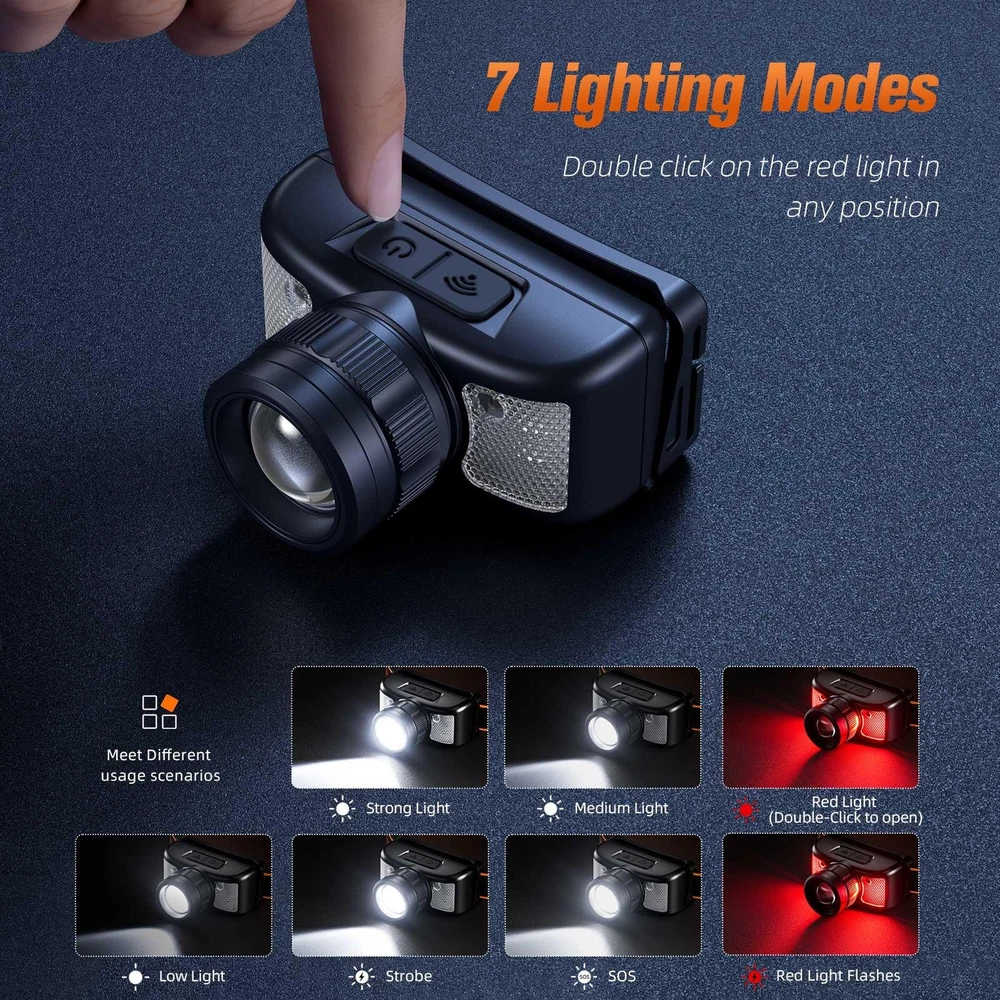 Free and fast shipping , shipping take up 1-7 Business Days 30 Day Return Accepted EASY PAYMENT via PayPal, Credit Card, PayPal Credit, Google Pay... Headlamp USB Rechargeable LED Battery Waterproof Plastic Multicolor Modern Zoom 1. Product Parameter: Model HL91 HL91-X Lamp beads XK XD Power 7W 2W Lumen 310LM 200LM Lighting Mode 5 Modes 5 Modes Charging interface type Type-c Type-c Max Lighting distance about 180 M about 160 M Runtime about 4H about 3H Charging time about 1.5H about 1H Battery 1200mAh 800mAh Material ABS ABS Weight about 92g about 71g Product Size 37*75*65mm L75*W46*H37mm Zoom YES NO 2. Attention about the charging: When you receive the parcel, please use a 5V/1A charger to charge, otherwise it will not charge normally! Any question about cannot turn on the flashlight, please contact us, we will do our best to help you deal it. 3. Directions for use:. 1. Click the switch on the right to turn on the light source; in any gear state, double-click to turn on the red light, and press and hold for 3 seconds at any gear to turn off the light source. 2. Click the switch on the left to turn on the sensing function, and continue pressing to turn off the sensing function. Portable Outdoor Headlight Versatile portable headlights add safety to your outdoor exploration Smart Sensing, Wave The Light Press the top left button to turn on/off the sensor function Zoomable Function Floodlight focusing can be adjusted as desired Type-C Charging The built-in 1,200 mah battery lasts up to about 4 hours Dual Light Source Double click on any gear to turn on red light,and then press for red light flash 7 Lighting Modes Double click on the red light in any position Small Volume Weight only 92g, light and small, easy to carry, a good helper in life Strong Light, Clear Brightness XK lamp beads, 370 lumens light up the night 180m Long-Range Flashlight Up to a range of 180 meters, itluminating every step you take Many Ways of Use It can be used as an EDC flashlight, as a maintenance light, or a headband can be added for running, etc ✔Hope it will help you 1) About Shipment * Pack and ship Our typically dispatches your package within 24 hours (promotional/holiday delays). 2) About Shipping Day * Deliver the package The time limit for normal transportation takes 30-40 days, and some countries only need 7-15 days (please consult customer service). 3) Refund & Replacement & Warranty * Please contact us within 3 days with clear photos or video if you receive goods with problem. * Returns can be requested within the first 15 days of receipt for a refund. Contact us for more return information. * Warranty 1-year manufacturer's warranty is provided with this product. We also offers free technical support and spare parts. 4) Color * Our website presents product items are as close to real color. * But take a different light and display factors, there is a certain color. 5) Feedback * Our success depends on your satisfaction, therefore, your feedback is extremely important to us. * Please leave 5 stars if you are happy with our product and service. Thank you for your support. * Please contact us firstly if you encounter problems, we are more than happy to work with you to solve your problems. REVIEWS The product came very well packaged. I'm very happy. thank you for everything. Seller strongly recommended. This is great! I definitely recommend! Product looks amazing Delivery was fast. Excellent seller, great communication. I advise everyone to buy it!