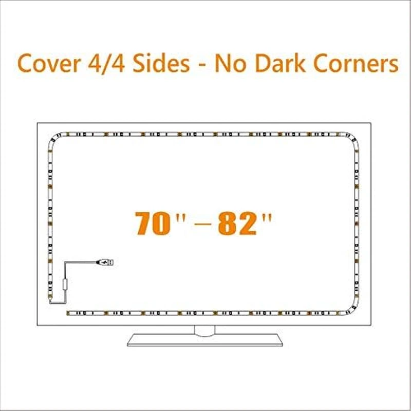 Store New Arrivals Add to Favorite View Feedback Contact Fast deliveries to the customer's home Quality customer service John Make the customers happy! USB TV Backlight Kit for 70 75 80 82 Inches Smart TV Monitor HDTV Work Space Decor - Cover 4/4 Sides behind TV Background Lights Ambient Mood Lighting Description TV lights for better TV viewing or video games experience and Relieve Eye Strain. Help to make a more comfortable environment when long watch watching and playing TV games Custom Version TV Backlight, can cover ALL the four sides of 70 to 82 inch TV Wireless RF Remote, 360 degree and 60ft MAX. control range, 17 colors(include white), with fade/flash mode Powered by USB of your TV, it will ON/OFF with your TV, but can not change with your TV's color; TV lights will remember the last color when off. LED strips itself is black, not noticeable; Easy to install, take 5 to 10 minutes Remote with Encode mode, it can control two more TV lights with one remote; or one remote to control only one TV. Feature: Applications: For 70"-82" behind TV lighting / Monitor Home / Theater decoration light. Size of LED Strip: 18 feet "S" shape featured black LED strips. LED Chip:RGB 3528 SMD LED, high intensity and reliability. Attation: The power of the light is 5W( DC5V, 1A), Please check USB output prior to use. Send email to us if you need any help. Question 1: How can the RGB LED tv light Relieve Eye Strain? Answer: When you are watching tv in a dark room, the tv is a bright and flickering lighting source. Looking directly at the light source for a long time could really cause eye pain and visual problems. It's like your mom may have told you: "Don't get too close to the tv and turn on a light when it's too dark. The tv light will gently light up your room and give you a wonderful watching time; most important, it will take care of your eyes. Question 2: Does the tv light turn on/off with the tv? Answer: For most of all tvs, the light will turn on/off with the tv. For a few kinds of tv, you need to use the remote. Question 3: Does the 3M tape will stay for a long time? Answer: Yes, the tape is 3M VHB tape, it will be more sticky when get heated(Working tv will generate heat). But please remember, clean the back surface of the tv before sticking. Question 4: Is this an RF or IR remote? Answer:This is a RF Wireless Remote(Updated). No need to worried the receiver. Question 5:I bought more than one sets of RF remote TV lights, and I want one remote to control only one TV, how to pair the remote with TV lights? Answer: 1), Unplug all TV lights from your TV. 2), Plug one TV light, and press "ENCODE" synchronously in 3 seconds when plugged. 3),TV light will flash once or twice, then paired. Light Source Type LED Item model number 55 Style Modern Number of Items 1 Power Source USB Powered Number of Light Sources 99 Control Method Remote Theme Movie Controller Type Remote Control Connectivity Protocol Radio Frequency Wireless Communication Technology Radio Frequency Assembly required No Batteries required Yes Material LED strip Number of Batteries 1 CR2 batteries required. (included) Form Factor Strip Lights Package Dimensions 8.98 x 7.32 x 0.47 inches Included Components Wireless remote with battery, USB cable, and adhesive tapes White Brightness 100 Lumens Indoor/Outdoor Usage Indoor Light Color Multicolor Water Resistance Level Not Water Resistant Item Weight 4.6 ounces Connectivity Technology Radio Frequency Special Feature Remote Controlled, Adjustable Color Temperature 5000 Kelvin Color Multicolor Is Discontinued By Manufacturer No Wattage 5 watts Batteries 1 CR2 batteries required. (included) Voltage 5 Volts Manufacturer Tech LTD Size For 70-82 inch TV ABOUT US We offer the best prices around on high quality products. Our E-store includes media such as books, movies, music and games while offering electronics, toys, sporting apparel, clothing, tools, general home, garden items and more. SHIPPING We are always working hard to ensure your package arrives as soon as possible. Please understand that some factors like weather, high postal traffic, and the performance of shipping companies are outside of our control. We offer free shipping to the lower 48 states and ship within 2 business days of payment, usually sooner. We do not accept P.O. Boxes. Please provide a physical address. For shipping outside of the continental USA, we only use eBay's Global Shipping Program. The item is shipped to KY and then sent to the rest of the world. International customers are responsible for all duties and taxes. Continue to 'check out' to calculate costs for shipping the item to your country. Messages regarding eBay's Global Shipping Program MUST be directed at eBay EXCLUSIVELY. RETURNS We offer a 30-Day Return Policy on items in which you are not completely satisfied with. You have the option of a full-refund or an exchange of the item. No returns are available on items shipped outside of the USA PAYMENT We accept PayPal. CONTACT US This page content is yet to come Please ad us to your favorite seller and visit again later Thank You CUSTOMER SATISFACTION We try our very best to make sure every customer is completely satisfied. If there's a problem, message us! We're happy to help. WE ACCEPT