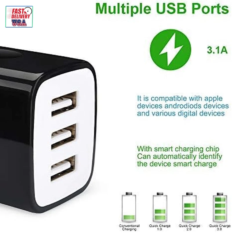 Store New Arrivals Add to Favorite View Feedback Contact USB Wall Charger, 3-Port Travel Smartphone Quick Charger 2 Pack 3.1Am Block USB Adapter Power Plug Charging Station Box Compatible with Iphone 16/15/14/13/SE/12/11 Pro,Ipad,Samsung,Usb Plug Description Item model number PT-WC-20 Whats in the box 2 x Wall Mutilple Port Charger Adapter Connectivity technologies USB Mounting Type Wall Mount Color 3Port-Black Form Factor Compact and Portable Country of Origin China Connector Type USB Type C Other display features CE Compatible Devices Cellular Phones Item Weight 2.89 ounces Connectivity Technology USB Input Voltage 240 Volts Special features Travel Special Feature Travel Package Dimensions 5.04 x 4.33 x 1.34 inches Compatible Phone Models Samsung Included Components 2 x Wall Mutilple Port Charger Adapter Smart Port Design: 3 muti port can charge one tablet and two smartphone or 3 smartphones at the high speed, you can get 3 digital devices with 5V input charged at once for total efficiency, automatically detects your devices to deliver optimum charging speed. Charger: Output: DC 5V 3.1Amp; Input: AC 100V - 240V (U.S. & World Standard).Best replacement for original charger, work with any device with a USB port. Safe & Quality Reliable: The charger has protection system against over charging, over currents, and over heating. The charger will automatically stop charging when power is full,which can maximumly protect your device. Compatible with multi-species USB devices, Such as iPhone16/16 Pro/16 Pro Max/16 Plus, iPhone 15/15 Pro/15 Pro Max/15 Plus, iPhone 14/14 Pro/ 14 Pro Max/14 Plus, iPhone 13/13 Mini/13 Pro/13 Pro Max, iPhone12/12 Mini/12 Pro/12 Pro Max, iPhone 11/11 Pro/11 Pro Max, iPhone SE 1/2, iPhone X/XR/XS/XS Max, iPhone 8/8 Plus, Samsung Galaxy S24/S24 Plus/S24 Ultra/S24FE/S23/S23 Ultra/S23+/S22/S22 Ultra/S22+/S21 Ultra/S21/S20 Ultra/S20/Note 20/Note 20 Ultra/Note 10 +/S10/S10e/S10+, LG V60 V50, and More USB devices. Lightweight and portable design: allows for easy to store and convenient to put anywhere in your home, simply connect to the USB cable and plug to the wall, it very easy for you to take it out for travel or outdoor activities, You can share them with your family or friends. 3-Port Quick Charge 3.0 USB Wall Charger Adapter Cube 3.1A Home Travel USB Wall Charger Specification: Material: Plastic outer shell USB Output: 3 USB Port Input: AC100-240V 50/60Hz Output: DC 5V-3.1A Compatible With any USB-enabled devices -iPhone16/16 Pro/16 Pro Max/16 Plus -iPhone 15/15 Pro/15 Pro Max/15 Plus -iPhone 14 /14 Pro /14 Pro Max /14 Plus -iPhone 13 Pro Max /13 Pro /13 /13 mini -iPhone 12/12 Mini/12 Pro/12 Pro Max11/11Pro/11Pro Max/SE/ XR/XS/XS MAX/X/8 -iPad Air 2,iPad Pro, Mini 2/3/4/5, iPod Touch -Nexus 6P 5X, One-plus 2, One-plus One, HTC, LG, Nokia -Samsung Galaxy S24 S24 Plus S24 Ultra S24FE S23 S23+ S23 Ultra S22 S22+ S22 Ultra S21 FE S21 Ultra S21 Plus S21 S20 FE S20 FE S20 S10 S10e10+,Samsung tablets - Smart-phones,E-book Readers,GoPro,Bluetooth Speaker,Nook Hd+, and more Product Features 1.Mutl Port Design :Allow you charge your iPad/tablet and iPhone/smartphone at the same time, and charge speed up to 3.1 Amps, provides plenty power to 3 devices. 2.Fast charging: Three-USB Allows you to charger Three mobile devices simultaneously at high speed.Save more time. 3.Light and portable: This compact USB wall charger is designed to fit in your pocket, bag, or carry-on bag. 4.Multi-use: This charger works just as well as home as it does in the office or while travelling. 5.Using simple: Very handy to use, the small form makes it fit right in the standard socket, Pocket size, Compact, Portable, lightweight, durable, easy to take anywhere. 6.Safe and Reliable: Charging begins and ends automatically when the battery is full. Package List 2 x Wall Mutilple Port Charger Adapter(White) ABOUT US We offer the best prices around on high quality products. Our E-store includes media such as books, movies, music and games while offering electronics, toys, sporting apparel, clothing, tools, general home, garden items and more. SHIPPING We are always working hard to ensure your package arrives as soon as possible. Please understand that some factors like weather, high postal traffic, and the performance of shipping companies are outside of our control. We offer free shipping to the lower 48 states and ship within 2 business days of payment, usually sooner. We do not accept P.O. Boxes. Please provide a physical address. For shipping outside of the continental USA, we only use eBay's Global Shipping Program.The item is shipped to KY and then sent to the rest of the world. International customers are responsible for all duties and taxes. Continue to check out in order to calculate costs for shipping the item to your country. Messages regarding eBay's Global Shipping Program MUST be directed at eBay EXCLUSIVELY. RETURNS We offer a 30-Day Return Policy on items which you are not completely satisfied with. You have the option for a full-refund or an exchange of the item. No returns are available on items shipped outside of the USA. PAYMENT We accept PayPal. CONTACT US This page content is yet to come Please ad us to your favorite seller and visit again later Thank You CUSTOMER SATISFACTION We try our very best to make sure every customer is completely satisfied. If there's a problem, message us! We're happy to help. WE ACCEPT Copyright © 2021 AutoDS. | All Rights Reserved