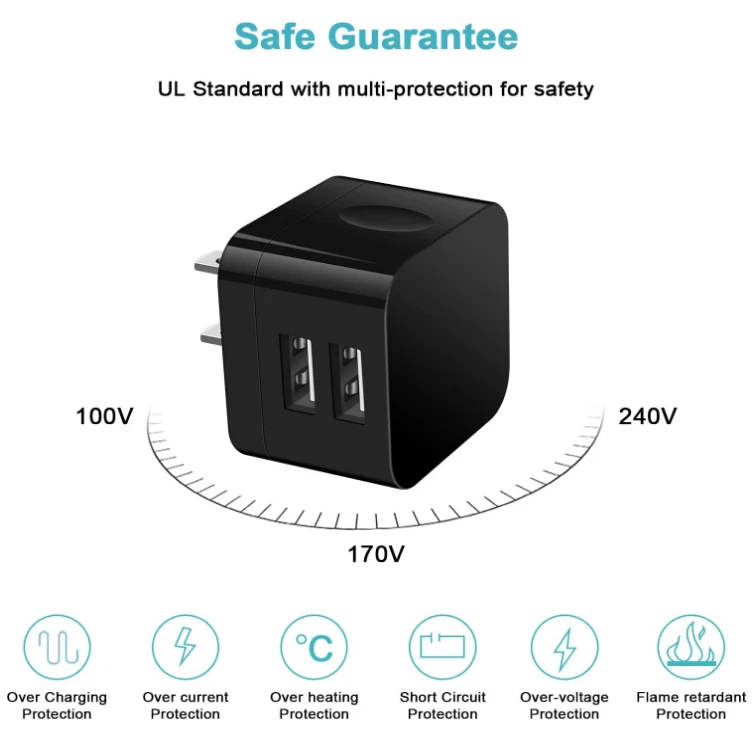 USB Wall Charger,USB Plug,2Pack Flat USB Charger Block Charging Low Profile USB Cube Charger Box Right Angle Plug Adapter for iPad Pro,iPad Mini,iPad Air 1/2/3,iPhone 15 14 13 12 11 Max,Samsung,Pixel Brand VIFIGEN Connectivity Technology USB Connector Type USB Type C Compatible Devices Smartphones, Headphones, Tablets, Game Consoles, Smartwatches Compatible Phone Models iPhone 15/ iPhone 15 Pro/ iPhone 15 Pro Max/ iPhone 15 Plus, iPhone 14/14 Pro/14 Pro Max/14 Max, iPhone 13/13 Pro/13 Pro Max/13 Mini, iPhone 12/12 Pro/12 Pro Max/11/SE/X/XR/Xs/Xs Max/8/8 Plus/7/7/6/6S/Plus, iPad, iPad air/ 2, iPad mini 4 3 2 1, iPad Pro; iPad Pro 12.9 (2021/ 2020/ 2018), iPad Pro 11 inch, iPad Air 4th, iPad Mini 6th; Samsung Galaxy S24 Ultra 5G, S24, S24 Plus, S23 Ultra 5G, S23, S23 Plus, S22 Ultra 5G, S22, S22 Plus, S21 Ultra, S21, S21 Plus, S20 FE 5G, S20 Ultra, S20, S20 Plus, S10, S10e, S9, S8, Note 20 Ultra, 20,10, 9,8, Galaxy A15 5G, A54 5G A55 A35 A14 5G,A13 5G A23 5G,A53 5G, A24 A34 A73 F54 F34 A12,A32, A03s,A04s, M34 M14 M52,M42, Z Flip 6 5 4 3, Z Flip, Z Fold 6 5 4 3 2; Google Pixel 8a, 8 Pro, 8, 7a, 7 Pro, Pixel 7, 6a, 6 Pro, Pixel 6, Pixel 5, Pixel 4 XL, Pixel 4, Pixel 3 XL, Pixel 3; Motorola Moto G 5G Plus,G Stylus 2022,G10,G9 Play,G8,G7 Plus/Play/Power,G6, Edge,Edge X30,Edge S30; LG G9 ThinQ G8 G8X G8S, G7 ThinQ, G6, G5, Stylo 4, V20, V30, V35, V30S, V40 ThinQ Plus; OnePlus 10 Pro,9RT 5G,9 Pro,9,9R,8T,8 Pro and more.iPhone 15/ iPhone 15 Pro/ iPhone 15 Pro Max/ iPhone 15 Plus, iPhone 14/14 Pro/14 Pro Max/14 Max, iPhone 13/13 Pro/13 Pro Max/13 Mini, iPho… See more Included Components 2 USB wall charger adapters Special Feature Fast Charging, Short Circuit Protection, Lightweight Design, Automatic Off, Travel Color Black Input Voltage 240 Volts (AC) Mounting Type Wall Mount About this item 【Downward Plugs Design】The flat usb wall plug is flat to the wall and the USB ports are oriented vertically in the bottom, so the cables can go downward instead of straight out of the wall, right angle usb plug reduces the chance of breaking off and makes cords easier to get out of way. 【Perfect Size】These low profile usb wall chargers are slim and sleek. Because of where the ports are, it can easily fit into wall outlets behind furniture without kinking your cables, which is very helpful at your house to solve your space issue. The side grooves of usb cube help you to plug it in as you side your hand down between the wall and your nightstand. Makes things so much more convenient! 【Dual Port Charger】Flat USB wall charger having two USB plug ins available allows you to charge your iPhone and iPad at high speed simultaneously. 90 Degree outlet adapter charging cube output is 5V/2.4amp (not support Qualcomm Quick Charge 3.0), 3X times faster than conventional charger box, more time saving. 【Universal Compatibility】This iPhone charger block fits for iPhone 15 Pro Max/15 Pro/15 Plus/15, iPhone 14/14 Pro/14 Pro Max/14 Plus, 13/13 Pro/13 Pro Max/13 Mini,12,11,SE,Xs Max/Xs/XR/X,8 7 6 6S, iPad, Samsung Galaxy S24 Ultra S24 S24+ S23 FE A15 5G A14 A54 A13 A25 A34 A24 A23 A53 A03s A04s S23 S22 S21 S20 S10e S10 S9 S8 Plus,Note 20 10 9, Google Pixel 8a 8 Pro 8 7a 7 Pro/7/6a/6/6 Pro/5 XL/5/4 3 2 XL, OnePlus 9 Pro 9 8 7 6T 6 5 3 2, LG G8X G8 G7 V50 V40 V35 V30s G9, Moto, and all USB plug ins. 【What You Get】Comes with 2 Packs USB wall charger adapter (Black), great for sharing with your families and friends. . We offer FREE shipping on all orders! . We ship within Five business days of payment, usually sooner. . We use a selection of shipping services such as UPS, FedEx, USPS etc. . We only ship to the lower 48 states, no APO/FPO addresses or PO Boxes allowed. . Local pickups and combined shipping options are not provided at this time. . Your satisfaction is a wonderful reward for our efforts. Please assist us by leaving a positive review if you feel pleased with our service. . In the event that you encounter any difficulties related to your order, please do not hesitate to reach out to us directly through the Messaging system on the Ebay platform. Kindly consider opening a COMPLAINT or a RETURN REQUEST as a last resort, only after all other possible measures have been attempted and we have been unable to provide you with assistance. . We will get in touch with you within 24 hours and make every effort to ensure your satisfaction. . Please rest assured of our service quality.