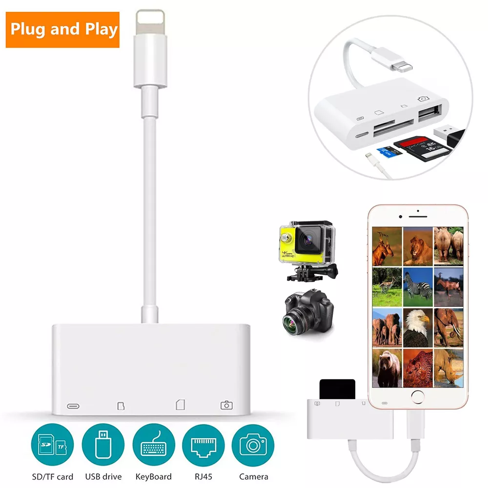 USB to Card Reader Adapter USB Camera Micro SD Memory Slot for iPhone iPad iPod Description: Through the 4 in 1 Audio Camera Connection Kit ,its incredibly easy to download photos from your digital camera to your iPad .It gives you two ways to import photos and videos.One is ti use USB cable ,the other is to read form SD/Micro SD card directly. The Connection Kit supports standard photo formats,such as JPEG and RAW etc. Besides,it supports PC keyboard input as well as imports photos form USB flash disk to iPhone/iPad/iPod Touch. Moreover,it allows you to charge iPhone/iPad/iPod Touch.via a micro USB cable. Specification: Operating Voltage:3.3V Operating current:<100mA Interface:L/SD Card/TF Card/USB Receptacle W/R Speed:USB2.0 Speed(14MB/S-16MB/S) Compatibility:Compatible with iOS 9.1 iOS 10 iOS 11 or later Please note: 1. The 4 in 1 Camera Connection Kit has 4 ports.However,USB port,SD port and Micro SD port can't be used at the same time.The port can be used together with any of above 3 ports.For example,you can charge iPhone/iPad/iPod Touch and put keyboard type at the same time. 2. If USB flash disk/Micro SD card/SD card directly use with this kit,you must create "DCIM" folder and named the pictures like for example you want to import pictures from your USB flash disk,you need to creat a file in your usb flash disk and named it "DCIM",then you need to copy your pictures to this folder and named them as after that you can plug in the adapter and import pictures to your phone. 3. This item can only transfer pictures and video from SD card to iphone/ipad. It is one-way transmission and can't transfer data from mobile phone to SD card. Package Include(Retail Packaging): 1 x 4 in 1 to Camera card reader 1 x User Manual Feedback: 1) Your Feedback is really important to us,please take a few seconds to leave great feedback if you are satisfied with our product or service, thank you so much! 2) We always offer the lowest price for best goods and service to you. 3) Please contact us before leaving neutral(3 stars) or negative(1-2 stars) feedback.We will try our best to solve the problem and leave you a happy shopping mood here. Thank you!