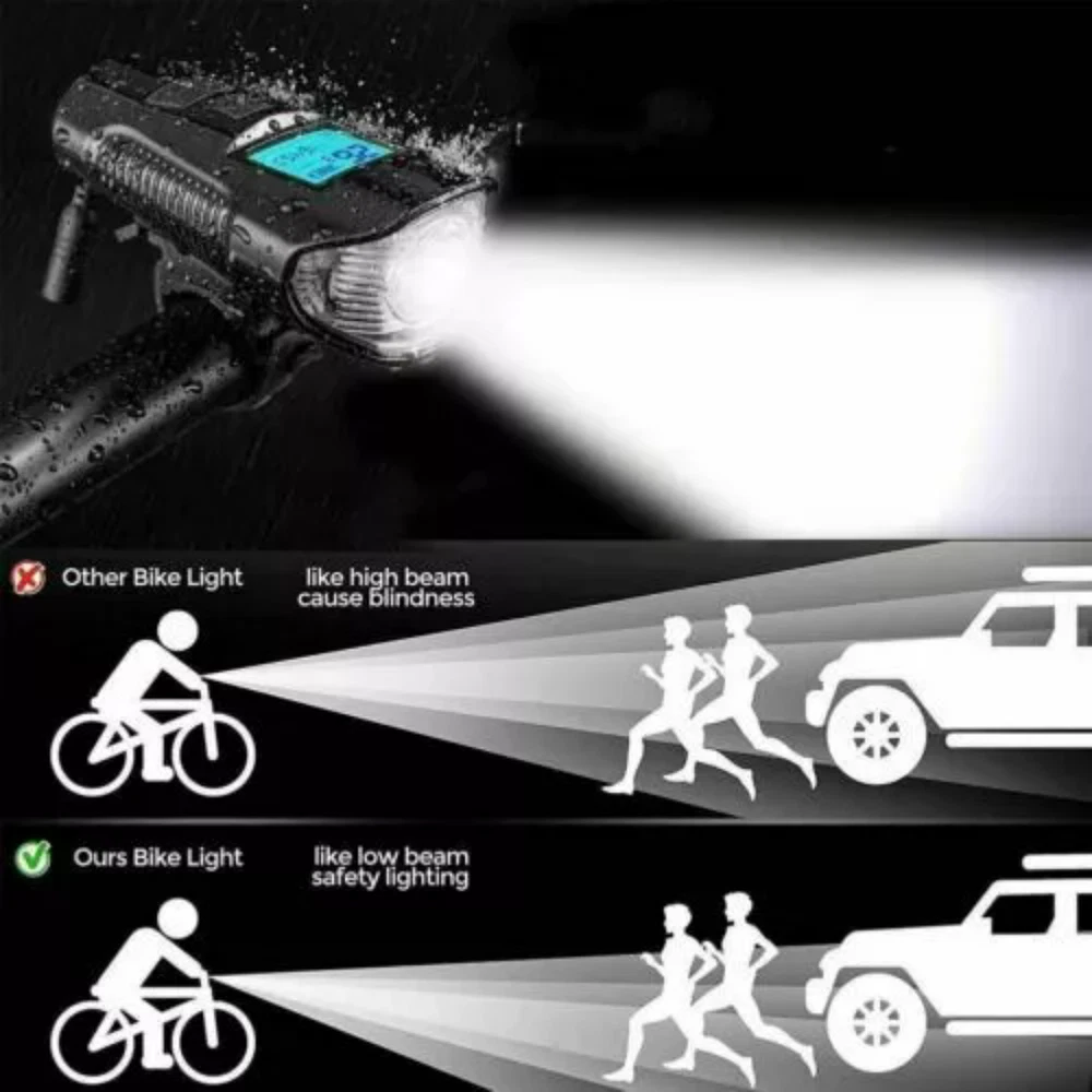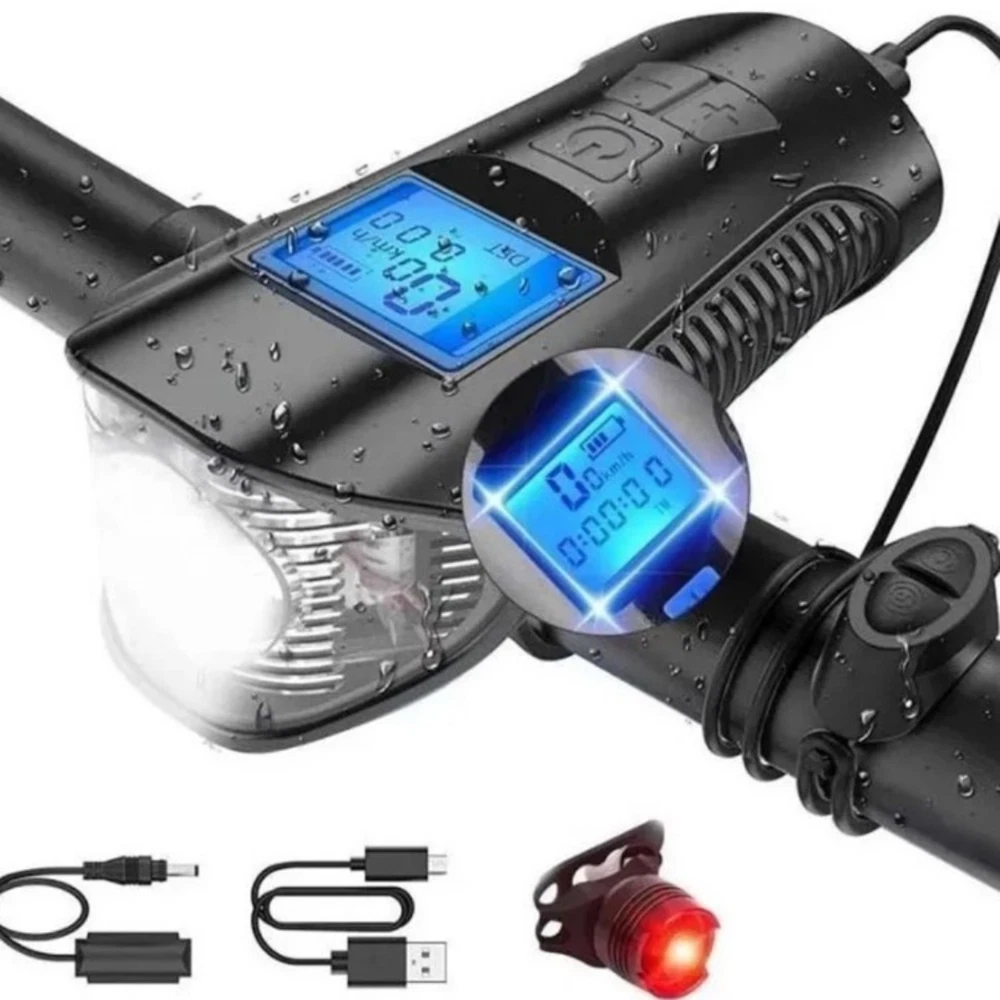 USB-Rechargeable LED Cycle Bike Headlight+Rear Light Horn Speedometer Odometer++