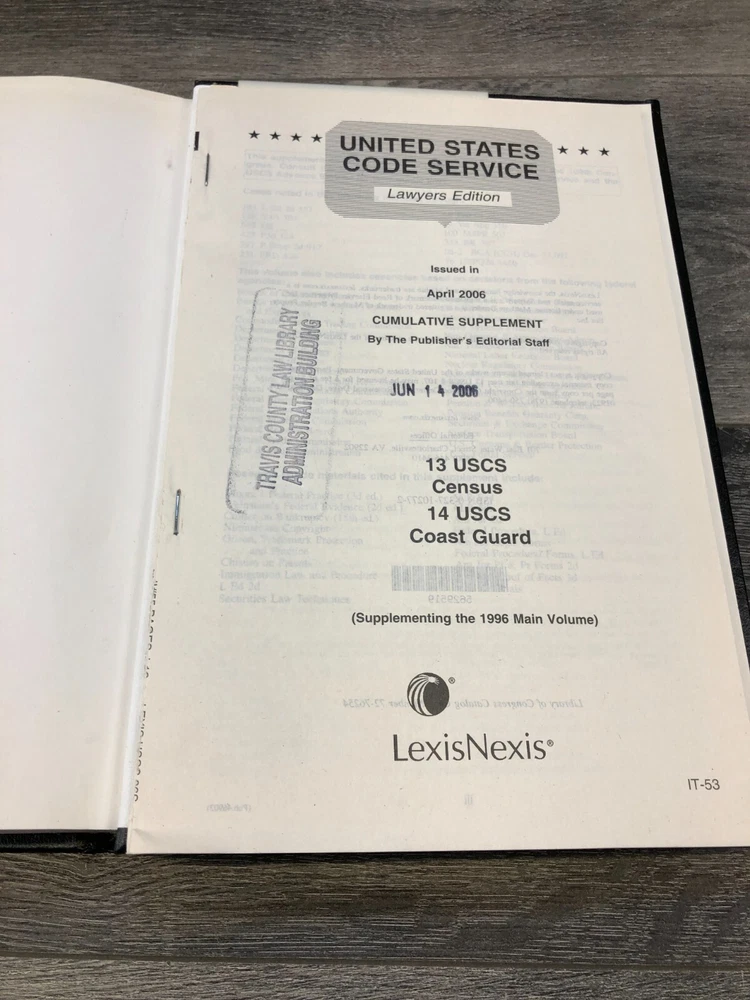 USCS United States Code Service Lawyers Edition Title 13 To 14 USCS Hardcover Product Details: Condition: Pre-Owned in Good Condition. This is a discarded courthouse edition and contains stamps along the side and inside the book. (Please see pictures for condition and any imperfections also for Reference and Size) Stored in a Non Smoking Home Shipping: I ship daily Monday thru Friday so expect a quick delivery Ships from California, USA Fast Shipping Contact us for any custom orders "All items pictured are included. Please take another look at pictures to view what you are purchasing." Thank you for checking out our listing. Please visit my eBay store to find harder to find, and unique items. To View More Items from our Store, Click our Direct Link to our eBay Store Below: The West Coast Reseller Ebay Store