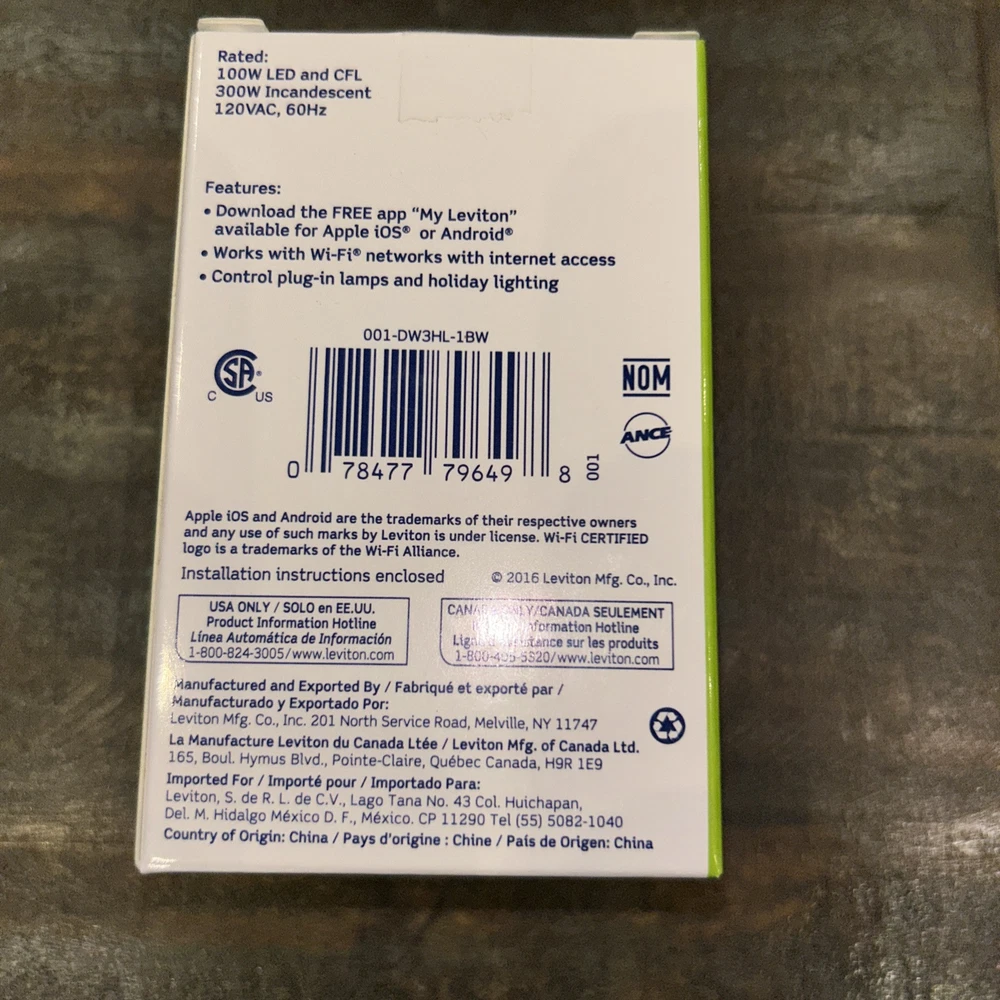 Size: 1 Pack EAN: 0657379027482 Plug Type: A Color: White Resistance Properties: Abrasion Resistant Port Type: Light Switch Number of Poles: 1 UPC: 0078477796498 Current Type: AC Package Dimensions LxWxH: 4.57x2.91x2.6 Inches gtin13: 0657379027482 Orientation: Vertical Material: Thermoplastic, Plastic Room: Indoor/Outdoor Number of Outlets: 1 Contact Configuration: 4 Pole Double Throw (4PDT) Box Shape: Rectangular Type: Dimmer Wall Switch Features: Remote Control, Heavy Duty, App-Controlled, Remote Access, Wireless Maximum Amperage: 20 A Control Style: Remote Control, App Control, Switch Electrical Connection: App-Controlled Suitable For: Interior, Exterior, Wall Number of Ways: Dimmer Mounting Style: Wall, Plug-In/On Number of Phases: 1 Smart Home Compatibility: Samsung SmartThings, Nest, Proprietary App, Google Home/Assistant, Amazon Alexa Operation Method: Dimmer Number of Ports: 1 MPN: DW3HL1BW Item Height: 1 Pack Interruption Type: Switch Fuse Body Type: Arc Fault Detection Device (AFDD) Smart Home Protocol: Z-Wave, Proprietary, Wi-Fi Weight: 0.31 Pounds Voltage: 101-120 V Bulb Compatibility: CFL Brand: Leviton ISBN: 0657379027482 Model: DW3HL-1BW Current Rating: 3 A or Less Number of Throws: 1
