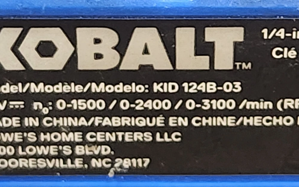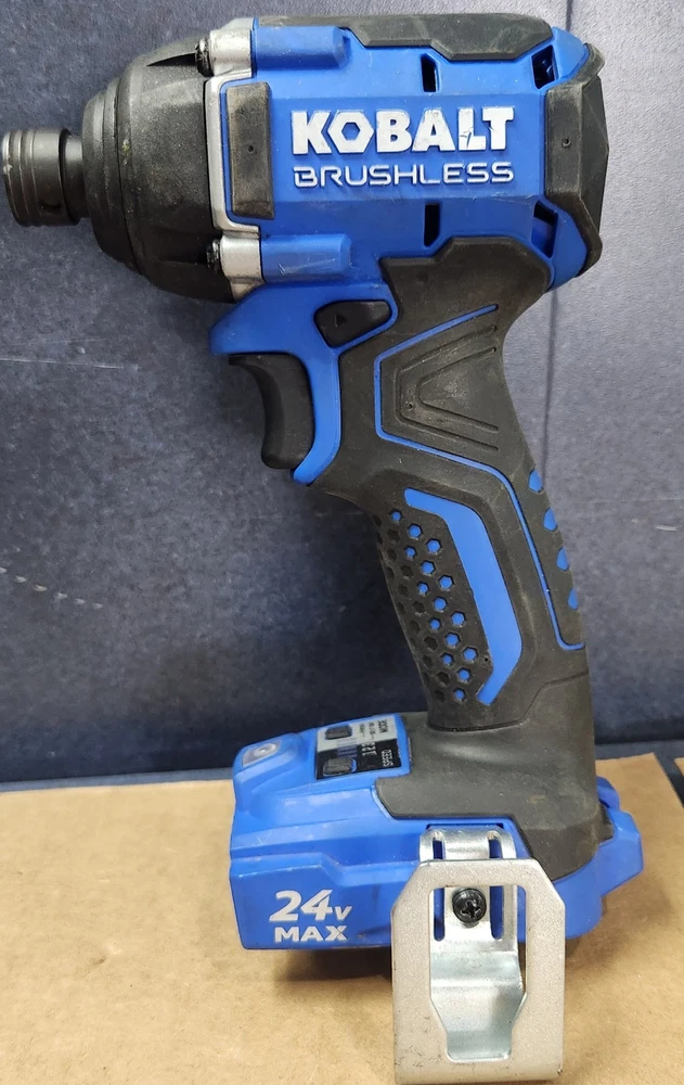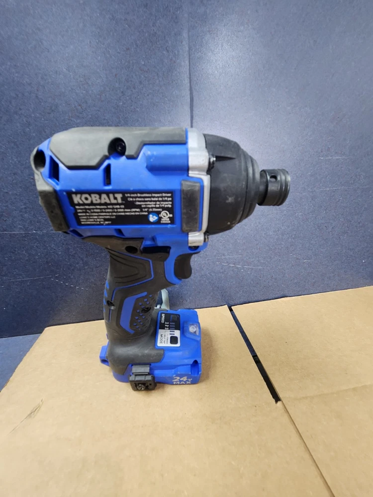 This is a used Kobalt Kid 124B-03 1/4" brushless impact drill bare tool. It features a 24V lithium-ion battery and a 1/4 chuck size. The drill is perfect for home and garden projects, as well as workshop equipment. The motor type is brushless, making it a more efficient and durable option. The drill does not include a battery, but it is compatible with the Kobalt Kid 124B-03 battery.