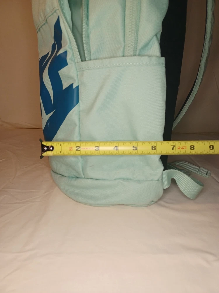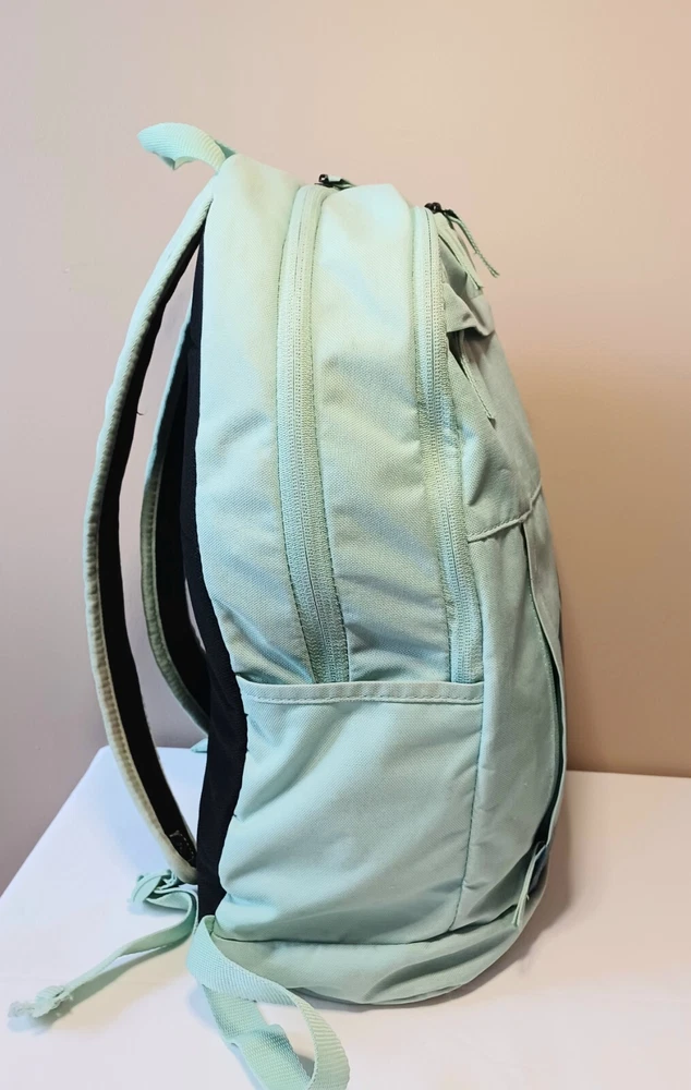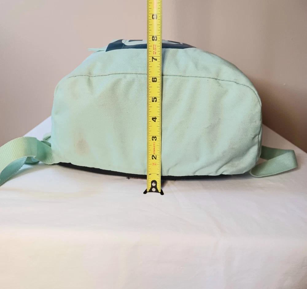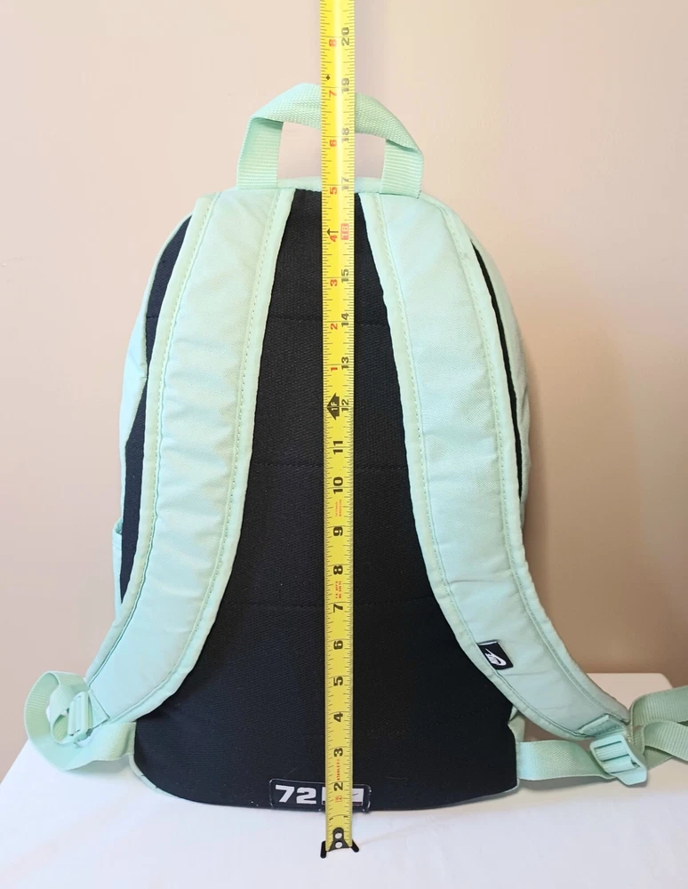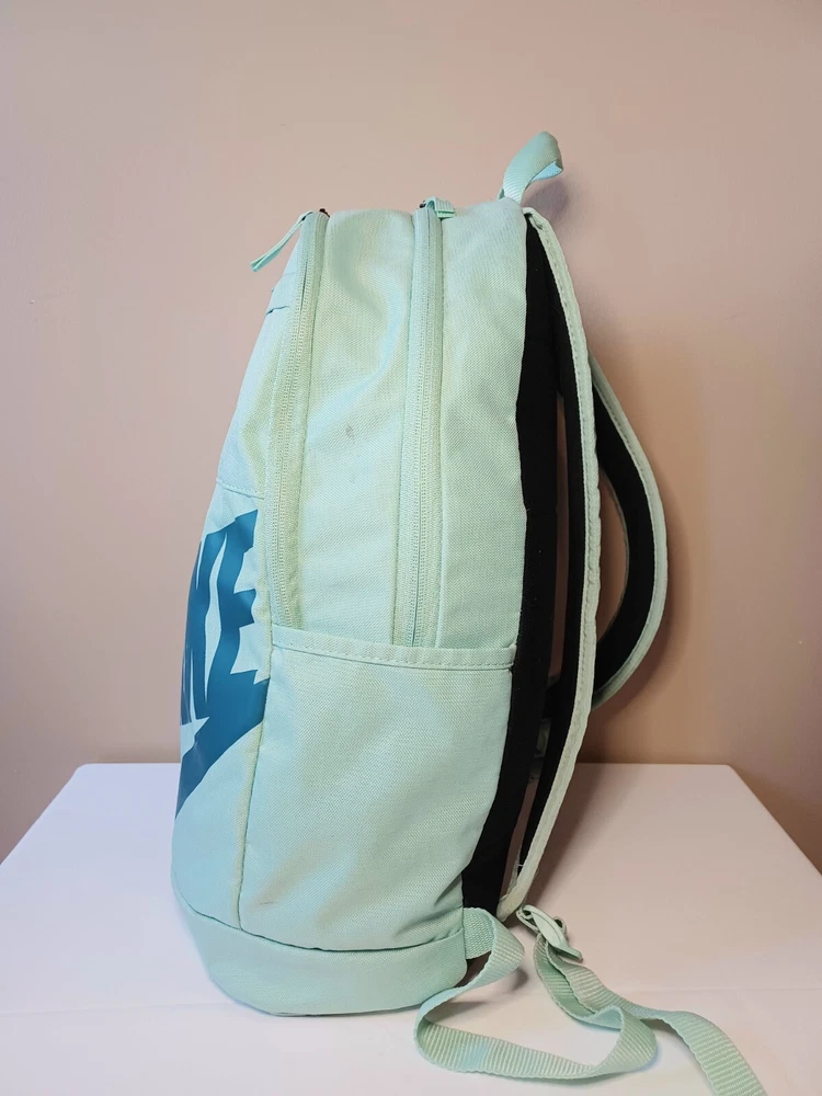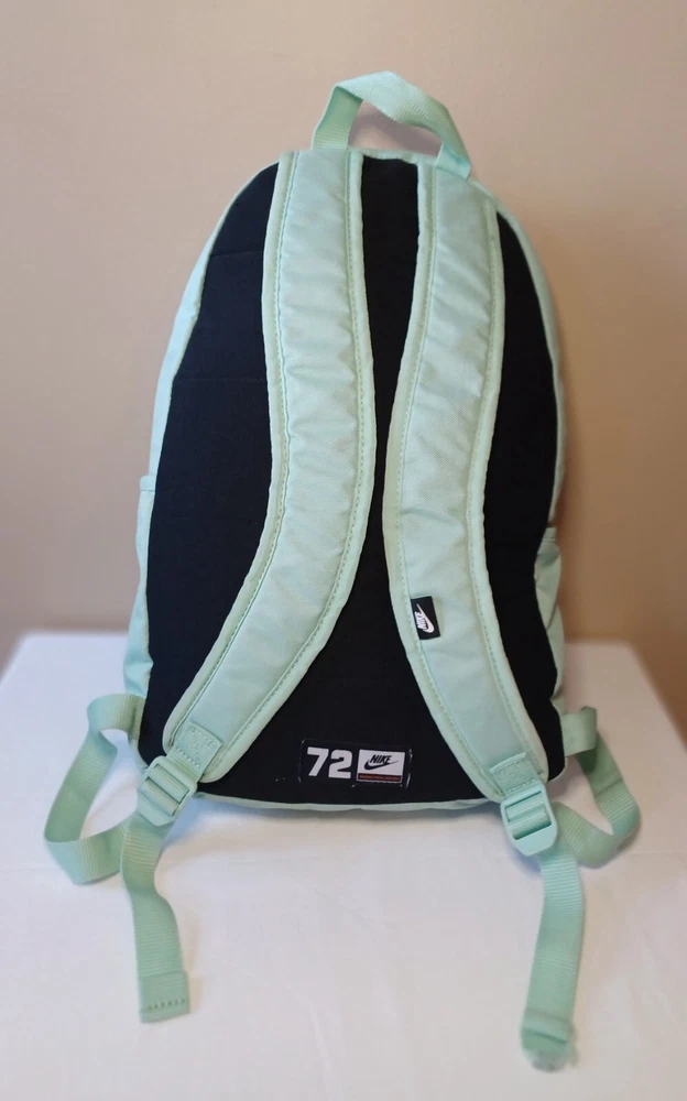 This Nike backpack is the perfect accessory for any sports enthusiast or school aged kid. The solid green color and classic design make it a versatile piece. The backpack features an adjustable strap and zip closure for secure and comfortable wear. With its spacious interior and multiple pockets, this backpack is perfect for carrying all your essentials on the go. Whether you're heading to the gym, running errands, or exploring the city, this Nike backpack is a stylish and practical choice. The product line is Nike 72 and it's made of durable polyester material. ATTENTION: This backpack has several small stains. Please look over the pictures before purchasing. All zippers are in working condition.