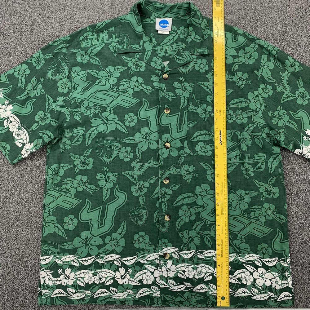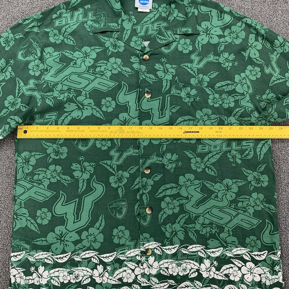 University of South Florida USF Bulls Green Hawaiian Shirt Size L VF Imagewear. Item is in good preowned condition normal signs of use as pictured.