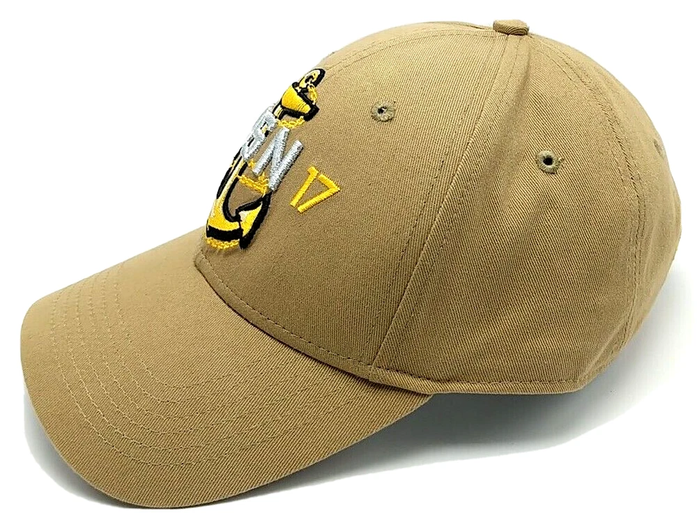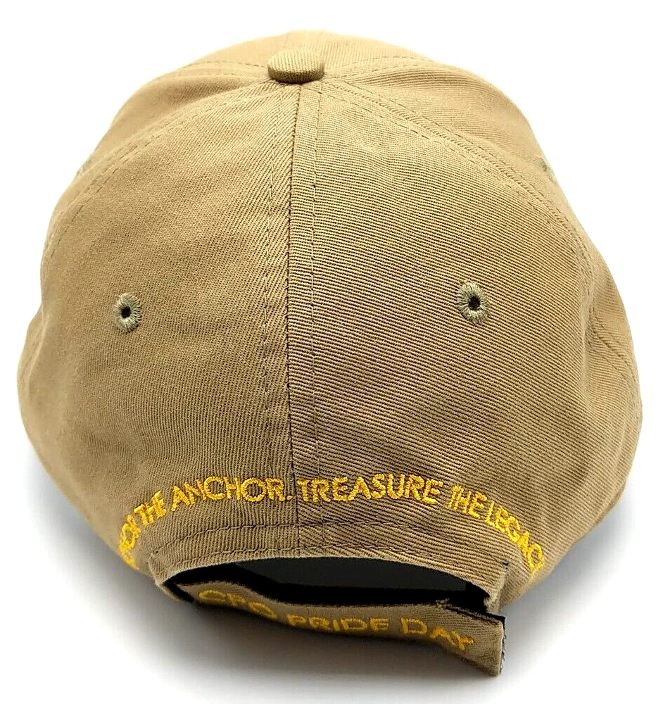 This is a nice 2017 U.S. NAVY CPO PRIDE DAY brown adjustable hat / cap Features: - "USN 2017" embroidered on front - "Honor the Anchor, Treasure the Legacy." embroidered on back - Slightly curved brim - Adjustable strap fits most heads Condition notes: Good overall condition. Clean inside and out. Washed and ready to wear. Please see the photos for more details. I pack carefully and ship quickly. Have any questions? Please ask.