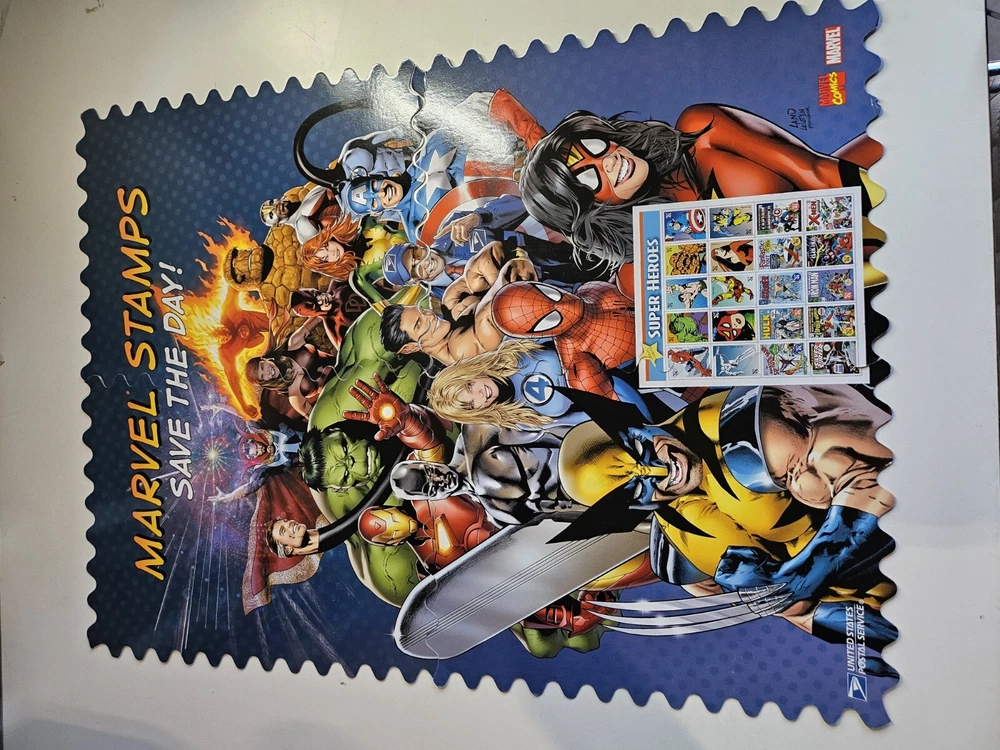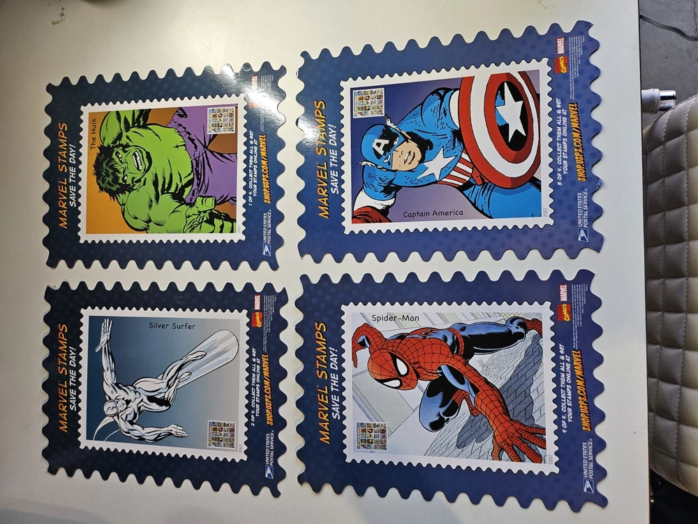 This is a rare and collectible set of four USPS promo stamps featuring Marvel characters and artwork by Greg Land. The stamps were released in 2007 and are part of a puzzle series. They are in excellent condition and are a must-have for any Marvel fan or stamp collector. The stamps feature some of the most iconic Marvel characters and are a great addition to any collection. Don't miss out on this opportunity to own a piece of Marvel history!