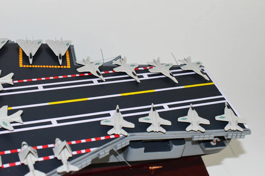 USS Saratoga CV-60 Aircraft Carrier Model Fly off of the USS Saratoga CV-60 Aircraft Carrier Model in this handcrafted wooden model. Each model is carved from wood and handcrafted to provide a piece you'll love. Length- 36 inches Made from Mahogany US Veteran Owned Business The product is not intended to be used by children 12 years and younger. USS Saratoga (CV/CVA/CVB-60), was the second of four Forrestal-class supercarriers built for the United States Navy in the 1950s. Saratoga was the sixth U.S. Navy ship, and the second aircraft carrier, to be named for the Battles of Saratoga in the American Revolutionary War. Commissioned in 1956, she spent most of her career in the Mediterranean, but also participated during the Vietnam War, receiving one battle star for her service. One of her last operational duties was to participate in Operation Desert Storm. Saratoga was decommissioned in 1994, and was stored at Naval Station Newport in Newport, Rhode Island. Multiple unsuccessful attempts were made to preserve her as a museum ship. The Navy paid ESCO Marine of Brownsville, Texas, one cent to take the ship for dismantling and recycling. On 15 September 2014, ex-Saratoga arrived in Brownsville, Texas, to be scrapped. Scrapping was completed by early 2019. Construction and trials She was ordered as a "Large Aircraft Carrier", hull classification symbol CVB-60, and her contract was awarded to the New York Naval Shipyard of Brooklyn, New York on 23 July 1952. She is the second of the four Forrestal-class carriers. She was reclassified as an "Attack Aircraft Carrier" (CVA-60) on 1 October 1952. Her keel was laid down on 16 December 1952. She was launched on 8 October 1955 sponsored by Mrs. Charles S. Thomas, and commissioned on 14 April 1956 with CAPT Robert Joseph Stroh in command.[3] She was the first carrier in the US Navy to use high-pressure 1,200 psi (8,300 kPa) boilers.