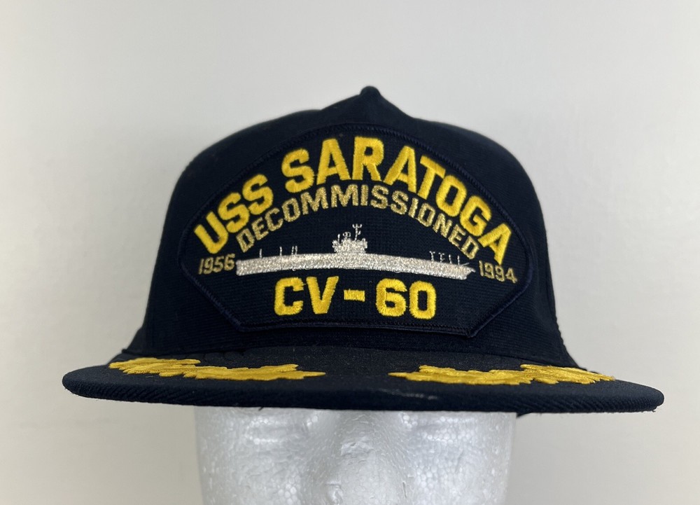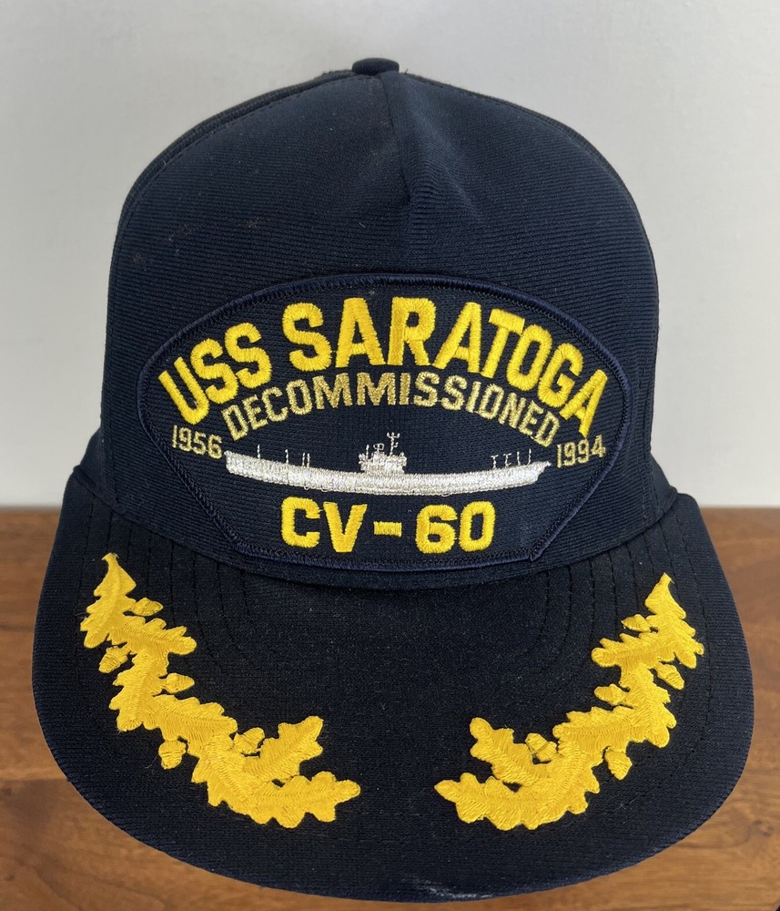 Uss Saratoga CV-60 Decommissioned Snapback Hat Cap US Navy Military Vets Sailor. Condition: good Preowned, has some very light stains/discolorations on the bill and top of the hat. See pictures, sold as is. Ships usps ground advantage.