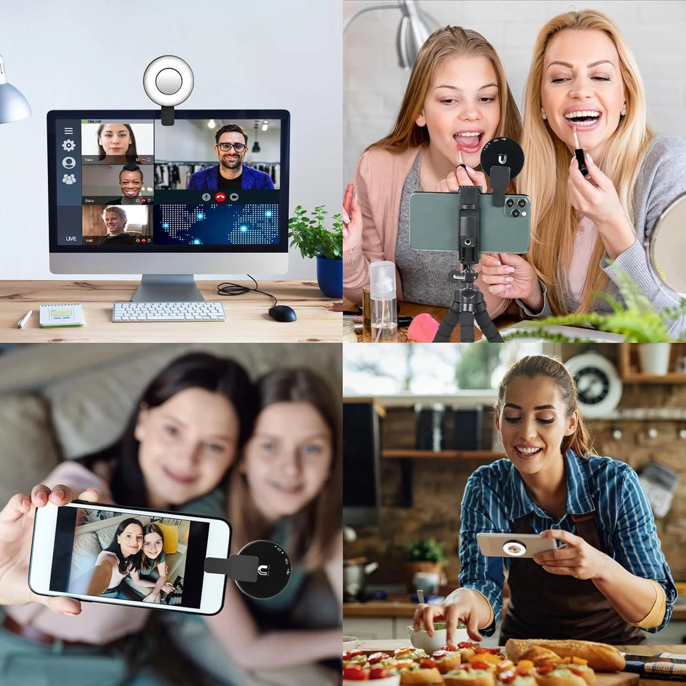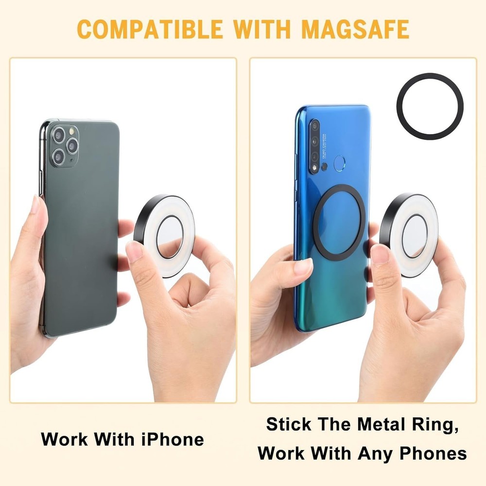 UTEBIT Magnetic Ring Light for Video Laptop Recording with Cool Warm Temperature & 4 Brightness Level for Webcam Light/Zoom Lighting/Video Conference/Selfie Description: Features: 【Dual Color Temperature Adjustment】This magnetic selfie light comes with a small mirror, dual color temperature can adjust the brightness of your phone light, you can find the right light at any time according to the different needs of conference shooting, selfies, video shooting, camera photos and so on. 【High Applicability】This cell phone fill light is compatible with Magsafe, the adjustable clip and metal ring can be placed anywhere you want to install it. You can clip it to your cell phone, computer, iPad and more. Capture professional-quality video and photos. 【Compact and Portable】The size of the LED selfie light for photos is 2.2*2.2inch, smaller than the palm of your hand, it can be easily clipped to your cell phone or packed in your bag, perfect for carrying around. 【Long Lsting Burning】This cell phone light clip can be charged via USB-C port and can be fully charged in 1.5 hours. It comes with a 300mAh battery. The phone light can be used continuously for 35 minutes at maximum brightness and the phone LED light can be used continuously for 1 hour at low brightness. 【Multiple Scenario Applications】The magsafe light for phone is ideal for many scenarios,such as video recording, camera video, live streaming, and makeup.Beyond its role as a supplemental photography light, this magnetic fixture effortlessly adheres to other surfaces. SHIPPING: We are always working hard to ensure your package arrives as soon as possible. Please understand that some factors like weather, high postal traffic, and the performance of shipping companies are outside of our control. We offer free shipping to the lower 48 states and ship within 3 business days of payment, usually sooner. We do not accept P.O. Boxes. Please provide a physical address. For shipping outside of the continental USA, we only use eBay's Global Shipping Program. The item is shipped to KY and then sent to the rest of the world. International customers are responsible for all duties and taxes. Continue to check out in order to calculate costs for shipping the item to your country. Messages regarding eBay's Global Shipping Program MUST be directed at eBay EXCLUSIVELY. PAYMENT: We accept payment by PayPal only (Can accept all kind of credit cards). Please pay as soon as possible after winning an auction, as that will allow us to post your item to you sooner. Payment must be received within 3 business days of auction closing. Before buying, please make sure your PayPal and eBay address is correct. If not, please correct it before payment. We have confidence in our products, but if you are not fully satisfied please contact us within 30 days of purchase and you will get full refund of your money. Return the product in the same condition you received it. Please note - return shipping will be paid by the buyer.