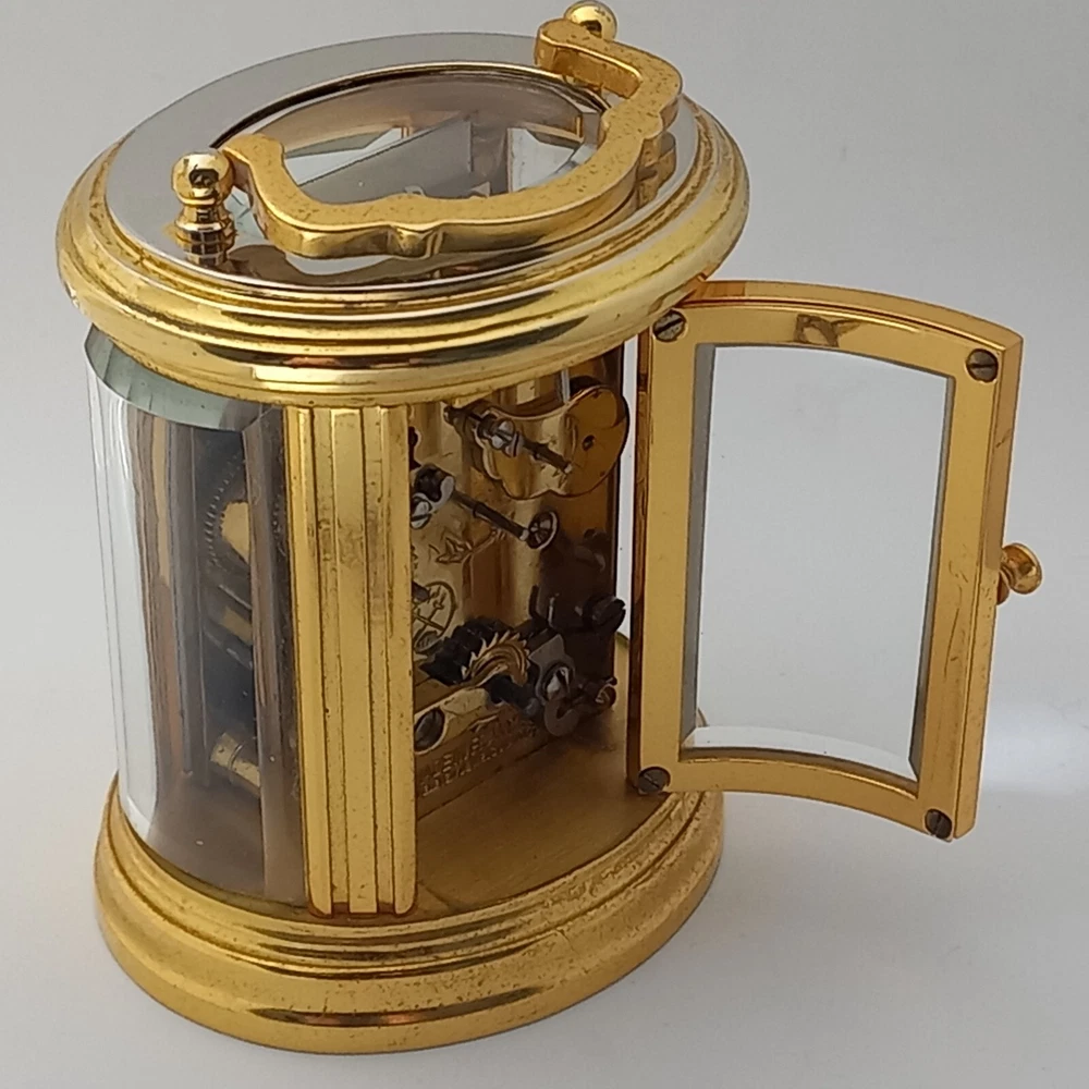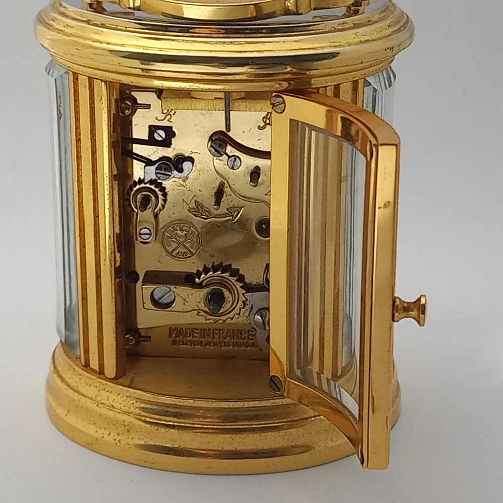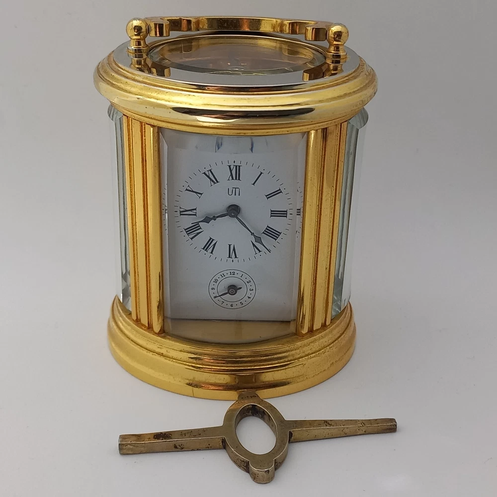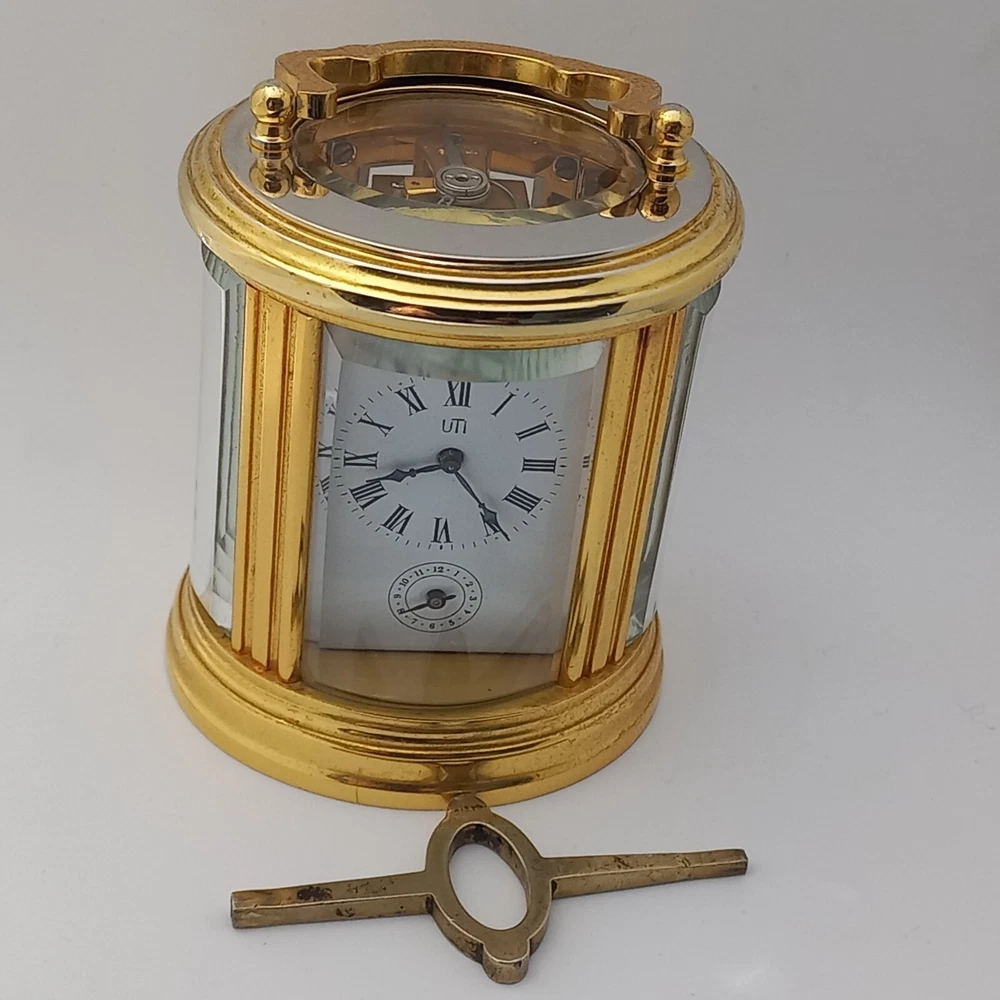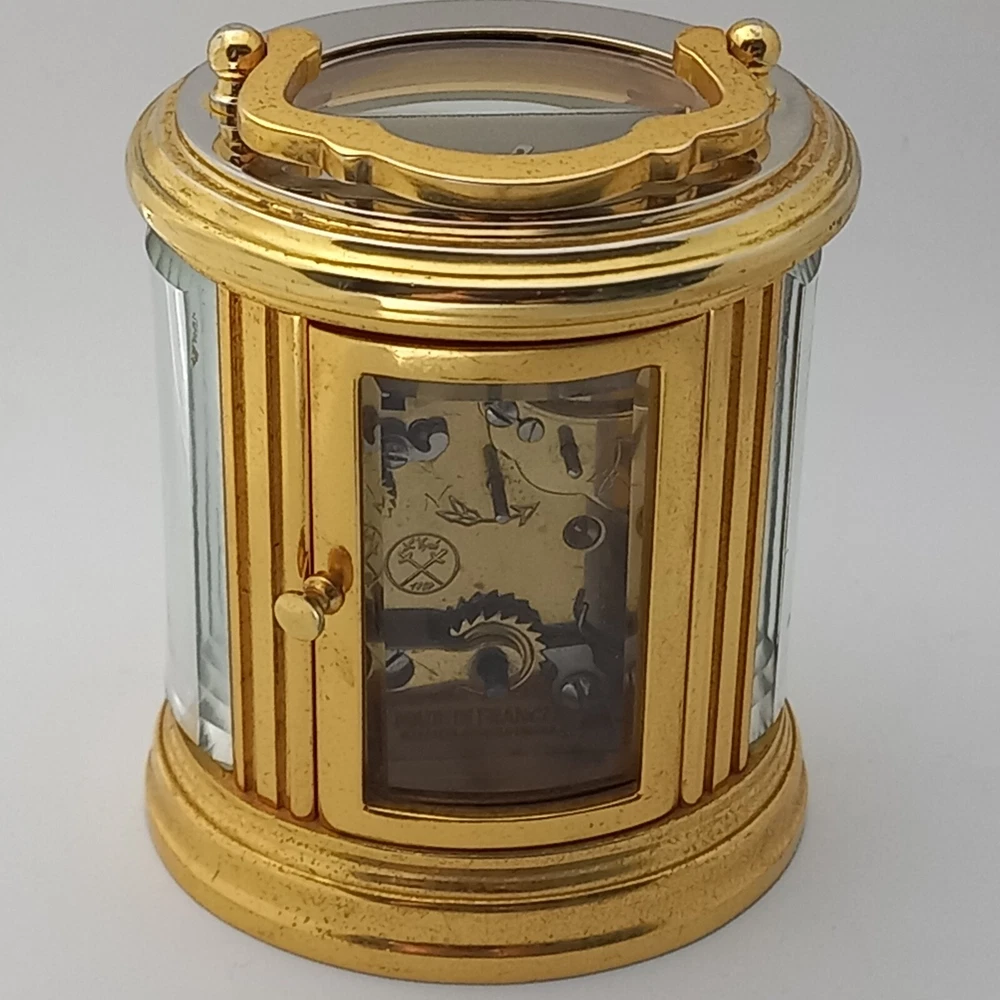UTI L'EPEE 1839 For sale UTI oval French miniature carriage alarm 8-day clock, white dial, with black scotia hands, movement 11 jewels, Made in France signed "L'Epee 1839". B ell under the base. Measurements: Height 8 cm without the handle, Depth 5 cm Width 6.2 cm. The gold tone case is in very good condition. The original beveled glass has no scratches. The white dial with black hands is also in great shape. The watch works and gives very good time. The watch comes with its original double-headed key. As for the Alarm, it requires some maintenance. I'm not sure what the exact problem is, but when you try to wind it, it starts working on its own. This indicates that it requires repair. Being sold as is as found condition. We combine shipping. Terms & Conditions We are dealing with pre-owned/ used/ vintage timepieces. Our items are 100% authentic. All photos are taken by us. Buyers will receive the same item that is shown in the photos. We provide a full description and many photos of the item and we expect you to contact us for extra details. Shipping We ship international expedited shipping via DHL with tracking. Phone number is required by DHL for shipping. We ship from Lebanon. We combine shipping. We are not affiliated in any way with any of the presented brands. Buyer will have to pay any custom fees for releasing the item in their own country, this will effect delivery times. Check the custom fees in your country before you buy.