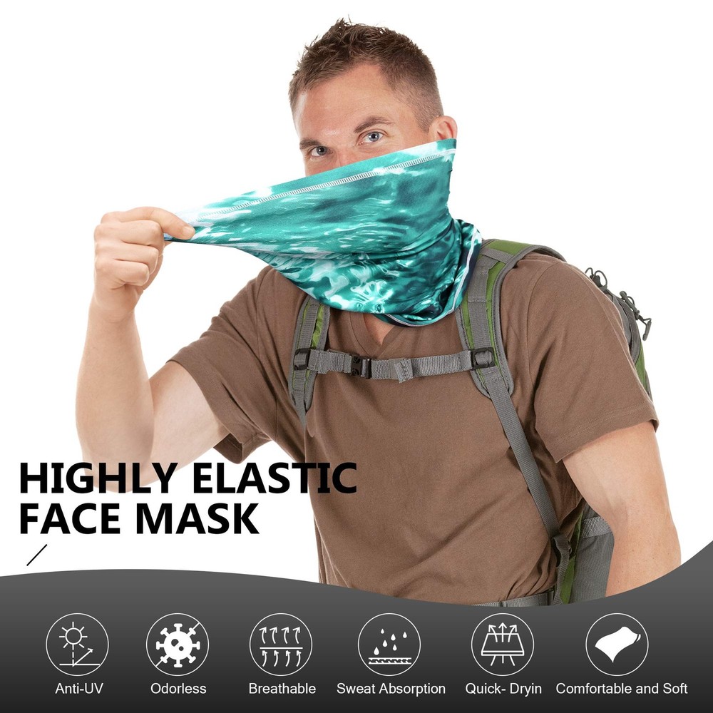Custom & Stretchy Fit: The face cover mask is made with high elastic and soft material, which is superior breathable and sweat absorption, keeping you a cool and fresh fit in daily wearing to ensure a fully face protection from dust and harmful uv rays. Spf Protection: The fabric is with upf 50+ protection. Not only can it protect your neck from sunburn in long time outdoor activities directly, but also help your nose and mouth filter dust, debris and wind. And it can also be used as a headband to wipe sweat to prevent it from entering your eyes to block vision in cycling, hiking, mountaineering. Quick Dry & Breathable Fabric: Unique jacquard fabric wicks moisture more quickly and keeps skin dry and clean all day long. It is also with better breathability so that it will helps to dissipate extra heat to keep you feel cool in summer outdoor sports. Versatile Fishing Neck Gaiters: The pattern is very fashionable, suitable for fishing, boating, surfing to be spf protectionmasks. It is also a great choice for summer running, cycling, fishing, hiking, camping, motorcycling, hunting, climbing, traveling and etc. One Size Fits All: It is lightweight and is widely used in daily life. It can be used as a neck gaiter, neck warmer, face scarf, balaclava, headbands, beanie or other ways you like. Great for machine wash and hand wash. This neck gaiter is great for both men and women, one size fits all. Great to have some for your families, friends as a perfect gift.