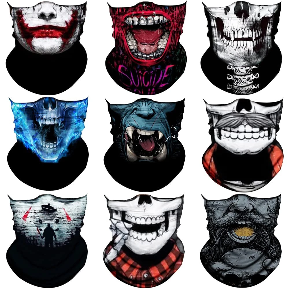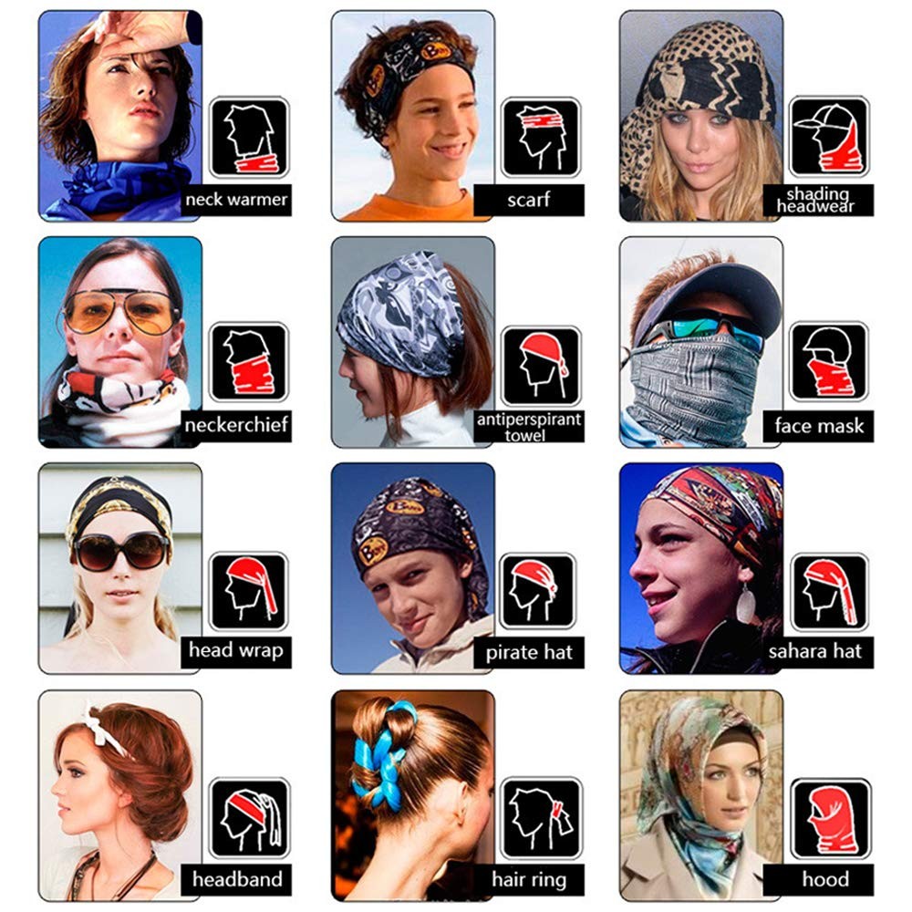 【COMFORTABLE, FORM-FITTING MICROFIBER】Made with soft, breathable polyester microfiber. Our face shields are stretchy and seamless.Length x Width(Flat)=19.69x9.84(Inch)=50x25(CM). Fit to be worn comfortably as bandanas for men, headbands for women, headwear, workout headband for women, head wraps for women, or sweat bands. Cover half of your face and head or all of it. Our ultra-plush microfiber is seamless, flexible, and stylish, and still wicks away moisture, sweat, and odors. 【MULTI-PURPOSE Neck Gaiter】The Skull Gator Mask is designed for men and women who live active lifestyles, which is why it can be worn in different ways, including a face shield, wristband, full hood, headband,neck gaitor, sacarf bandana, doo rag, balaclava, face mask, beanie, pony tail, sahariane and pirate and more! 【TACKLE EVERY ADVENTURE HEAD-ON】Our face shield provides sun protection and wicks away moisture faster. Our face shields add an extra layer of warmth for your head, hand and neck in the cold. Our face masks also keep your ears, nose, and mouth clean from breathing dust.Wear it as a balaclava in the desert to protect your face from dirt and dust, wear it as a do-rag to keep your hair out of your eyes on a windy day, or wear it as a headband while hiking in Utah to keep sweat out of your eyes. 【DURABLE AND COOL DESIGN】Look awesome and stay protected during fishing, running, cycling, motorcycle, yoga, hiking, walking, or hunting. Makes a great accessory for Halloween, 4th of July, Memorial Day, Labor Day, Christimas, holiday and costume parties. Face shields are extremely durable and very easy to wash after using. Perfect to use as rave and festival accessories too! 【RISK FREE WITH 3-MONTH AFTER-SALES SERVICE】We want you to love our headbands as much as we do. Customer satisfaction is our number-one priority, and we like to ensure that all our customers are satisfied after purchasing one of our products. If you are not satisfied with the Headband, we will try our best to fix your problems. Order now with confidence!