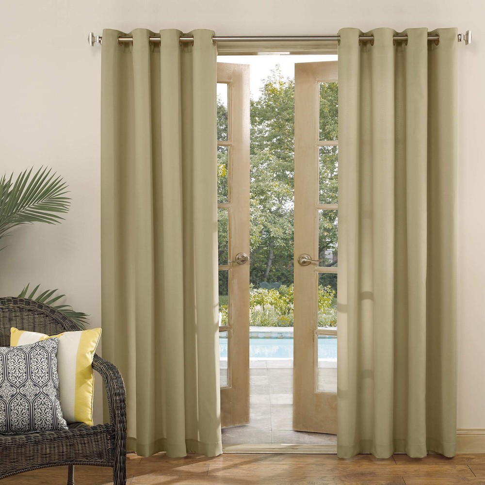 Augment your outdoor or indoor space with the Marina Indoor/Outdoor UV Protectant Energy Efficient Grommet Curtain Panel. Woven with durable stain-resistant, water-resistant, fade-resistant, and light-blocking lightweight fabric offering UPF 50+ UV protection, these curtains are the perfect solution to add privacy and protect your deck, patio, porch, or outdoor space from the elements. Perfect for pergolas and Gazebos, Indoor/Outdoor UV Protectant Energy Efficient Grommet Curtain Panel is equipped with rust-proof grommets allowing easy hanging on a standard curtain rod up to 1.5 inch in diameter. Sold as individual panels measuring 54" width by 84" length in color khaki. Measure carefully before selecting your desired size and quantity. Rod not included. Machine wash cold on gentle cycle. Use non-chlorine bleach when needed. Tumble dry on low heat. Fade resistant durable indoor/outdoor fabric Offers light blocking with UPF 50+ UV Protection Stain and water resistant lightweight material Ideal for outdoor pergolas and gazebos Rust-proof grommets fit curtain rods up to 1.5" in diameter Each panel sold separately
