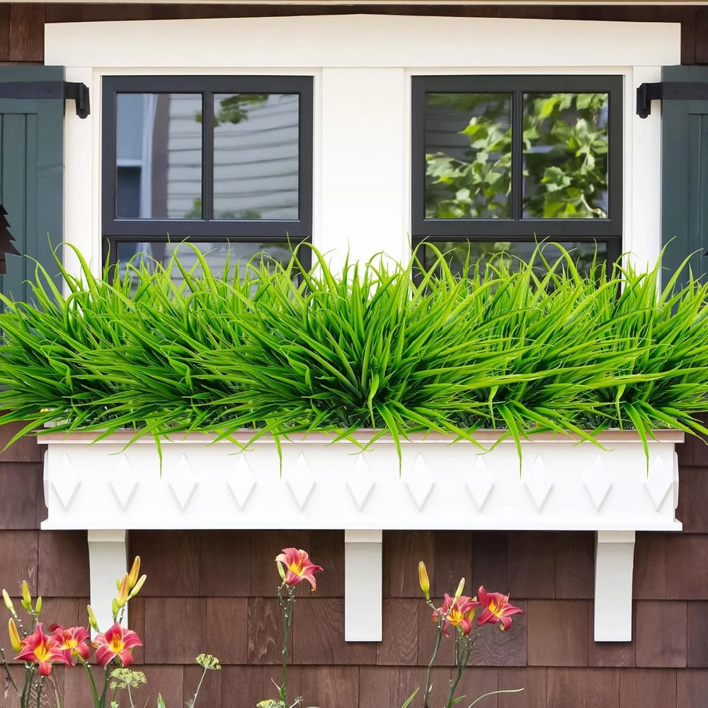 Uieke 6 Bundles Artificial Outdoor Plants UV Resistant Fake Grass 6, Green Product Details Brand: Uieke Plant or Animal Product Type: grass Color: Green Material: Plastic Product Dimensions: 3"D x 3"W x 14"H Recommended Uses For Product: outdoor Specific Uses For Product: Outdoor Decor Indoor/Outdoor Usage: Outdoor, Indoor Package Information: Vase Occasion: Engagement Number of Items: 6 Room Type: ['Outdoor Patio', 'Outdoor Decor', 'Hotel 'Office 'Bouquet', 'Landscape Project', Decoration'] Special Feature: UV Resistant Container Shape: Container Included Components: Arrangement Accessories Shape: Square Unit Count: 6.0 Count Scent: Unscented Seasons: Summer, Spring Manufacturer: Uieke Item Weight: 11.7 ounces Item model number: grass plant Stems Size: 15.2" tall x 9.5" Diameter (adjustable length); 6 bundles outdoor artificial plants on each package. Each artificial grass has 5 branches with dense leaves. The fake greenery stems can be disassembled and adjusted in shape at will. Natural & Real Looking: The faux plants outdoor whether indoors or outdoors, can exhibit a similar appearance to real natural plants. This artificial grass plant can inject green and vitality into your room or garden, creating a comfortable atmosphere that allows you to relax. UV resistant & No Maintenance: These artificial plants outdoor are made of high quality plastic materials, making them an ideal choice for landscape project or outdoor decoration. They do not require sunlight, watering, trimming, or other maintenance. No matter where you choose to showcase, these artificial greenery will always bloom, bringing you long-lasting beautiful effects. Suitable for Spring and Summer decor: These lush fake outdoor plants not only add charm to your yard, front porch, backyard, garden, balcony, windowsill, and terrace. Also it is very suitable for daily garden decoration, commemorative places, DIY projects, etc. Warm Tips: It is normal there may be some odor of Artificial plants for outdoors, you just need to keep it in a ventilated environment for a while. The artificial plants outdoor may be squeezed during packaging and transportation, which may cause slight deformation. It can be restored to its original state through manual installation and paving.