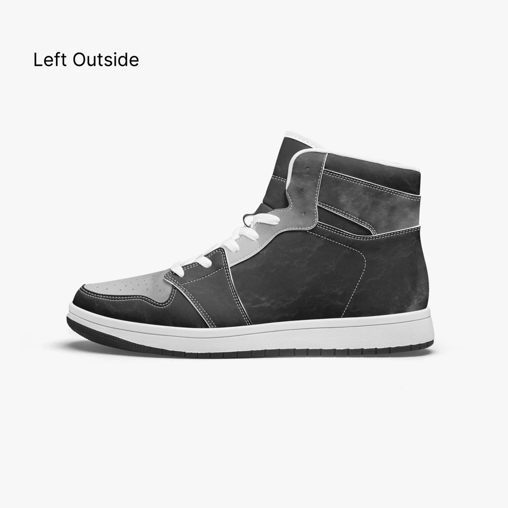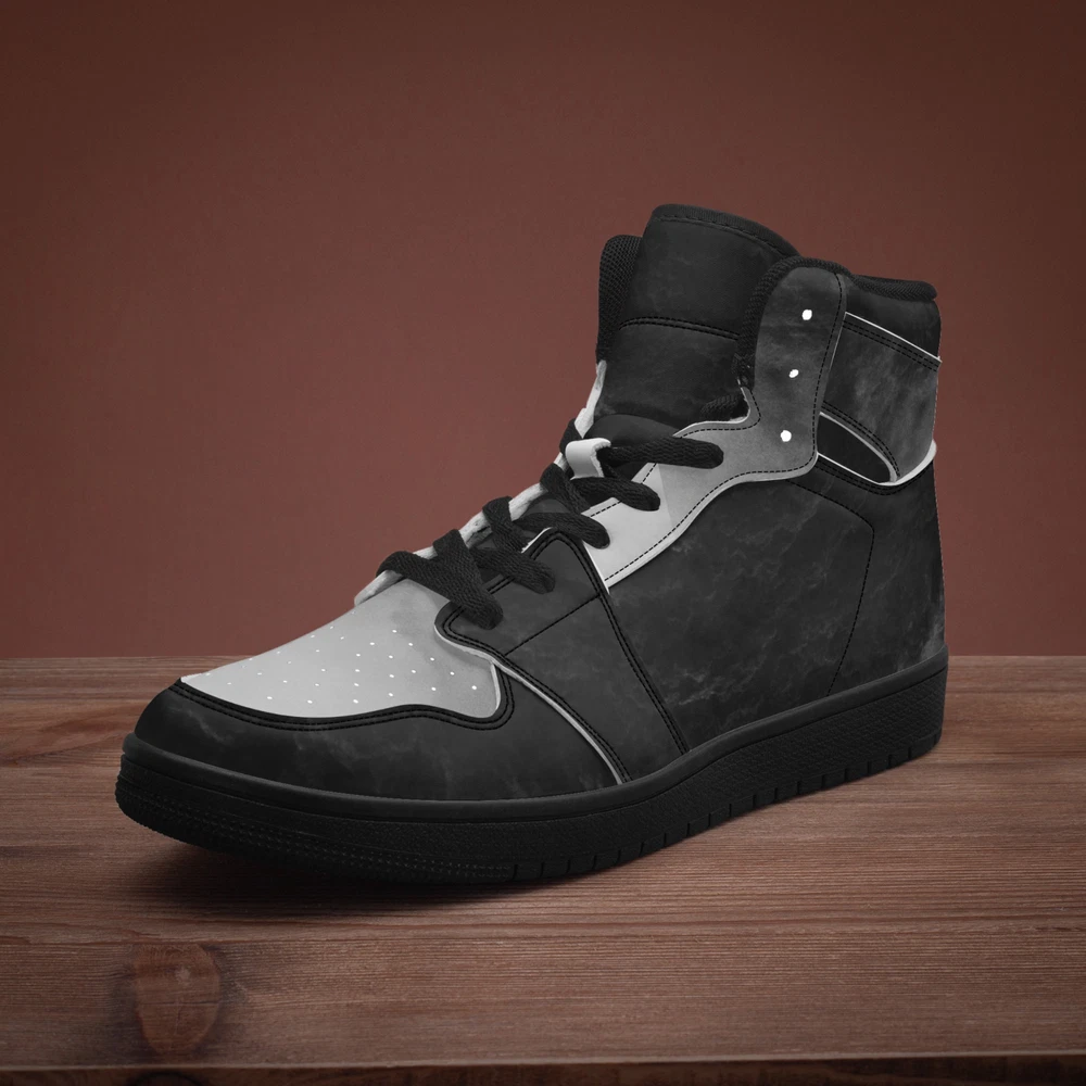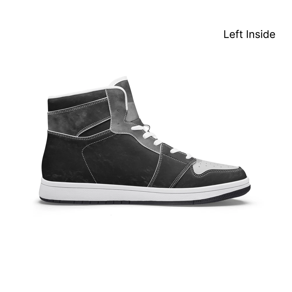 Crafted for the modern man, the UVelsi Bravo 001 sneakers blend style with performance. These black high-top sneakers are a testament to craftsmanship, featuring a durable faux leather upper and a comfortable leather insole. With a range of features including adjustable lacing, cushioned fabric lining, and a robust rubber outsole, these shoes are designed to support and enhance your every step. Whether you're hitting the gym, running errands, or heading out for a night on the town, these sneakers adapt to your lifestyle. The sleek, solid pattern and versatile high-top design make them a great addition to any outfit. Plus, the convenience of being handmade and customizable ensures that these sneakers are as unique as you are. • Designed For Unisex. • Soft EVA padded insoles. • Leather upper with mesh lining construction. • EVA outsole for traction and exceptional durability.