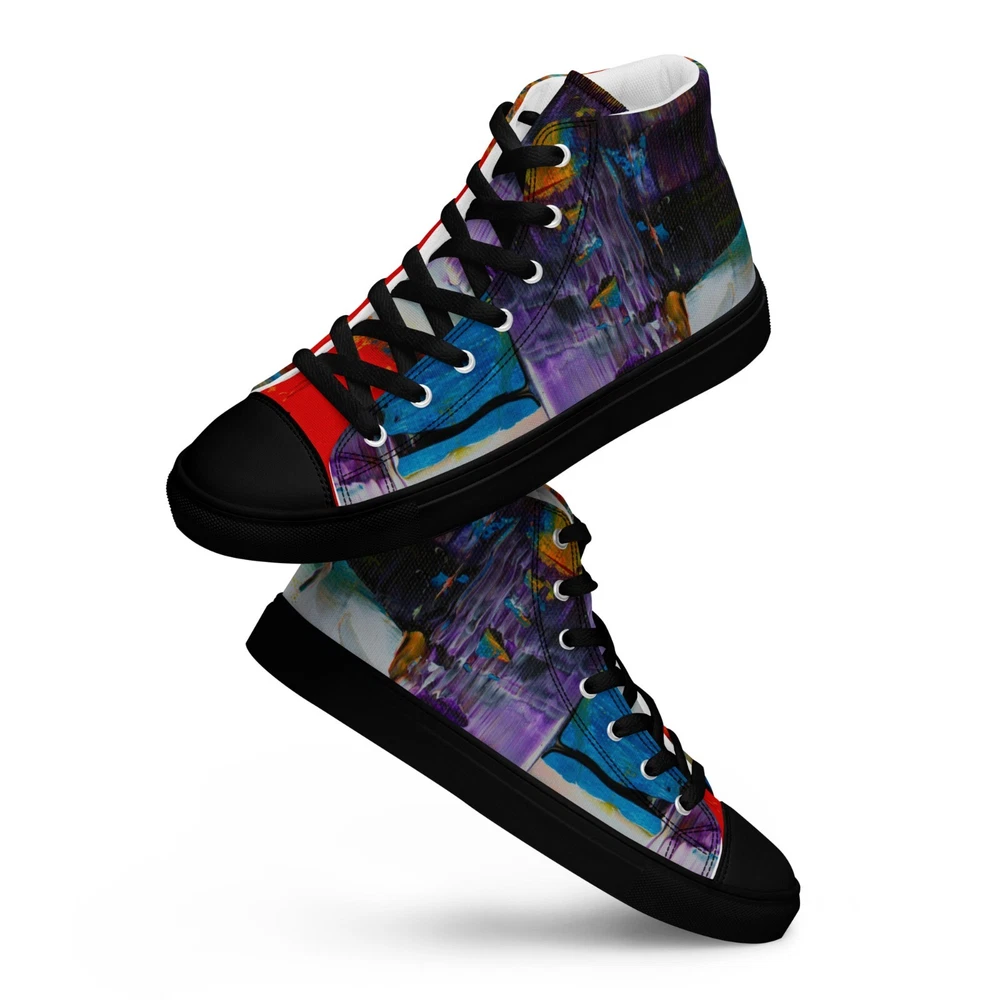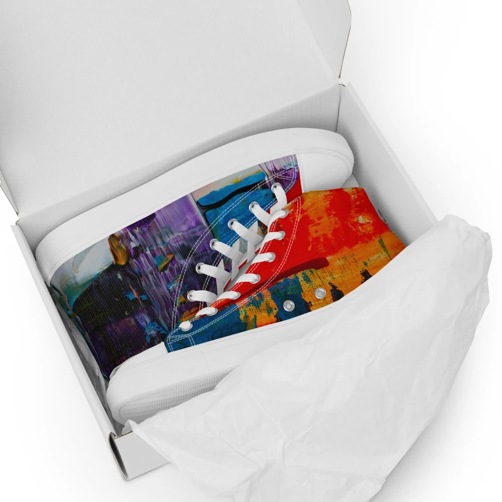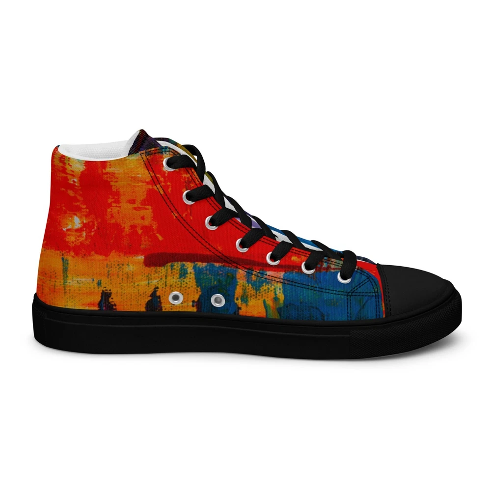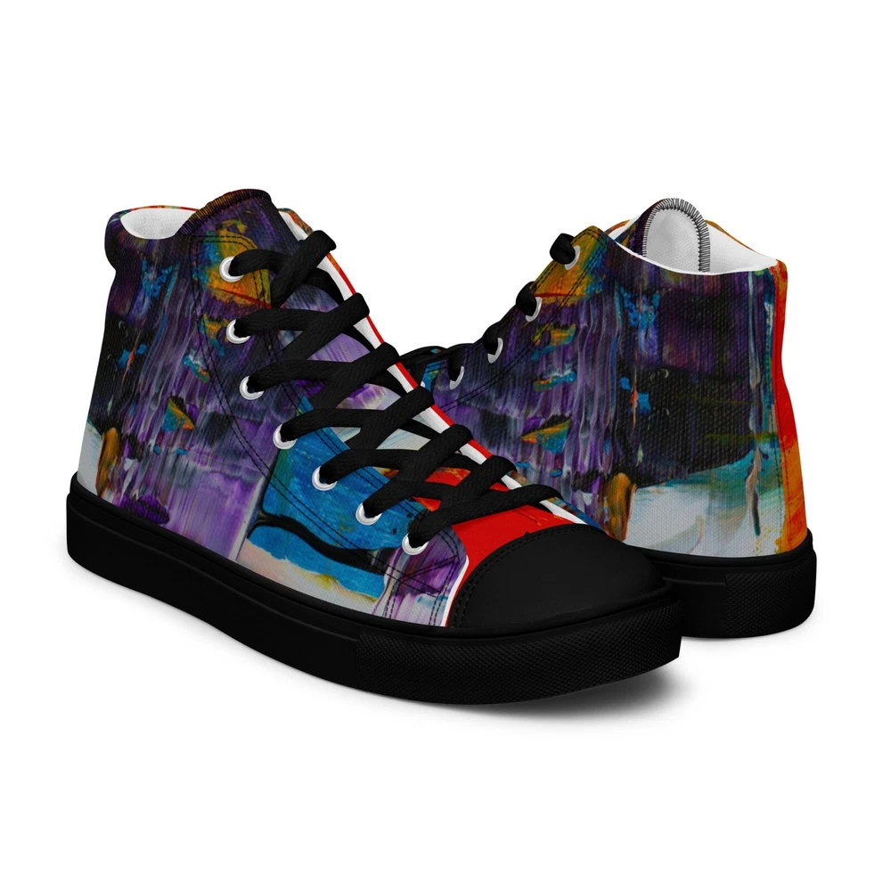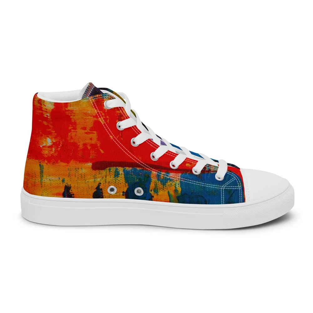 Step into comfort and style with the UVelsi Premium High Top Canvas sneakers. Designed for the modern man, these shoes feature a sleek, lace-up closure and a durable rubber outsole for reliable traction. The breathable canvas upper and lining ensure your feet stay cool and comfortable, whether you're hitting the gym or the streets. High functionality meets fashion with these versatile sneakers, suitable for a wide range of occasions from activewear to casual workwear. Enjoy the convenience of an adjustable strap and a cushioned, padded insole that supports your feet throughout the day. These limited edition sneakers are tailored for perfection, handmade to offer both a unique aesthetic and a personalized fit. Step up your shoe game with the High Top Canvas Shoes. These handmade, trendy shoes are sure to spice up your outfit. Get yours now! • 100% polyester, canvas upper side • Ethylene-vinyl acetate (EVA) rubber outsole • Breathable lining, soft insole • Faux leather toe cap • Padded collar, lace-up front • Soles and laces in matching colors Size guide preview (Imperial) US Men UK Europe Foot Length Japan Outsole Length 5 5 4 37.5 9 ⅛ 23 10 ¼ 6 6 5 38.5 9 ½ 24 10 ⅝ 7 7 6 40 9 ¾ 25 10 ¾ 8 8 7 41 10 ⅛ 26 11 ⅛ 9 9 8 42.5 10 ½ 27 11 ⅝ 10 10 9 44 10 ¾ 28 12.00 11 11 10 45 11 ¼ 29 12 ⅛ 12 12 11 46.5 11 ¾ 30 12 ¾ 13 13 12 47.5 12 31 12 ¾ 5.5 5.5 4.5 38 9 ¼ 23.5 10 ¼ 6.5 6.5 5.5 39 9 ⅝ 24.5 10 ⅝ 7.5 7.5 6.5 40.5 10.00 25.5 11 ⅛ 8.5 8.5 7.5 42 10 ¼ 26.5 11 ⅜ 9.5 9.5 8.5 43 10 ⅝ 27.5 11 ⅝ 10.5 10.5 9.5 44.5 11.00 28.5 12 ⅛ 11.5 11.5 10.5 46 11 ½ 29.5 12 ½ 12.5 12.5 11.5 47 11 ⅞ 30.5 12 ¾ Size guide preview (Metric) US Men UK Europe Foot Length Japan Outsole Length 5 5 4 37.5 23.2 23 26.2 6 6 5 38.5 24.1 24 27 7 7 6 40 24.8 25 27.3 8 8 7 41 25.7 26 28.3 9 9 8 42.5 26.7 27 29.5 10 10 9 44 27.3 28 30.5 11 11 10 45 28.6 29 30.8 12 12 11 46.5 29.9 30 32.4 13 13 12 47.5 30.6 31 32.4 5.5 5.5 4.5 38 23.5 23.5 26.2 6.5 6.5 5.5 39 24.5 24.5 27 7.5 7.5 6.5 40.5 25.4 25.5 28.3 8.5 8.5 7.5 42 26 26.5 29 9.5 9.5 8.5 43 27 27.5 29.5 10.5 10.5 9.5 44.5 28 28.5 30.8 11.5 11.5 10.5 46 29.2 29.5 31.8 12.5 12.5 11.5 47 30.2 30.5 32.4