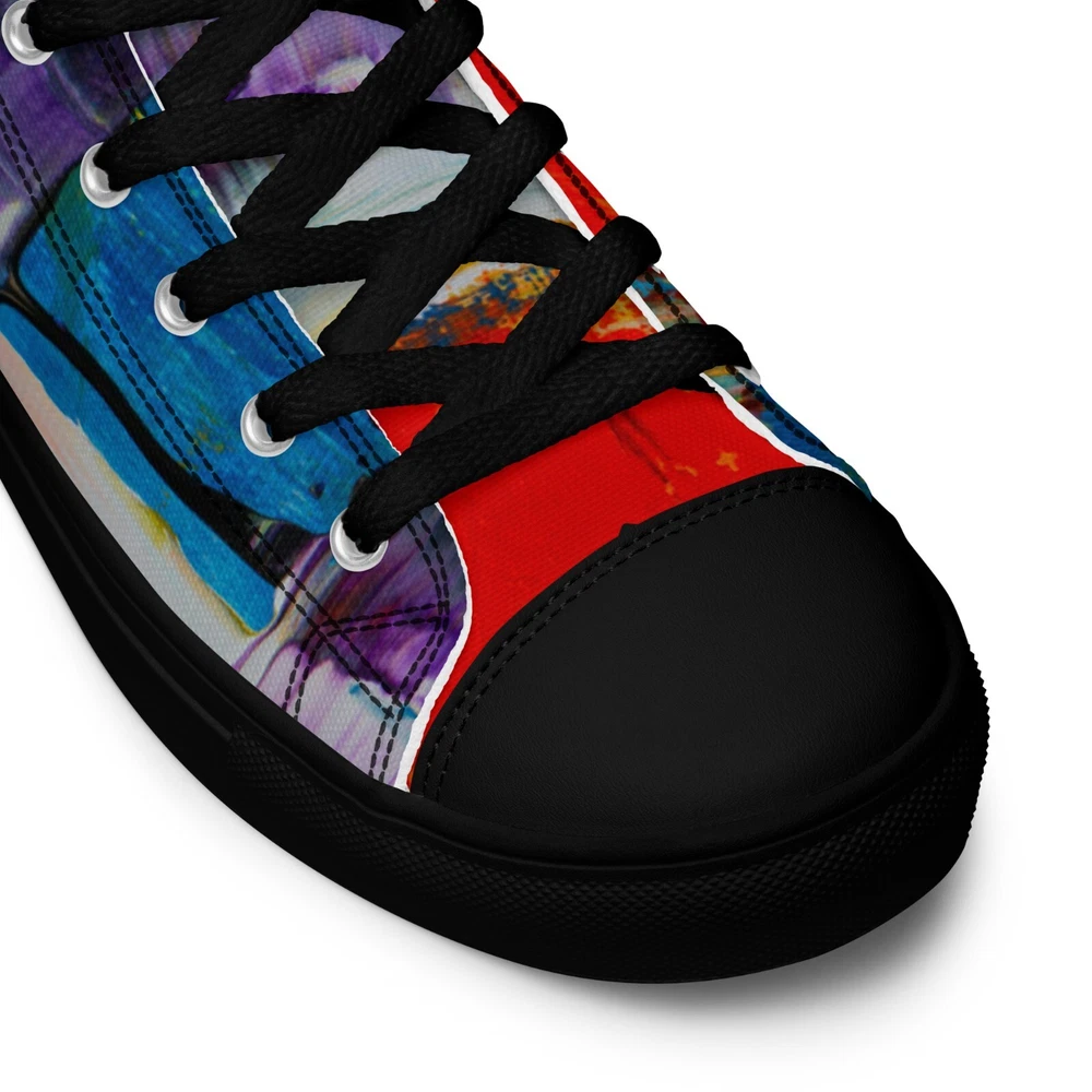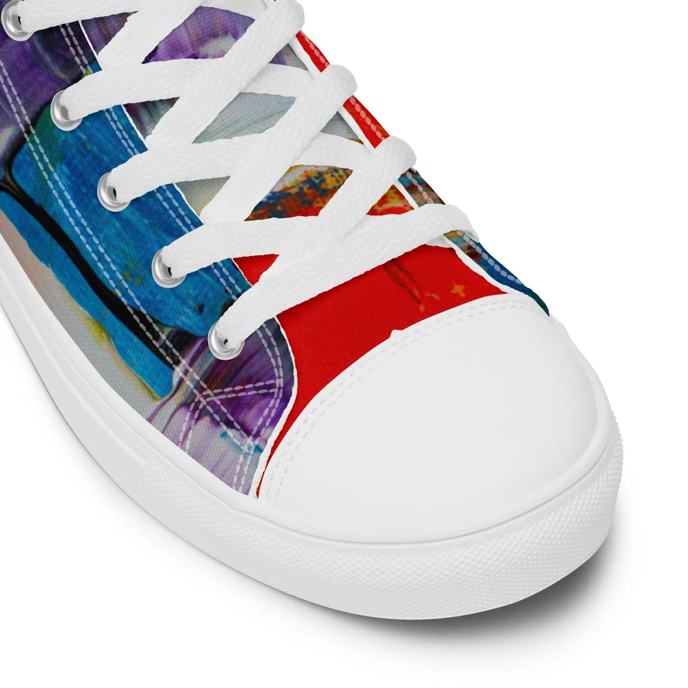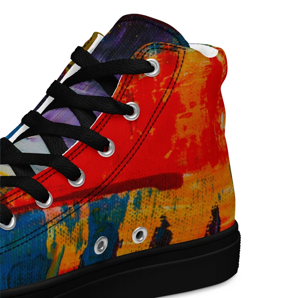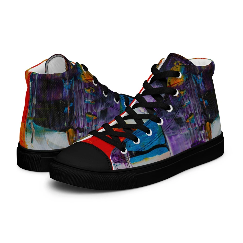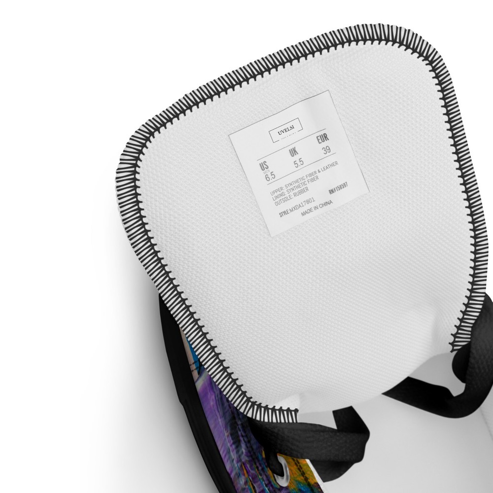 Step into comfort and style with the UVelsi Premium High Top Canvas sneakers. Designed for the modern man, these shoes feature a sleek, lace-up closure and a durable rubber outsole for reliable traction. The breathable canvas upper and lining ensure your feet stay cool and comfortable, whether you're hitting the gym or the streets. High functionality meets fashion with these versatile sneakers, suitable for a wide range of occasions from activewear to casual workwear. Enjoy the convenience of an adjustable strap and a cushioned, padded insole that supports your feet throughout the day. These limited edition sneakers are tailored for perfection, handmade to offer both a unique aesthetic and a personalized fit. Step up your shoe game with the High Top Canvas Shoes. These handmade, trendy shoes are sure to spice up your outfit. Get yours now! • 100% polyester, canvas upper side • Ethylene-vinyl acetate (EVA) rubber outsole • Breathable lining, soft insole • Faux leather toe cap • Padded collar, lace-up front • Soles and laces in matching colors Size guide preview (Imperial) US Men UK Europe Foot Length Japan Outsole Length 5 5 4 37.5 9 ⅛ 23 10 ¼ 6 6 5 38.5 9 ½ 24 10 ⅝ 7 7 6 40 9 ¾ 25 10 ¾ 8 8 7 41 10 ⅛ 26 11 ⅛ 9 9 8 42.5 10 ½ 27 11 ⅝ 10 10 9 44 10 ¾ 28 12.00 11 11 10 45 11 ¼ 29 12 ⅛ 12 12 11 46.5 11 ¾ 30 12 ¾ 13 13 12 47.5 12 31 12 ¾ 5.5 5.5 4.5 38 9 ¼ 23.5 10 ¼ 6.5 6.5 5.5 39 9 ⅝ 24.5 10 ⅝ 7.5 7.5 6.5 40.5 10.00 25.5 11 ⅛ 8.5 8.5 7.5 42 10 ¼ 26.5 11 ⅜ 9.5 9.5 8.5 43 10 ⅝ 27.5 11 ⅝ 10.5 10.5 9.5 44.5 11.00 28.5 12 ⅛ 11.5 11.5 10.5 46 11 ½ 29.5 12 ½ 12.5 12.5 11.5 47 11 ⅞ 30.5 12 ¾ Size guide preview (Metric) US Men UK Europe Foot Length Japan Outsole Length 5 5 4 37.5 23.2 23 26.2 6 6 5 38.5 24.1 24 27 7 7 6 40 24.8 25 27.3 8 8 7 41 25.7 26 28.3 9 9 8 42.5 26.7 27 29.5 10 10 9 44 27.3 28 30.5 11 11 10 45 28.6 29 30.8 12 12 11 46.5 29.9 30 32.4 13 13 12 47.5 30.6 31 32.4 5.5 5.5 4.5 38 23.5 23.5 26.2 6.5 6.5 5.5 39 24.5 24.5 27 7.5 7.5 6.5 40.5 25.4 25.5 28.3 8.5 8.5 7.5 42 26 26.5 29 9.5 9.5 8.5 43 27 27.5 29.5 10.5 10.5 9.5 44.5 28 28.5 30.8 11.5 11.5 10.5 46 29.2 29.5 31.8 12.5 12.5 11.5 47 30.2 30.5 32.4