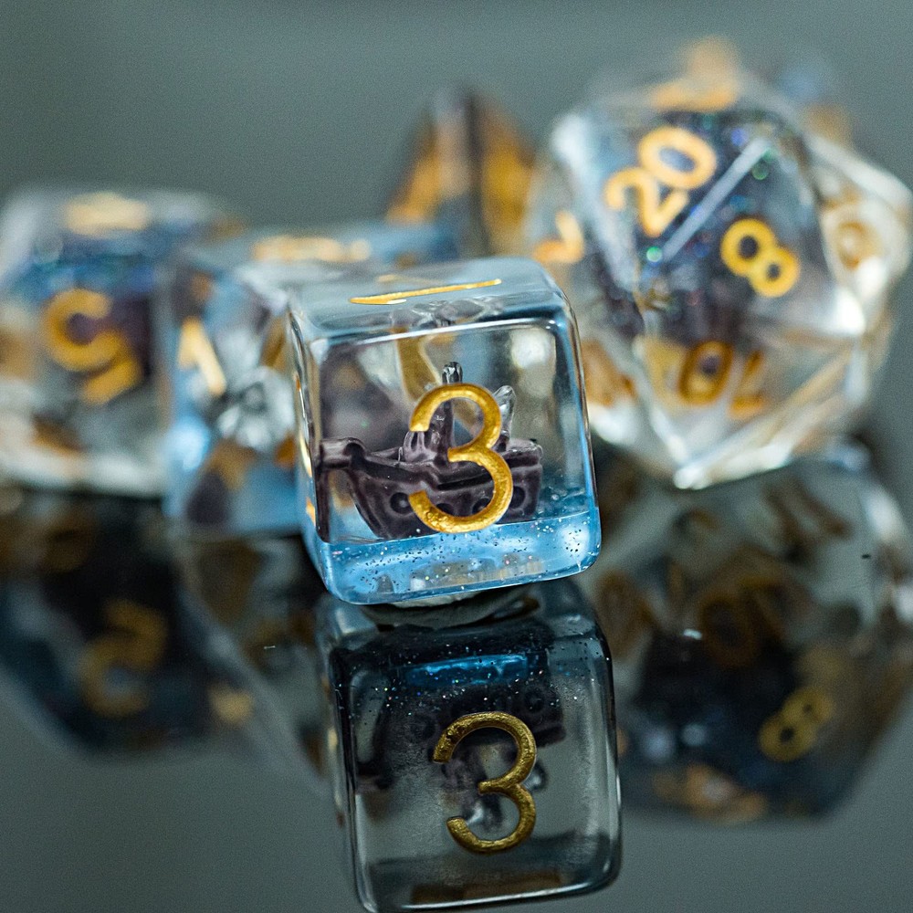 Udixi Polyhedral DND Dice Set with Sailboat Resin Design for Dungeons and Dragons