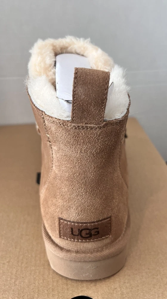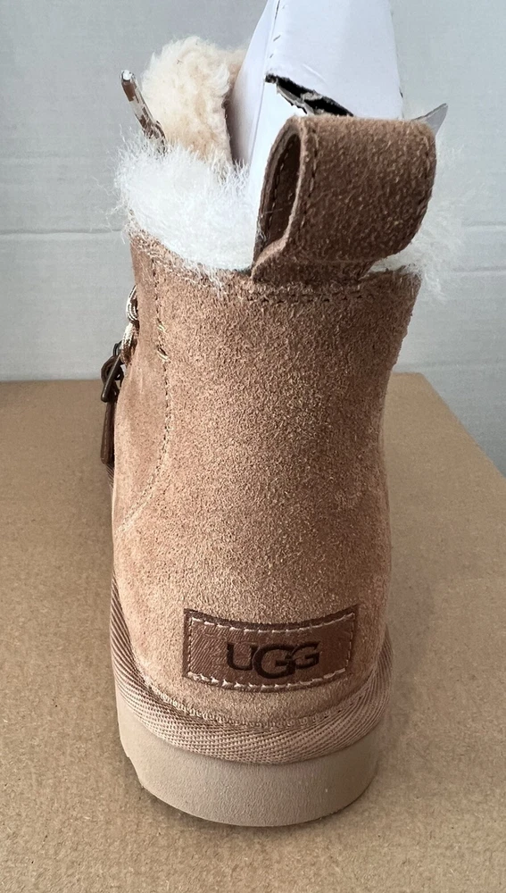 Elevate your winter style with these UGG Dune Mini Buckle Boots. Made with high-quality shearling fabric, these boots are perfect for keeping your feet warm and comfortable. The lace-up closure ensures a snug fit while the medium width makes them suitable for most foot sizes. These boots are designed for both travel and casual occasions, and their chestnut color complements any winter outfit. Made in Australia with suede upper material, these boots are durable and long-lasting. Add a touch of elegance to your winter wardrobe with these beautiful UGG boots. I’ve been told Uggs tend to run smaller in size so please be sure a size 8 will fit you comfortably. If you would like more photos please feel free to let me know. Thank you !