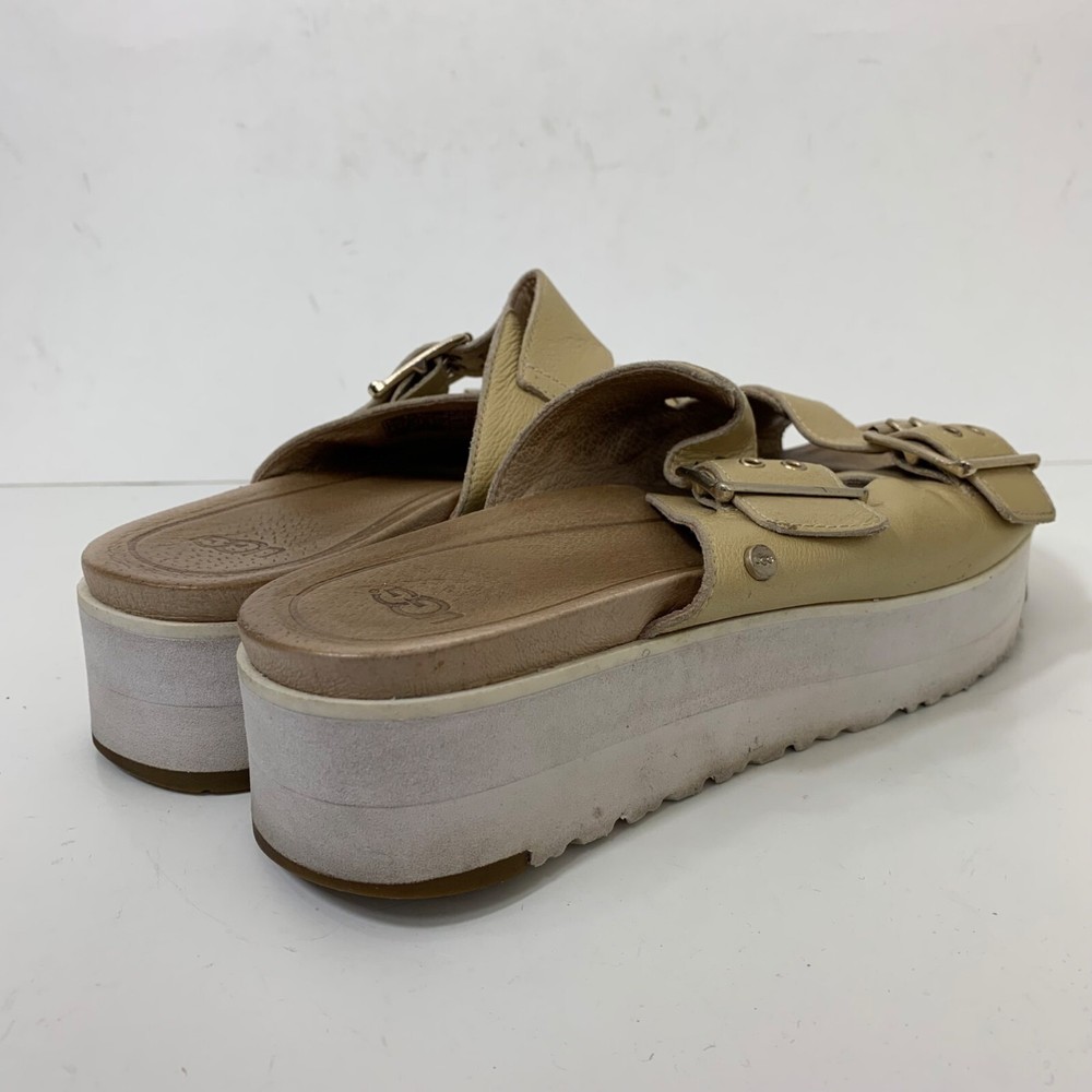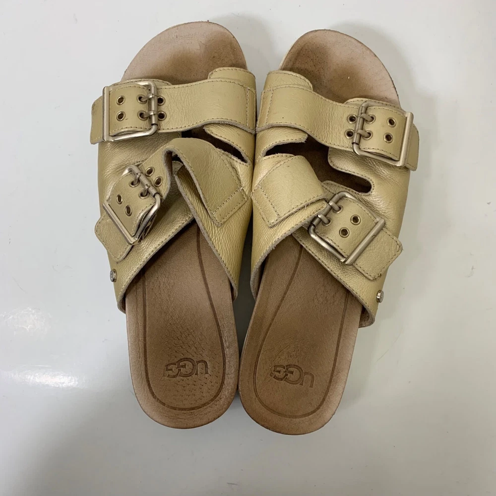 Ugg Cammie Metallic Slide Platform Sandals Gold - Size 8 Great preowned condition! 1.75” platform Dual buckle closure Slip on style Patent leather 1P40 28-2846 1 lb 6 oz Tags: casual, Lightweight, everyday, preppy,