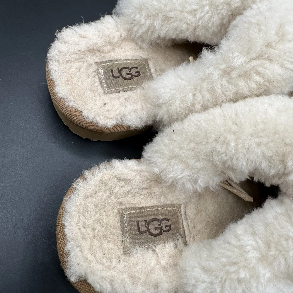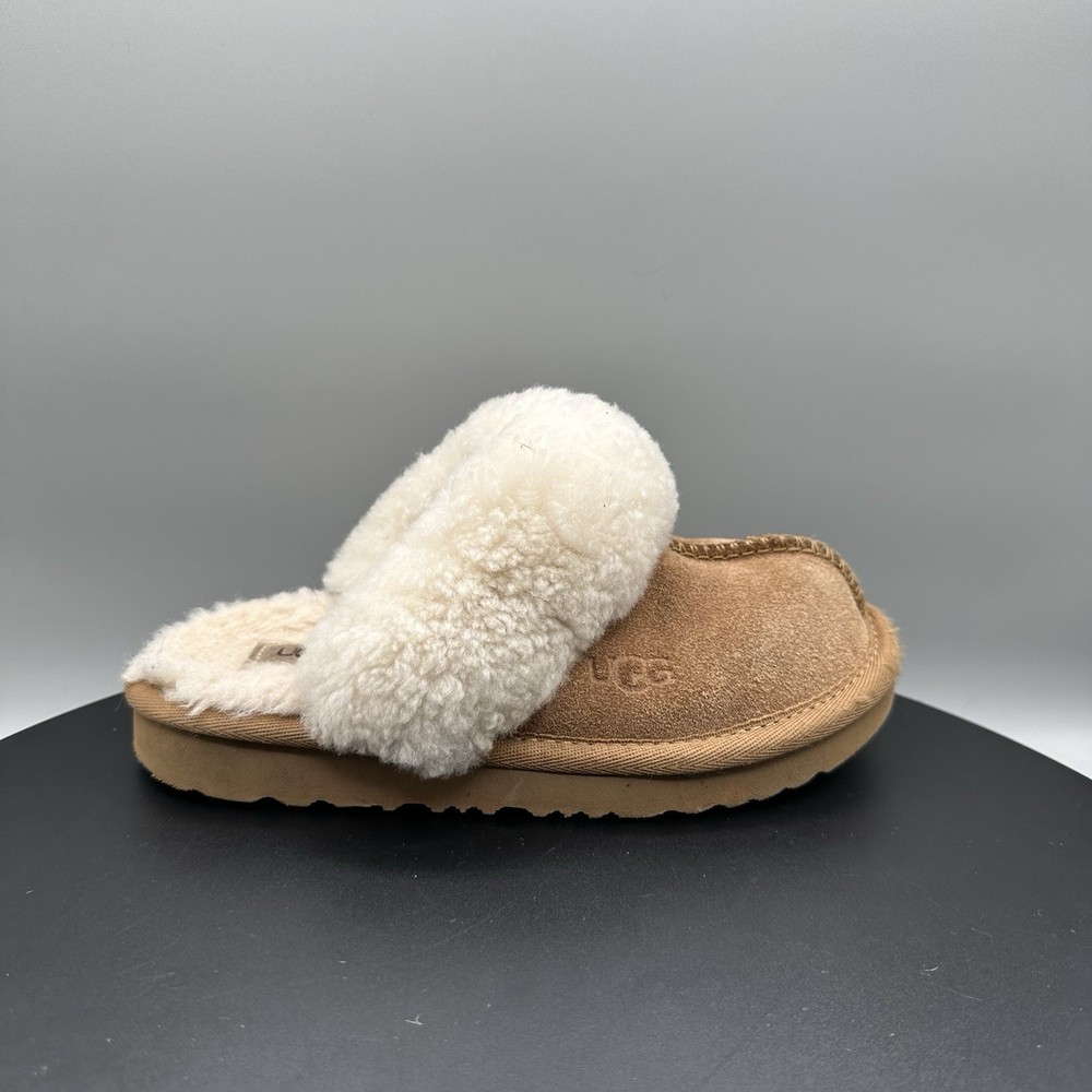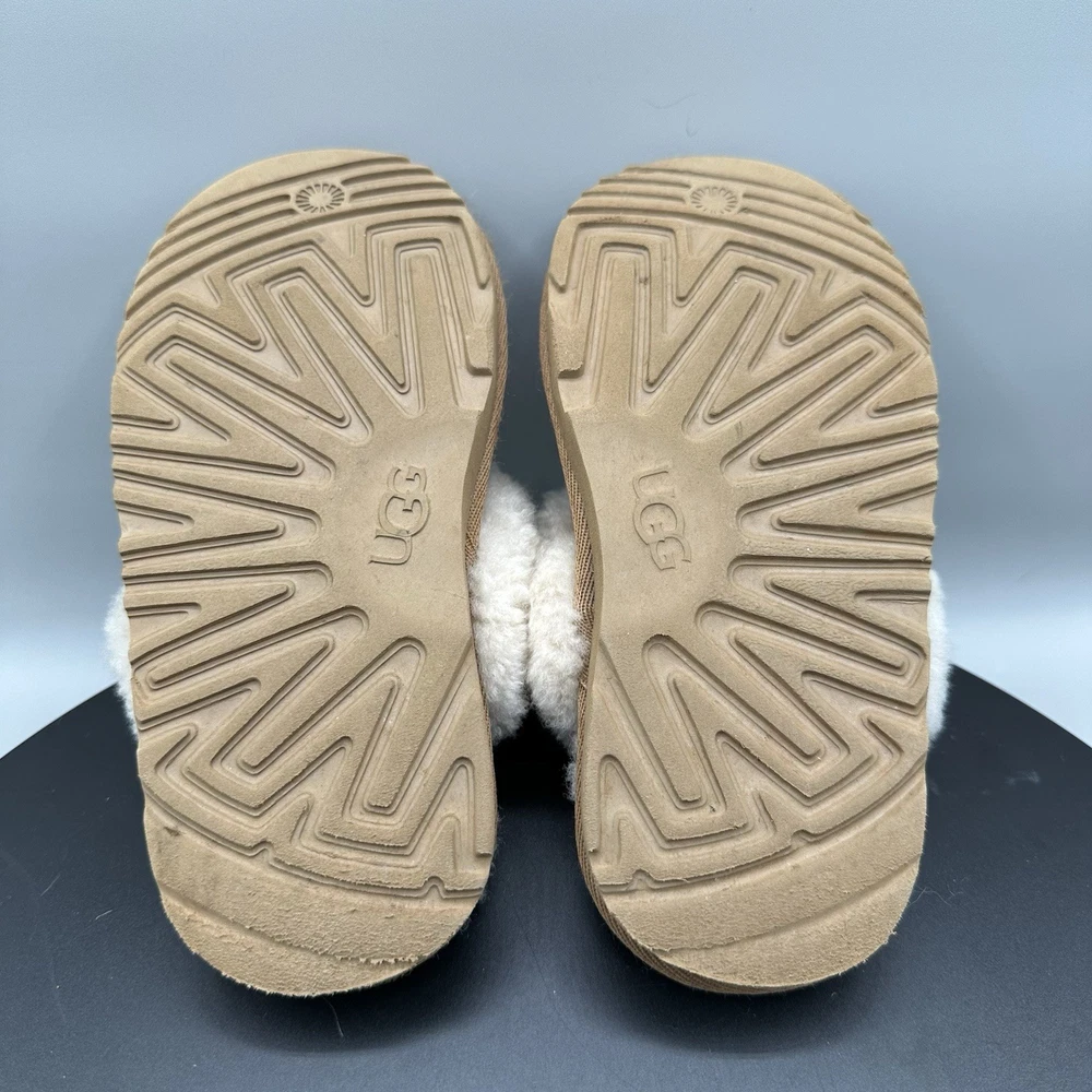 Ugg Cozy II Slipper Youth Size 11 Suede Sheepskin Chestnut Good pre-owned condition, marks on trim of one slipper. The Ugg Cozy II Slipper in youth size 11 is a cozy and stylish slipper perfect for girls. Made with suede and sheepskin lining, these slippers are ideal for casual or travel occasions during the winter, fall, or spring seasons. The slip-on style features a flat heel and fur trim accents, adding a touch of luxury to the design. With the iconic Ugg logo and a comfortable wool insole, these slippers combine both style and functionality for young girls on the go.