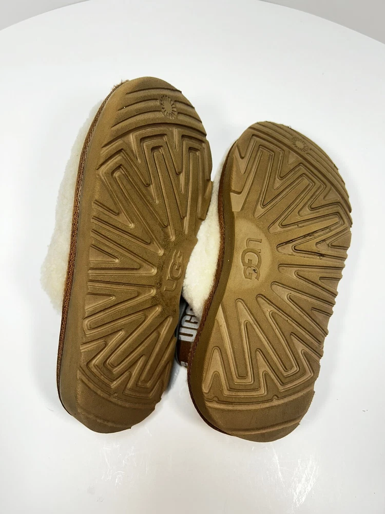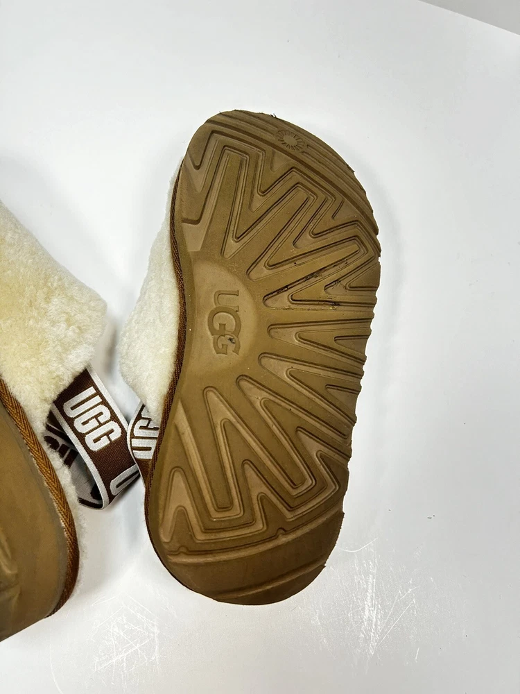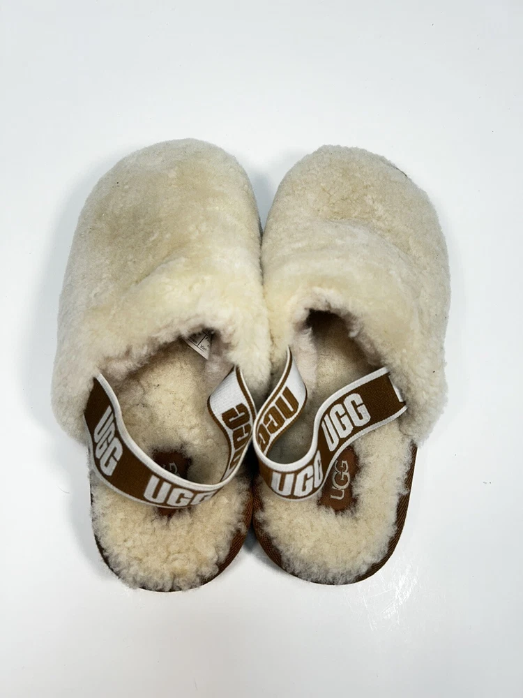 These UGG Fluff Yeah Slides Clogs are perfect for your little girl's casual occasions. The beige color, with a nature-inspired theme, is made from wool upper material and lined with sheepskin. The flat heel height ensures comfort, and the slide style makes them easy to wear and take off. These UGG Classic slides are a must-have for any girl's shoe collection.
