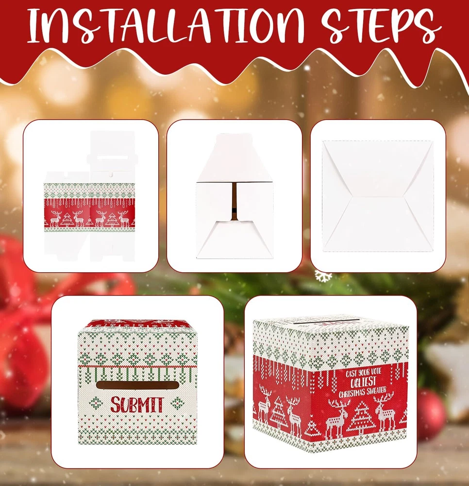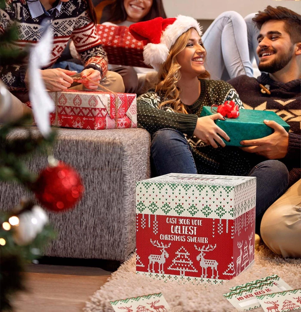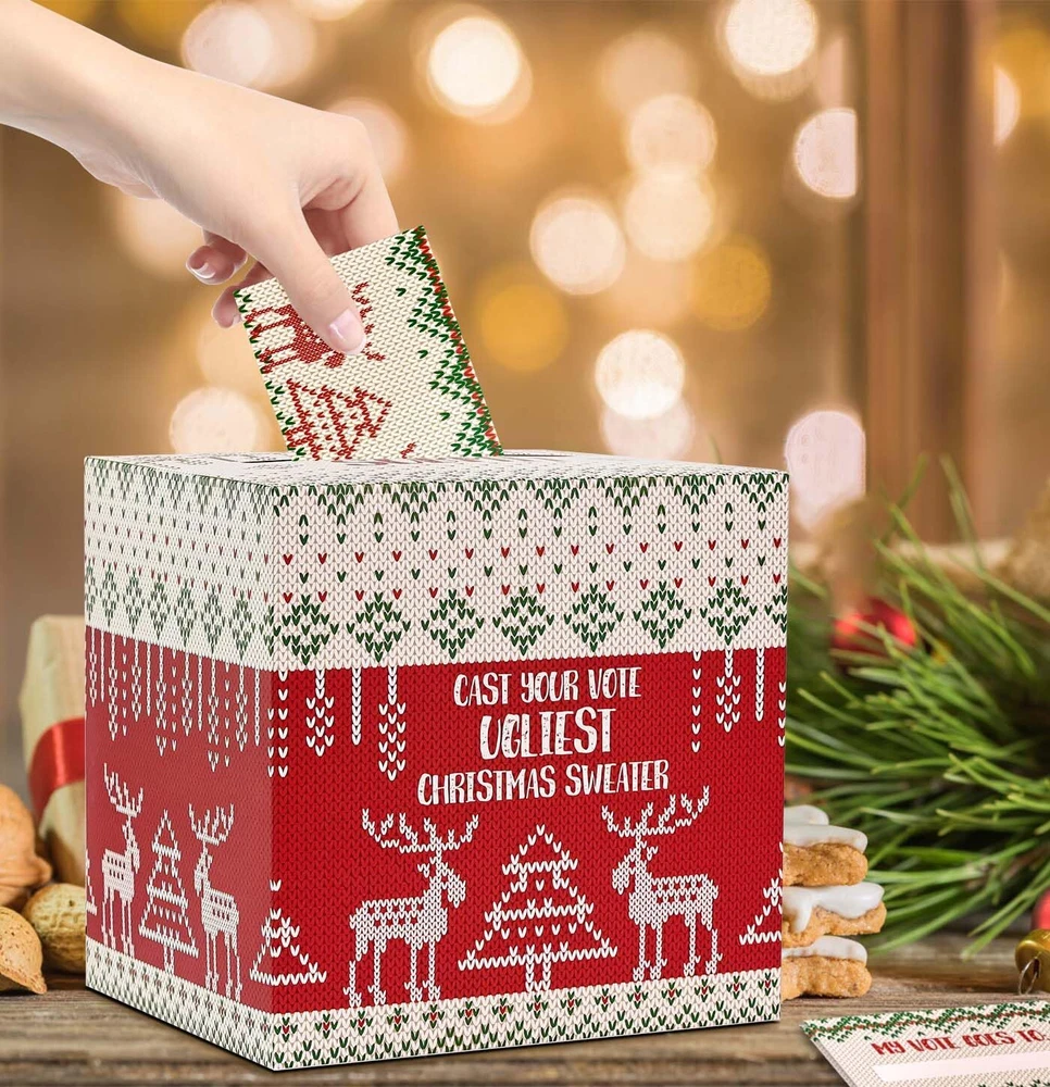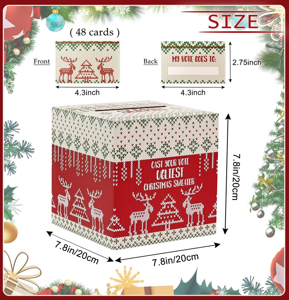 Ugly Sweater Contest Ballot Box Voting Box with 48 Voting Cards for Ugly Sweater Party Christmas New Year Ugly Christmas Sweater Ballot Box Ugly Sweater Contest Ballot Box Voting Box with 48 Voting Cards for Ugly Sweater Party Christmas New Year Ugly Christmas Sweater Ballot Box Product Overview Key Features Ugly sweater contest ballot box with voting cards: The ugly sweater ballot box is 7.8 X 7.8 X 7.8 inch, the voting cards with sweater pattern printed on both sides is 4.3 X 2.75 inches. The contest ballot box is a great choices for ugly sweater party game Costume contest voting box: The ugly Christmas sweater voting box for party is made of high quality cardboard, which is sturdy and can be reused. The ugly sweater contest ballot box is easy to assemble, you can assemble it easily and quickly Ballot box with slot: The ugly sweater party voting box is printed with ugly sweater, reindeer, Christmas tree and personalized fonts, and you can easily drop the voting cards into the slot at the top of the contest box. Using ballot box on your party will make more funny Ugly sweater party game: Send one or more voting cards to everyone, write down the name of the sweater owner you think is the ugliest, put the card into the ugly sweater voting box, and finally whoever gets the most votes be the winner Christmas party supplies : The Christmas ballot box with 48 voting cards can be used for ugly sweater party, New Year, costume party, Christmas party and so on. Using the Xmas ugly sweater voting box will give you an unforgettable funny Christmas memory Return Policy ⦿ Items can be returned within 30 days. Contact us through eBay messaging for return instructions. ⦿ We guarantee 100% satisfaction. Any issues will be resolved promptly. ⦿ Free shipping and returns with a 30-day money-back guarantee. ⦿ Please contact us for the return shipping address. Shipping Information ⦿ We ship to the address provided on eBay. Please ensure it is accurate. ⦿ Standard delivery time is 3-5 business days. ⦿ We use reputable shipping services such as UPS, FedEx, and USPS. ⦿ Currently, we ship only within the 48 contiguous states of the USA. ⦿ For any shipping concerns, feel free to contact us. Customer Support ⦿ For any inquiries, please contact us via eBay messaging. We typically respond within 24 hours. ⦿ Customer satisfaction is our top priority. ⦿ If you encounter any issues, please contact us before leaving feedback, and we will do our best to resolve them. About Us We are dedicated to providing high-quality products at competitive prices, ensuring that our customers receive the best value. Our team is committed to delivering exceptional customer service and a seamless shopping experience. With years of experience in the industry, we have established strong relationships with suppliers, enabling us to offer a diverse range of products. We continuously strive to expand our product selection and improve our services to exceed customer expectations. Our mission is to achieve 100% customer satisfaction by addressing any concerns promptly and effectively. Thank you for choosing our store. We look forward to serving you again and making your shopping experience delightful.