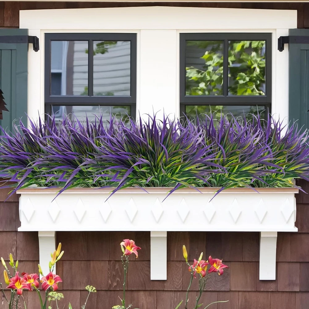 Uieke 12 Bundles Artificial Outdoor Plants UV Resistant Fake Grass 12, Purple Product Details Brand: Uieke Plant or Animal Product Type: grass Color: Purple Material: Plastic Product Dimensions: 3"D x 3"W x 17"H Recommended Uses For Product: outdoor Specific Uses For Product: Bouquet, Hotel Decor, Home Decor, Office Decor, Outdoor Decor Indoor/Outdoor Usage: Outdoor, Indoor Package Information: Vase Number of Items: 12 Room Type: Outdoor Patio Container Material: Plastic Special Feature: UV Resistant Included Components: Arrangement Accessories Item Package Quantity: 1 Shape: Square Unit Count: 12.0 Count Scent: Unscented Seasons: Autumn, Summer, Spring Manufacturer: Uieke Item Weight: 1.17 pounds Item model number: grass plant Stems Size: 15.2" tall x 9.5" Diameter (adjustable length); 12 bundles outdoor artificial plants on each package. Each artificial grass has 5 branches with dense leaves. The fake greenery stems can be disassembled and adjusted in shape at will Natural & Real Looking: The faux plants outdoor whether indoors or outdoors, can exhibit a similar appearance to real natural plants. This artificial grass plant can inject green and vitality into your room or garden, creating a comfortable atmosphere that allows you to relax UV resistant & No Maintenance: These artificial plants outdoor are made of high quality plastic materials, making them an ideal choice for landscape project or outdoor decoration. They do not require sunlight, watering, trimming, or other maintenance. No matter where you choose to showcase, these artificial greenery will always bloom, bringing you long-lasting beautiful effects Suitable for Spring and Summer decor: These lush fake outdoor plants not only add charm to your yard, front porch, backyard, garden, balcony, windowsill, and terrace. Also it is very suitable for daily garden decoration, commemorative places, DIY projects, etc Warm Tips: It is normal there may be some odor of Artificial plants for outdoors, you just need to keep it in a ventilated environment for a while. The artificial plants outdoor may be squeezed during packaging and transportation, which may cause slight deformation. It can be restored to its original state through manual installation and paving