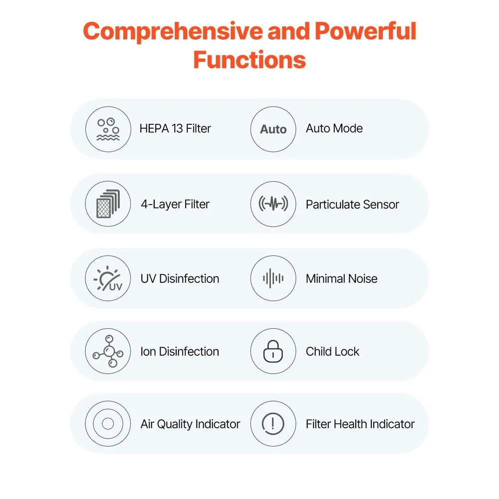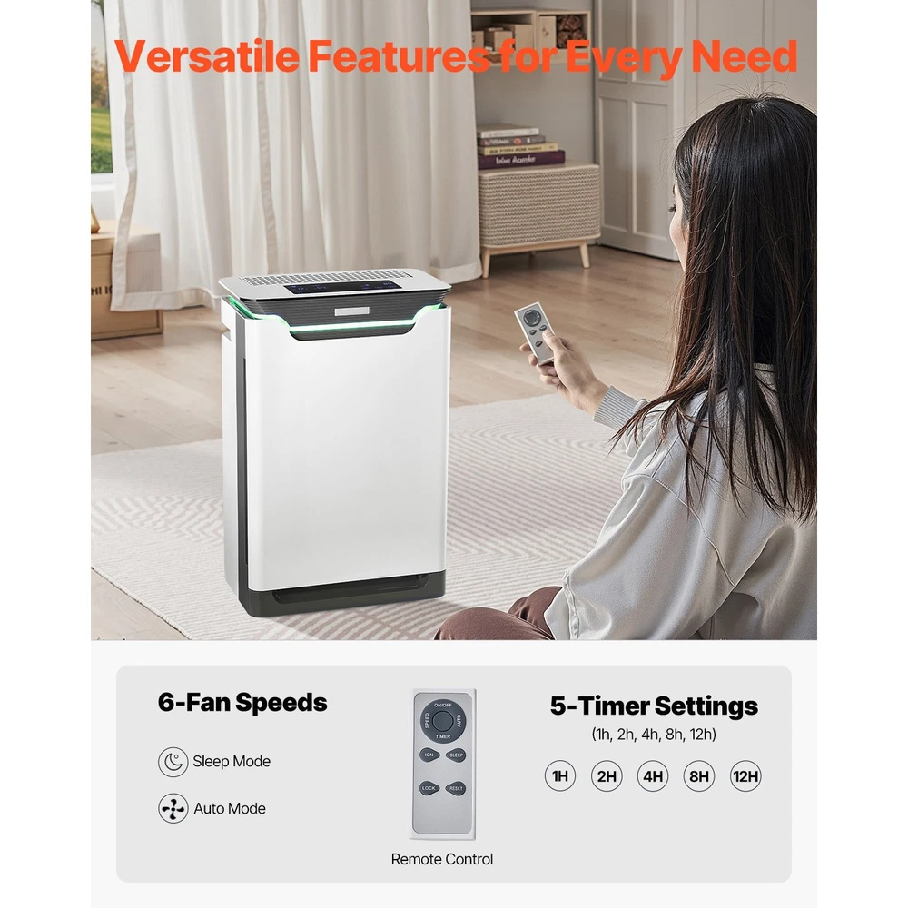 Air Purifier This air purifier covers 2000 ft²/h with a CADR of 420 m³/h. It features HEPA and activated carbon filters and PM2.5 detection to capture dust, smoke, and pet dander. In auto mode, it can automatically adjust airflow. The 1.5 L water tank provides natural evaporation for fresh, comfortable air. This air purifier and humidifier features an auto mode that adjusts the purification speed based on air quality, delivering optimal purification at all times. For added convenience, this air cleaner can be wirelessly controlled with a remote from the comfort of your sofa. It also features a hassle-free water refill design that doesn't require bending down. This HEPA air purifier's minimum noise is no more than 36dB, keeping your baby's sleep undisturbed. This home air purifier's "RESET" indicator lamp will flash to remind you when it's time to replace the filter. The replacement process is simple and convenient, allowing you to do it with ease. Features & Details Efficient Purification: This air purifier purifies up to 2000 sq. ft per hour with a CADR of 420 m³/h, suitable for living rooms, bedrooms, and other large spaces. It improves air quality and provides a clean breathing environment for your home. Comprehensive Air Cleaning: This air purifier and humidifier's HEPA 13 filter, combined with pre-filter, HEPA, activated carbon, and cold catalyst, effectively traps pollen, dust, odors, and VOCs. UV and negative ion technology reduce contaminants in the air, making it ideal for allergy sufferers and pet owners. Low Noise Operation: This air cleaner's minimum noise is no more than 36dB, and its sleep mode is especially suitable for households with babies or sensitive users. The 1.5 L water tank delivers 150 mL/h of humidification, relieving dryness in autumn and winter and improving skin and respiratory comfort. Intelligent Control: This HEPA air purifier's built-in PM2.5 sensor monitors air quality in real-time, and an automatic system adjusts the purification speed. The auto mode also tracks the filter's service life and reminds you when it's time to replace it, ensuring long-term efficiency. Convenient Features: This home air purifier has 6-fan speeds, auto mode, sleep mode, and 5-timer settings to meet various needs. The remote control allows easy operation from the sofa, which is outstanding for elderly or mobility-impaired users. SHIPPING ABOUT US PAYMENT RETURNS CONTACT WARRANTY Welcome to our eBay store. As a leading and emerging company in manufacturer and exporting business, we are specialized in Business and Industrial Products, Sporting Goods, Pet Products, Home and Garden products for more than 10 years. We believe that it is our vision and mission to provide innovative products with best service and competitive price to satisfy you. Our goal is to make sure that you can find exactly what you are looking for and make it easy for you to place your orders. We accept PayPal payment,PayPal Credit,Credit card or debit card and so on. Payment should be completed within 4 (Four) days of auction closing. Or unpaid dispute will be filed for closing auction. We will leave a positive feedback immediately after payment is received. We appreciate a positive feedback as much as you do. If for some reason there is any issue with the purchase, please contact us prior to leaving feedback, we will be glad to work together and provide a satisfying solution. Please be aware that PO Box cannot receive items, please DO NOT fill in the PO Box address. DELIVERY DAYS: 3-7 BUSINESS DAYS 3 BUSINESS DAYS SHIPPING OUT SHIP FROM CA & TX & NJ & GA & NC &OR WAREHOUSE California Warehouse: City of Industry, CA Texas Warehouse : Houston, TX New Jersey Warehouse : Perth Amboy, NJ New York State Warehouse: Perth Amboy, NJ Georgia Warehouse: Austell,GA North Carolina Warehouse: Grove NC Oregon Warehouse: AIRPORT WAY Portland,OR All of our items are backed with a 30-day return policy. We ensure all our items are new and in excellent condition prior to shipping. In case you receive the item that is not to the standards above, please contact us via e-Bay messages. All returns must be in new original condition as received and should be shipped with delivery confirmation Please note that all returns must be pre-approved by us. Unauthorized returns will not be accepted. If you need to return, please check twice to confirm the item not work and contact our customer service representative, let us know the detailed problem and send us some pictures for confirmation. We ONLY accept returns with original package. Please make sure that item has NO man-made sabotage. Used items will not be accepted for return. Email Customer Support: 9:00am-2:00am PST Sunday-Friday All emails will be responded to within 12-24 hours This item comes with 12 months Warranty from the date of customers purchased it. Special circumstances will be listed clearly in the listing. If your item has been damaged in transit or become faulty in warranty period, please email us with pictures or video to show the problem. Please do check everything carefully after you received the parcel, any the damage except DOA (Dead-On-Arrival) would not be covered if it's your fault. Replacement products are provided with the same warranty as the returned products. Air Purifier This air purifier covers 2000 ft²/h with a CADR of 420 m³/h. It features HEPA and activated carbon filters and PM2.5 detection to capture dust, smoke, and pet dander. In auto mode, it can automatically adjust airflow. The 1.5 L water tank provides natural evaporation for fresh, comfortable air. This air purifier and humidifier features an auto mode that adjusts the purification speed based on air quality, delivering optimal purification at all times. For added convenience, this air cleaner can be wirelessly controlled with a remote from the comfort of your sofa. It also features a hassle-free water refill design that doesn't require bending down. This HEPA air purifier's minimum noise i