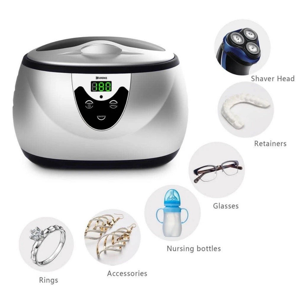 This ultrasonic cleaner is a game-changer! It effortlessly removes dirt and grime from my jewelry, glasses, and even dentures in minutes. The compact size is perfect for small items, and the stainless steel tank feels durable. The timer function is super convenient, and it cleans deeper than manual scrubbing. Highly recommend for anyone who wants a quick, hassle-free way to keep their accessories sparkling!