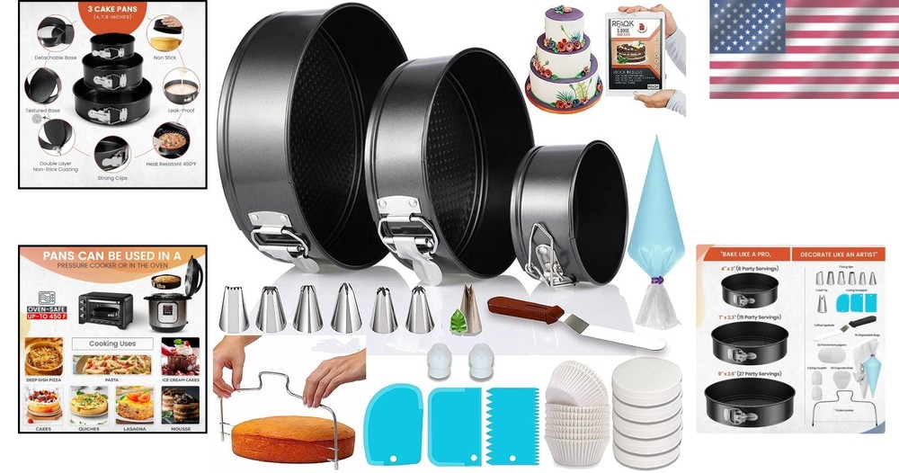 Ultimate 100-Piece Cake Pan Set: 3 Non-Stick Springform Pans & Decorating Tools ‹ › ‹ › ‹ › ‹ › ‹ › ‹ › ‹ › ‹ › Ultimate 100-Piece Cake Pan Set Create magnificent cakes with effortless elegance using this comprehensive baking set. Perfect for both seasoned bakers and enthusiastic novices, this set brings together essential tools for baking and decorating, ensuring every creation is a masterpiece. What’s Included: ✔ 9-inch Springform Pan ✔ 7-inch Springform Pan ✔ 4-inch Mini Cake Pan ✔ 30 Pcs Parchment Paper Liners ✔ 1 Cake Leveler ✔ 7 Icing Tips ✔ 2 Piping Bag Couplers ✔ 1 Icing Spatula ✔ 3 Scrapers ✔ 15 Disposable Piping Bags ✔ 40 Disposable Cupcake Liners Features: 🟢 Non-Stick & Leak-Proof Design: Say goodbye to the frustrations of stuck cakes and messy leaks—the quality springform pans ensure easy release every time. 🟢 Versatile Baking: Bake not only cheesecakes but also pizzas, ice-cream cakes, quiches, and more with this multi-functional set. 🟢 Complete Decorating Suite: From icing tools to spatulas, this set includes everything you need to elevate your cake presentation with ease. Why Choose Our 100-Piece Cake Pan Set? At , we know that baking transcends simple cooking—it's an art form accessible to everyone. This Ultimate 100-Piece Cake Pan Set is meticulously crafted to inspire your creativity. Each piece has been tested for quality and durability, ensuring you receive nothing less than exceptional. Additionally, all our products are BPA-free, providing safety for you and your loved ones. Plus, we offer a complimentary eBook filled with tips and techniques to help you make the most of your new baking adventure. Transform your cake-baking and decorating experience and bring joy to your celebrations. Order your Ultimate 100-Piece Cake Pan Set today and take the first step in leveling up your culinary creations! Shipping Free & Fast Shipping - We offer free shipping to most of the USA with a normal delivery time of 3-7 days. However, due to the current situation, additional delivery time (up to 3 weeks) may be required for some items. Alternative Carriers - We may use alternative carriers (e.g. USPS, FedEx, UPS, etc.) to ensure your package arrives safely and on time. Due to the use of multiple carriers, we are unable to provide a tracking number automatically. Handling Time - Orders are processed and shipped within 1-2 business days of receiving cleared payment. Shipping Restrictions - Shipping to Alaska, Hawaii, Puerto Rico, Guam, and other US territories may incur shipping charges or delivery restrictions. Please contact us before ordering, or your order can be refunded/cancelled. State Restrictions - There may be restrictions based on your state of purchase. For example, certain items may not be shipped to California due to state regulations. Contact for Tracking Updates - If you require tracking updates or have any concerns about the delivery of your order, please feel free to contact us, and we will be happy to assist you. Return 30-Day Hassle-Free Returns - We want you to be completely satisfied with your purchase. If you are not, you can return the item within 30 days of receiving it for a full refund or exchange. Easy Return Process - To start a return, simply contact us and we will provide you with a prepaid return shipping label and detailed instructions. Restocking Fee - There are no restocking fees for returns. However, the buyer is responsible for return shipping costs if the return is not due to a seller's error. Refund Processing Time - Refunds will be processed within 5 business days of receiving the returned item in its condition. Payment We accept all major credit cards, PayPal, and Apple Pay for your convenience. Your payment information is secure and encrypted to ensure a safe and seamless transaction. Please complete your payment within 3 days of purchase to avoid any delays in shipping. Feedback Your feedback is extremely important to us. We strive to provide the best products and customer service possible. If you are satisfied with your purchase, please take a moment to leave us a positive review. If you have any concerns or issues with your order, please contact us before leaving negative feedback. We are committed to resolving any problems and ensuring your satisfaction. Contact Us If you have any questions or concerns, please feel free to out to our customer support team. You can contact us through the eBay messaging system. We are available Monday to Friday, 9:00 am to 5:00 pm EST, and we will do our best to respond to your inquiry within 24 hours. Buy it now and enjoy a pleasant shopping experience! Model: Cake Baking and Decorating Supplies Unit Quantity: 100.0 count Material: Carbon Steel Character: Cake Baking and Decorating Supplies Features: Dishwasher Safe,Non-Stick,Leak Resistant,Oven Safe,Removable Bottom Color: Black Type: Cake Pan Set Number in Pack: 100 Number of Items: 1 Occasion: Birthday Item Height: 8.9 Centimeters Item Diameter: 9 in