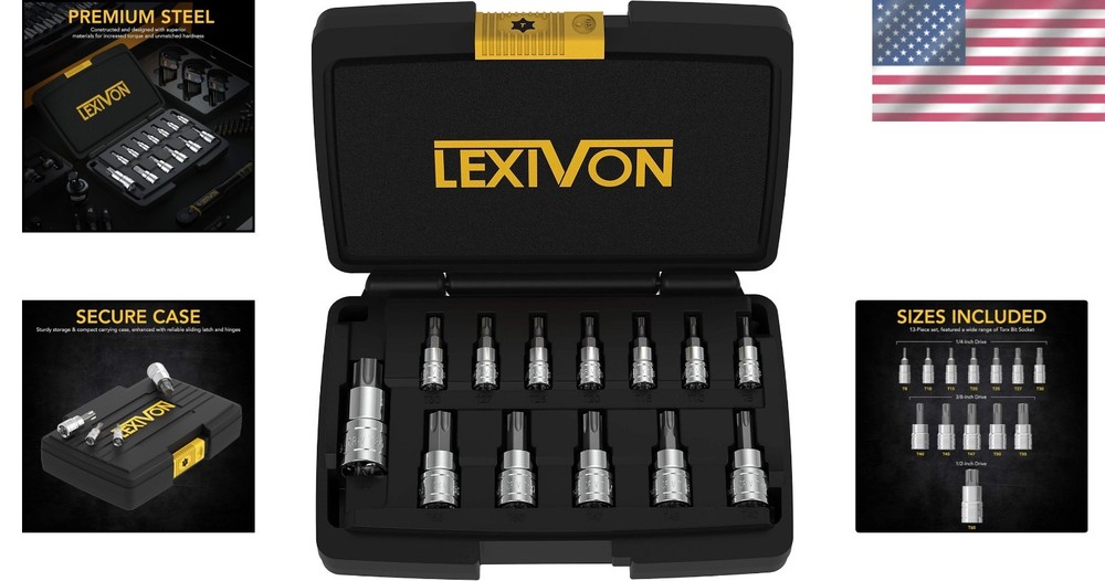 Ultimate 13-Piece Torx Bit Socket Set - Durable S2 Steel with ASTM Certification ‹ › ‹ › ‹ › ‹ › ‹ › ‹ › ‹ › ‹ › ‹ › Ultimate 13-Piece Torx Bit Socket Set Discover the power of precision with our 13-Piece Torx Bit Socket Set - expertly crafted for unmatched torque and durability. Designed for both DIY enthusiasts and professionals, this tool set is your ultimate companion for tackling any project with efficiency and ease. Features: Quality: Features a diverse range of Torx Bit Socket crafted from superior materials for greater torque and extraordinary hardness. Durable Construction: Drop-forged, heat-treated S2 alloy steel bits and hardened Chrome Vanadium steel sockets significantly reduce wear and enhance turning power. Longevity: Enjoy complete rust and corrosion resistance with fully polished chrome plated mirror finish sockets and Zinc Phosphate bits treatment. Comfortable Usage: The precision chamfered bit ends allow for smooth insertion. Sizes are conveniently stamped on both the sockets and the heavy-duty storage case for quick identification. Risk-Free Guarantee: Meets and exceeds ANSI (American National Standards Institute) standards and backed by our Lifetime Limited for your complete peace of mind. What’s Included: 1/4” Drive: T8, T10, T15, T20, T25, T27, T30 3/8” Drive: T40, T45, T47, T50, T55 1/2” Drive: T60 Why Choose Our Torx Bit Socket Set? This set is not just a tool; it's your gateway to unparalleled craftsmanship and efficiency. Each bit is born from cutting-edge CNC technology, ensuring precision and protecting both your bits and fasteners. The specially designed storage case keeps everything organized, so you can focus on what matters – getting the job done right. Moreover, the extensive range of sizes included makes it suitable for various applications, including bikes, automobiles, appliances, lawn equipment, and machinery. Always be prepared for any job thrown your way! Your Investment in Quality Purchase the Ultimate 13-Piece Torx Bit Socket Set today and transform your toolkit into one that meets professional standards. With our Lifetime Limited , you can be assured of our commitment to quality and customer satisfaction. What are you waiting for? Scroll Up , click ‘Add To Cart,’ and gear up for your next project! Shipping Free & Fast Shipping - We offer free shipping to most of the USA with a normal delivery time of 3-7 days. However, due to the current situation, additional delivery time (up to 3 weeks) may be required for some items. Alternative Carriers - We may use alternative carriers (e.g. USPS, FedEx, UPS, etc.) to ensure your package arrives safely and on time. Due to the use of multiple carriers, we are unable to provide a tracking number automatically. Handling Time - Orders are processed and shipped within 1-2 business days of receiving cleared payment. Shipping Restrictions - Shipping to Alaska, Hawaii, Puerto Rico, Guam, and other US territories may incur shipping charges or delivery restrictions. Please contact us before ordering, or your order can be refunded/cancelled. State Restrictions - There may be restrictions based on your state of purchase. For example, certain items may not be shipped to California due to state regulations. Contact for Tracking Updates - If you require tracking updates or have any concerns about the delivery of your order, please feel free to contact us, and we will be happy to assist you. Return 30-Day Hassle-Free Returns - We want you to be completely satisfied with your purchase. If you are not, you can return the item within 30 days of receiving it for a full refund or exchange. Easy Return Process - To start a return, simply contact us and we will provide you with a prepaid return shipping label and detailed instructions. Restocking Fee - There are no restocking fees for returns. However, the buyer is responsible for return shipping costs if the return is not due to a seller's error. Refund Processing Time - Refunds will be processed within 5 business days of receiving the returned item in its condition. Payment We accept all major credit cards, PayPal, and Apple Pay for your convenience. Your payment information is secure and encrypted to ensure a safe and seamless transaction. Please complete your payment within 3 days of purchase to avoid any delays in shipping. Feedback Your feedback is extremely important to us. We strive to provide the best products and customer service possible. If you are satisfied with your purchase, please take a moment to leave us a positive review. If you have any concerns or issues with your order, please contact us before leaving negative feedback. We are committed to resolving any problems and ensuring your satisfaction. Contact Us If you have any questions or concerns, please feel free to out to our customer support team. You can contact us through the eBay messaging system. We are available Monday to Friday, 9:00 am to 5:00 pm EST, and we will do our best to respond to your inquiry within 24 hours. Buy it now and enjoy a pleasant shopping experience! Manufacturer Part Number: Torx Bit Socket Set Unit Quantity: 1.0 Tools Included: Sockets,Torx Bits Size: 1/4in.,T8,T10,T15,T20,T25,T27,T30,T40,T45,T47,T50,T55,T60 Socket Type: Standard Drive Type: Torx Drive Size: 1/4in. Surface Finish: Chrome Number of Pieces: 13