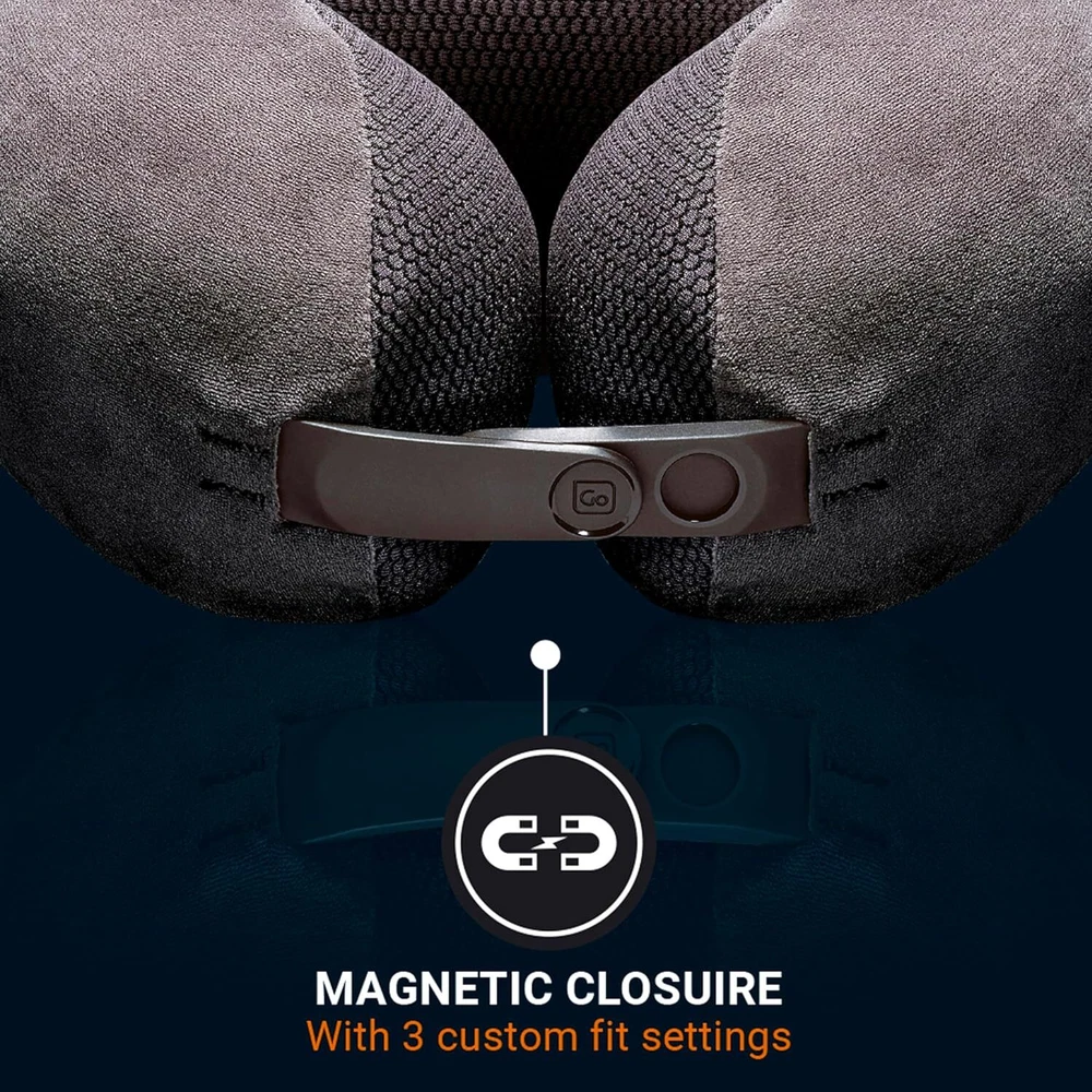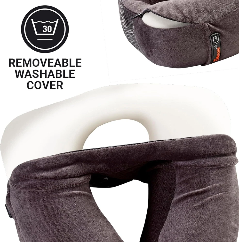 The Ultimate 3.0 Travel Pillow is designed to provide the ultimate travel comfort. This premium neck pillow features deluxe memory foam that molds to your neck and head for uninterrupted rest. It is perfect for everyday commutes, airplane travel, car rides, and more. The pillow includes a magnetic closure with three custom-fit settings (Relaxed, Cosy, Snug) to ensure a perfect fit for every user. The non-slip rear grip provides a stable sleeping position, while the bamboo fabric blend inner material stays cool and hypoallergenic. The luxurious outer fabric is super soft and removable, making it easy to wash. This travel essential is made in the USA and comes in a stylish dark gray color . On Jan 26, 2025 at 23:15:19 PST, seller added the following information: