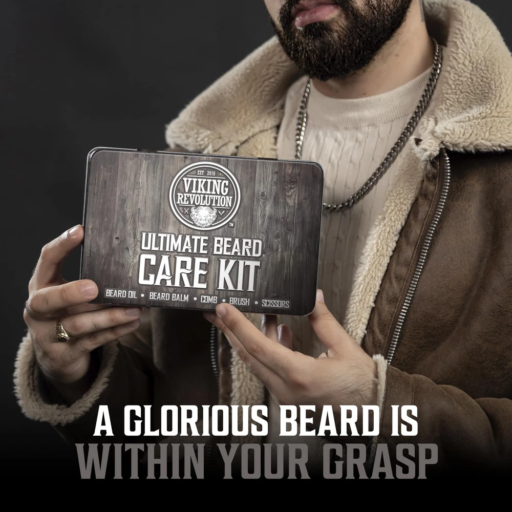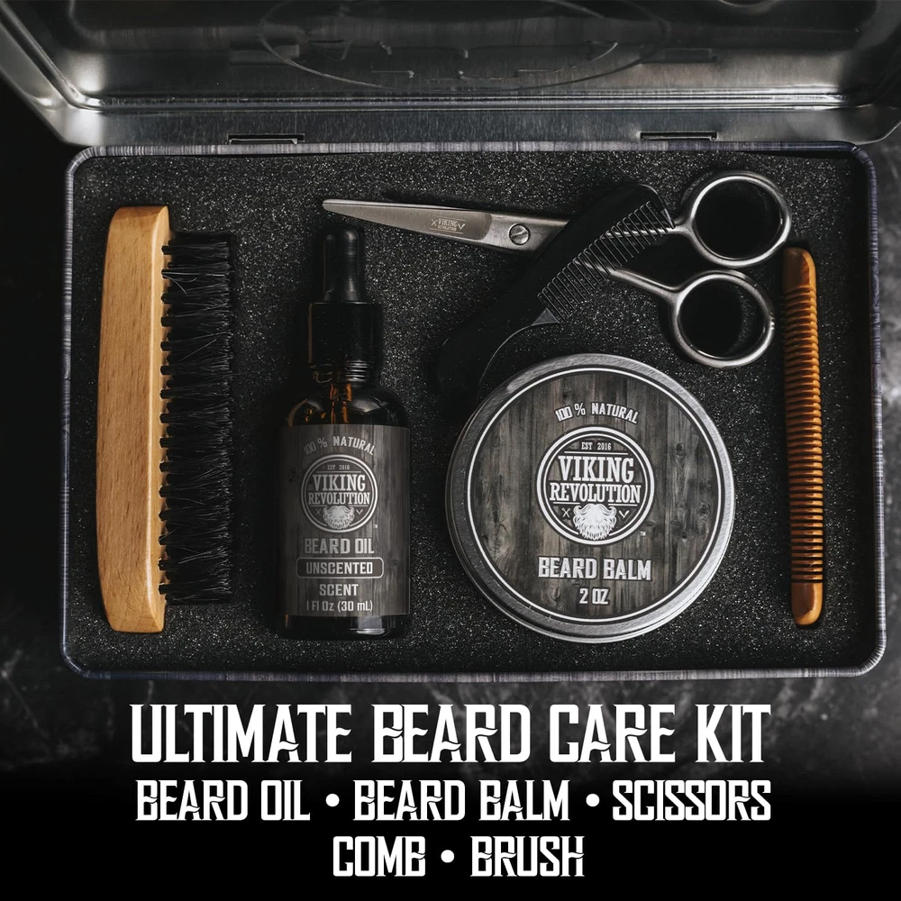 Perfect Holiday Gift For Men - Viking Revolution Beard Kit for men is what your man needs to look smoking hot this holiday! This ultimate beard care kit contains Wooden Boars Hair Beard Brush, Double Sided Pocket Beard Comb, Unscented Beard Care Oil, Citrus Scent Beard Styling Balm, and Beard Scissors in a sleek & stylish metal tin. Complete Grooming: Use the brush and comb for detangling your beard before giving it a trim with the scissors. Then moisturize and soften the hair with beard oil, before styling with the beard balm. Great Value Set: We’ve combined the best mustache and beard care products we can offer in this ultimate grooming set at a fantastic price. Get an amazing deal on brilliant beard care products. Perfect Gift: Ideal for anyone with a beard or mustache, or thinking about growing one, all the beard care products they need come in this portable, travel friendly metal gift box. The Viking Promise: If for any reason, you’re not completely satisfied, simply contact us and we’ll take care of it. Product description 1 BEARD CARE 2 HAIR CARE 3 FACE & BODY 4 SHAVING 5 GIFTS & SETS Find More Legendary Viking Products Add to Cart Add to Cart Add to Cart Add to Cart Add to Cart Add to Cart Add to Cart Customer Reviews 4.7 out of 5 stars 8,950 4.6 out of 5 stars 30,331 4.7 out of 5 stars 10,156 4.6 out of 5 stars 20,210 4.6 out of 5 stars 20,210 4.6 out of 5 stars 4,376 4.7 out of 5 stars 10,156 Price $29.88 $ 29 . 88 $9.99 $ 9 . 99 $29.99 $ 29 . 99 $29.88 $ 29 . 88 $29.88 $ 29 . 88 $49.99 $ 49 . 99 $29.88 $ 29 . 88 Use Beard Care Beard Care Beard Care — Beard Growth Shaving Beard Care Boar Bristle Brush ✔ ✔ ✘ ✔ ✘ ✘ ✔ Pear Wood Comb ✔ ✔ ✔ ✔ ✔ ✘ ✔ Beard Oil ✔ ✘ ✔ ✔ ✔ ✘ ✔ Brand Viking Revolution Viking Revolution Viking Revolution Viking Revolution Viking Revolution Viking Revolution Viking Revolution