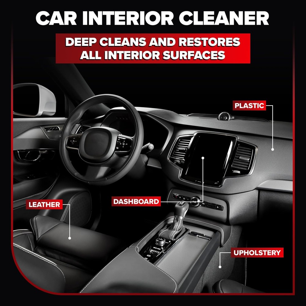 THE PROBLEM: Tired of car interior cleaners that promise professional results but leave your leather seats sticky, your fabric seats smelling worse, or your carpet still stained? Most car upholstery cleaners on Amazon either don't work on tough stains, damage your leather, or mask odors instead of eliminating them. THE SOLUTION: Carfidant Ultimate Cleaner is a professional-grade car seat cleaner and interior detailer that actually works on the toughest stains - coffee, grease, ink, pet urine, food spills, and more. Unlike Chemical Guys or Turtle Wax, our pH-balanced formula is safe on ALL interior surfaces including leather, vinyl, fabric, alcantara, carpet, and plastic. WHY CUSTOMERS LOVE IT: ✓ Removes stains other cleaners can't - Before & after photos in our reviews prove it ✓ Eliminates odors at the source with bio-enzymatic technology - not just masking ✓ Safe for pets and kids - lab-tested, vet-approved, non-toxic formula ✓ Tesla Model 3/Y white seat approved - won't cause discoloration ✓ Professional trigger sprayer included - no cheap plastic that breaks ✓ Premium microfiber towel included - streak-free results guaranteed ✓ Made in USA with eco-friendly ingredients - biodegradable, sustainable HOW TO USE: 1. Shake bottle well 2. Spray evenly on stained surface 3. For tough stains, let sit 2-3 minutes 4. Wipe clean with included microfiber towel 5. For deep cleaning, use with drill brush (compatible) 100% SATISFACTION GUARANTEE: If Carfidant Ultimate Cleaner doesn't remove your stains, we'll refund your money - no questions asked. We stand behind our product because we know it works. PERFECT FOR: Pet owners dealing with accidents and odors Parents with kids and messy car seats Tesla owners protecting white seats Professional detailers looking for reliable products Anyone wanting showroom-clean car interiors GUARANTEED STAIN REMOVAL - Professional-grade formula removes tough stains (coffee, grease, ink, pet accidents) that competitors can't handle. Before & after photos in reviews prove it works. TRUE ODOR ELIMINATION (NOT MASKING) - Bio-enzymatic formula neutralizes odors at the molecular level instead of just covering them up. Perfect for pet owners dealing with urine, vomit, or wet dog smell. Lab-tested, vet-approved formula is completely safe for kids and pets. SAFE ON ALL INTERIOR SURFACES - pH-balanced formula works safely on leather, vinyl, fabric, alcantara, carpet, and plastic without causing discoloration or damage. Specifically tested and approved for Tesla Model 3/Y white seats. Won't leave greasy residue like cheap cleaners do. PROFESSIONAL TRIGGER SPRAYER INCLUDED - Heavy-duty commercial-grade sprayer won't break after 3 uses like competitors' cheap plastic nozzles. Comes with premium microfiber towel for streak-free results. Compatible with drill brush attachments for deep cleaning car seats and upholstery. ECO-FRIENDLY USA MADE QUALITY - Biodegradable, non-toxic formula manufactured in the USA. Fresh, clean scent (not harsh chemical smell that lingers). Available in larger 32oz size for heavy users. Subscribe & Save for 15% off + never run out when you need it most.