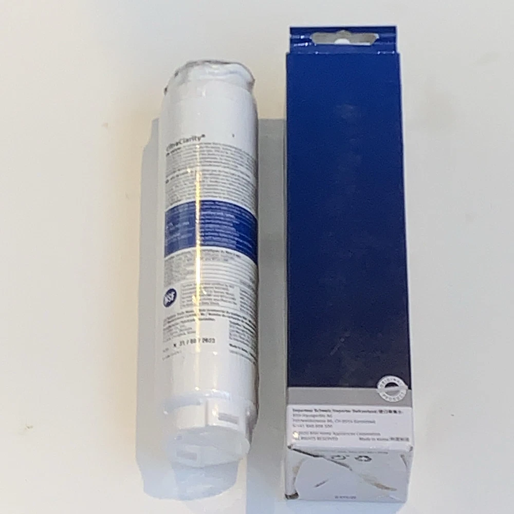 The Ultra Clarity Pro Water Filter is designed for use with Bosch, Thermador, and Gaggenau refrigerators. It is compatible with models from Neff, Siemens, and Bosch, and is made in Korea. The filter uses a carbon block filtration method to remove chlorine taste and odor, making it suitable for both commercial and household use. It is a white water filter that comes in a pack of one and is suitable for Bosch, Thermador, and Gaggenau refrigerators.