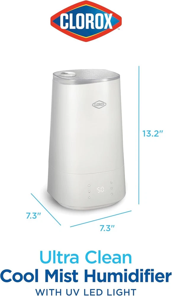 Product Description Ultra Clean Cool Mist Air Humidifier for BedRoom with UV LED Light to Reduce Germs and Bacteria, Whisper Quiet, 4L Water Tank for up to 40 Hours of Continuous Steam, White (11080) STAYS CLEANER LONGER WITH GERM-REDUCING TECHNOLOGY*: This room humidifier requires less cleaning than traditional humidifiers. The UV LED light in its base helps reduce growth of bacteria and mold in the water and on the surfaces of the water tray. EASY TO FILL AND CLEAN WATER TANK: The top-fill water tank of this cool mist humidifier has a large opening and an obstruction-free design for easy access. You can quickly fill it at the sink, and the top opening makes filling and cleaning easy. ADJUST THE MIST OUTPUT TO MATCH YOUR NEEDS: Enjoy up to 40 hours of continuous humidification on the lowest mist setting or quickly humidify dry air with the medium or high setting. The powerful mist output lets you quickly raise the humidity in any room. AUTOMATICALLY MAINTAIN TARGET HUMIDITY WITH AUTO MODE: This air humidifier lets you keep your humidity at your target level. Select your preferred humidity, set the mist output and walk away — it will cycle on and off to maintain your target level. SLEEP MODE IS PERFECT IN BEDROOMS: Since it's no louder than a whisper at 30 dB, sleep mode of this home humidifier is great for children's rooms, light sleepers or anywhere quiet is needed. About Us We are a reputable seller with many years of experience selling on eBay. Our goal is to provide high-quality products and excellent customer service. Shipping Items will be shipped within 1-3 business days when we received payment. (Orders are not processed on weekends & holidays) Tracking information will be sent once item is shipped. Delivery time depends on destination and other factors Item is shipped to ebay address. Leaving correct address can minimize delay. For international shipping and shipping to Guam, Hawaii and Alaska, Please contact us before placing the order. International buyers please note: Import duties, taxes and charges are not included in the item price or shipping charges. These charges are buyer’s responsibility. We will try our best to reduce the risk of the custom duties. Local pick-up is unavailable at the moment. Contact Us We reply any email messages within 1 business / working days(off-duty at weekend). If you do not get a response from us, then please check your junk or spam mailbox. Our Business hours: Mon-Fri 9:00-18:00, UTC/GMT +8 hours. Please contact us either by clicking "contact seller" in the "purchase history" section or simply click "ask a question" at the bottom of this page. If you are unsatisfied with our item or service, please contact us before leaving any feedback. We are committed to resolve all issues in a friendly and satisfactory manner.