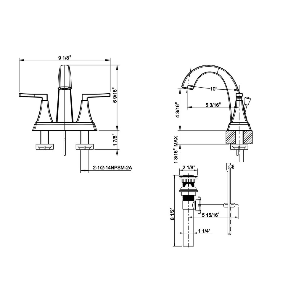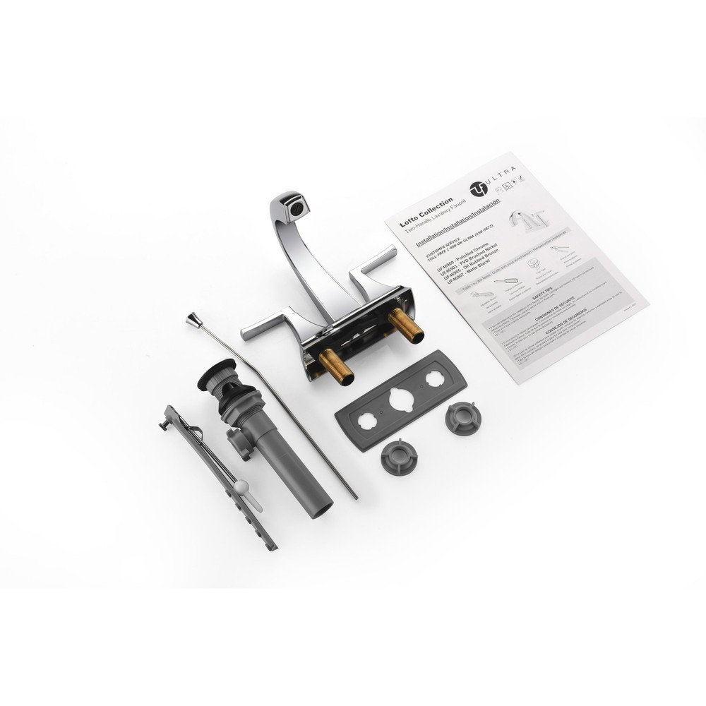 3-hole installation Yizhan 1/4" ceramic cartridge Non-metal lift pop-up assembly included Hybrid valve body 2-piece zinc spout with pert pipe waterway and Zinc handle Metal shank inlet with 1/2" male NPSM connection NEOPERL® coin-slot aerator 1.2gpm max @ 60psi Free Shipping Over $49.99* Details Ultra Faucets Lotto Collection Two-Handle 4" Centerset Lavatory Faucet Product Description: 3-hole installation Yizhan 1/4" ceramic cartridge Non-metal lift pop-up assembly included Hybrid valve body 2-piece zinc spout with pert pipe waterway and Zinc handle Metal shank inlet with 1/2" male NPSM connection NEOPERL® coin-slot aerator 1.2gpm max @ 60psi