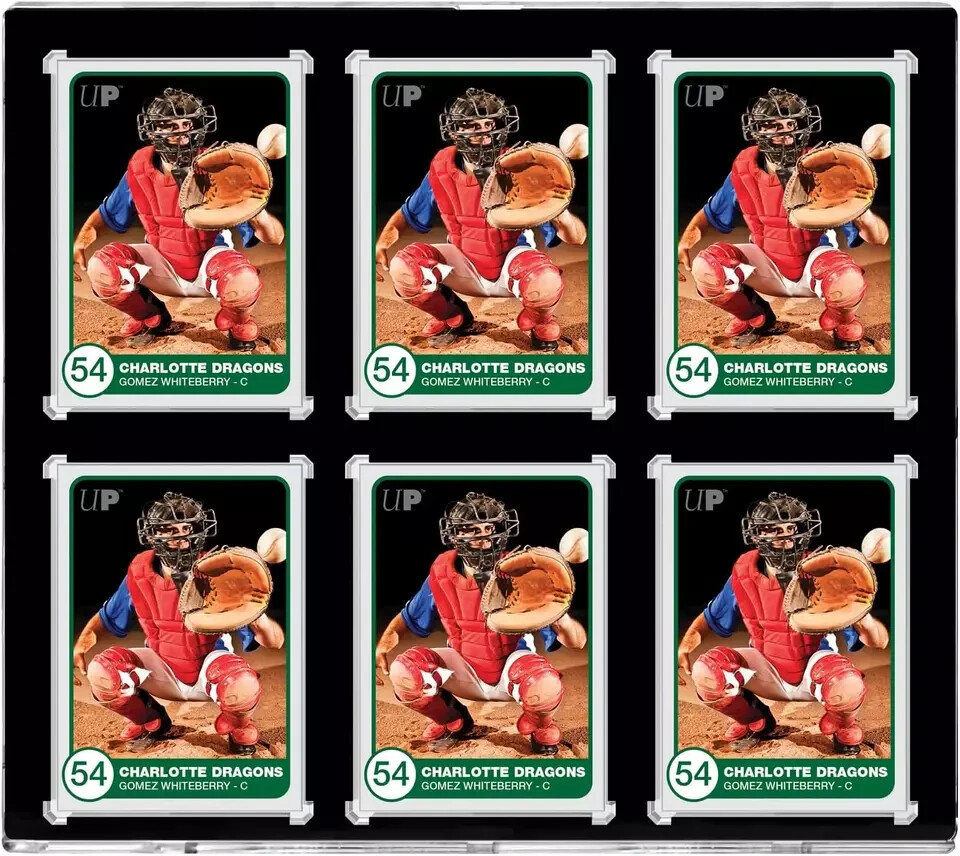 Ultra PRO - Black Border One-Touch 6 Graded Card Display Case, Show off & Protect (Standard Size) Graded Baseball Cards, Football Cards or Collectible Gaming Cards, Magnetic Closure & Uv-Resistant Description Age Range Description Adult Item Dimensions 0.39 x 0.12 x 1.97 inches Color Ultra Clear/Black Boarder Material Type Polypropylene Theme Sports Operation Mode Manual Sized to fit four standard size (2.5" x 3.5") sports trading cards or gaming cards up to 35pt in thickness Has sawtooth hanger on the top and side for displaying both vertical and horizontal format cards Made with non-PVC ultra clear materials with UV-blocking additives and diamond corners to keep card corners in mint condition Black border and ultra clear materials to show your card's true colors with premium presentation Slide-in hinge and magnetic closure keeps your card secure The 6-Card Black Border ONE-TOUCH display features a black border to perfectly frame your cards. Designed as the final destination for your collectible cards, our two-piece ONE-TOUCH holders are uniquely designed with a slide-in hinge and magnetic closure so you'll never have to use a screwdriver again. The holder provides UV-resistant, no-PVC, and acid-free protection to ensure your valuable hit retains its condition while under the display. Our ONE-TOUCH holders are ideal for presenting prized and super rare gaming cards as well. Has sawtooth hangers on the top and on the side of the display to allow displaying both vertical and horizontal format cards. This model can hold six standard cards (2-1/2" x 3-1/2") up to 35pt in thickness.