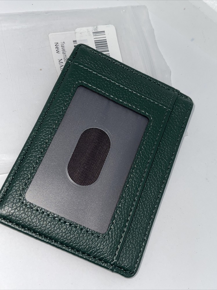 Ultra Slim Leather RFID Blocking Credit Card Holder Knight Green. Box 6