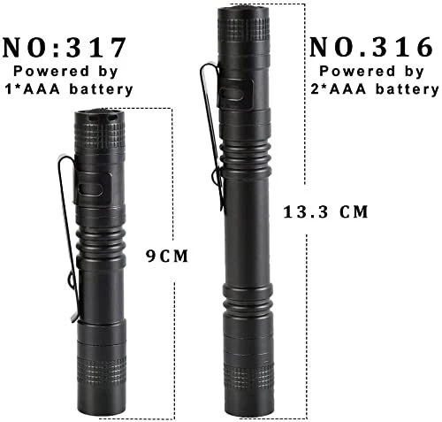 Portable mini size, shape like a pen, only 9cm length. Simply 1 switch mode lighting effect design The maximum output brightness can up to 900 lumen Comes with a clip, suitable for carrying around. Skid-proof, abrasion resistance and ordinary waterproof design