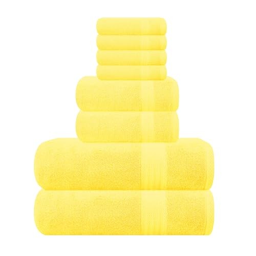 Ultra Soft 8-Piece Towel Set - 100% Pure Ringspun 8 Piece Towel Set Yellow