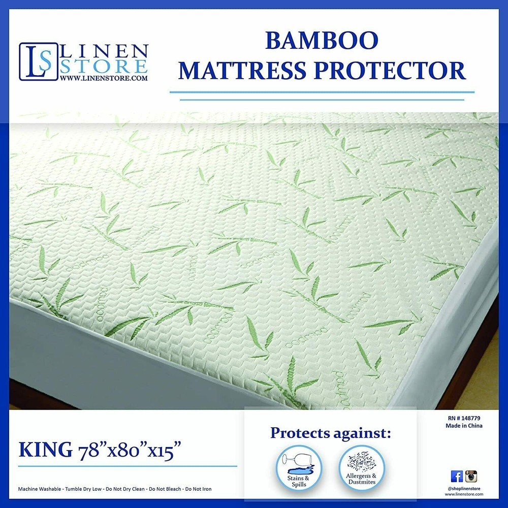 Keep your mattress safe and clean with this Premium Bambo Waterproof Mattress Cover! providing you with ultimate softness and comfort in your sleep. Made of premium bamboo fabric that is soft and breathable, the all-season friendly fabric blocks liquids but allows air to flow and wick away moisture to keep you fresh and cool all night and day. Bamboo is a super soft and naturally skin friendly material so you can sleep peacefully without worrying about runny eyes or stuffy nose. Fits perfectly and does not rustle or make noise to disrupt your sleep. This is especially helpful if you have children or elderly around. Easy to install, the cover goes on like a fitted sheet, wrapping right around your mattress and has deep pockets to make it easy to stretch and fit the base of your mattress. Free Shipping Over $49.99* Details Premium Ultra Soft Bamboo Mattress Protector Water Resistant Breathable Mattress Product Description: Keep your mattress safe and clean with this Premium Bambo Waterproof Mattress Cover! providing you with ultimate softness and comfort in your sleep. Made of premium bamboo fabric that is soft and breathable, the all-season friendly fabric blocks liquids but allows air to flow and wick away moisture to keep you fresh and cool all night and day. Bamboo is a super soft and naturally skin friendly material so you can sleep peacefully without worrying about runny eyes or stuffy nose. Fits perfectly and does not rustle or make noise to disrupt your sleep. This is especially helpful if you have children or elderly around. Easy to install, the cover goes on like a fitted sheet, wrapping right around your mattress and has deep pockets to make it easy to stretch and fit the base of your mattress. Fits mattresses up to 15 inches deep!. Available in 4 sizesTwin, Full, Queen and King. Here is a size guideTwin - 75" x 39", Full - 75" x 54", Queen - 80" x 60", King - 80" x 78". Features: ULTRA-SOFT PROTECTIONKeep your mattress feeling brand new for years with our bamboo fabric protector. QUIET & COOLINGThis stretchable fabric is designed to silently stay in place all night, even with movement in the bed. It's highly breathable and promotes air circulation, so you'll stay cool and clean while you sleep. WATERPROOFExpand the life of your mattress by making it resistant to sweat, liquid spills, stains, and urine from humans. Our special, double-layer membrane technology absorbs any mess to completely protect your mattress. PERFECT FITEasy to install, the cover goes on like a fitted sheet, wrapping right around your mattress and has deep pockets to make it easy to stretch and fit the base of your mattress. Fits mattresses up to 15 inches deep! Easy to Install & Clean. Machine washable.