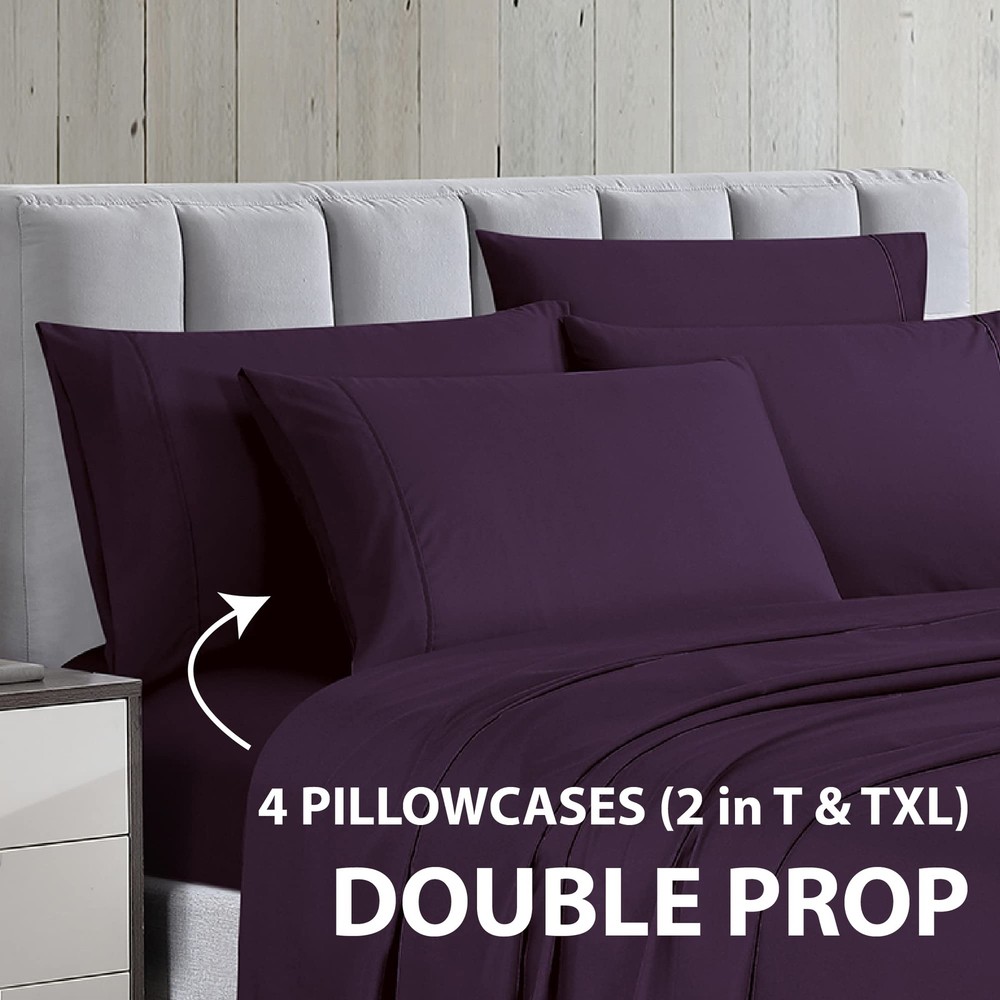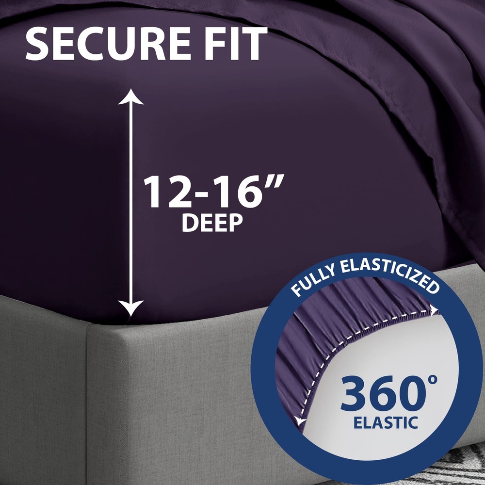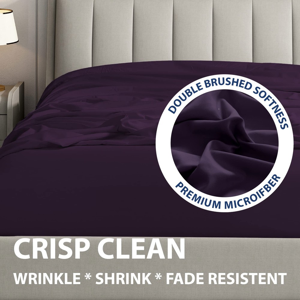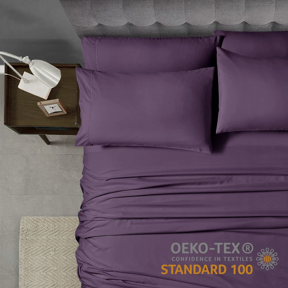 Composed of 100% polyester double brushed yarns for a crisp ironed look that is resistant and remain soft to the touch. Durable and long lasting, our ultra-thin sheet set comes in an array of neutral and vibrant colors that will not fade or shrink with every wash. You'll feel comfortable sleeping on them all night long. WHAT’S INCLUDED - Cal King Set Includes: 1 Fitted Sheet 72" x 84", 1 Flat Sheet 108" x 102", 4 Pillowcases 20" x 40". WHY WE LOVE THESE SHEETS: Whether curling up with a good book or drifting off to dreamland, our sheet set will provide the perfect touch of relaxation and style to your sanctuary. These luxurious, durable sheets are crafted from 100% microfiber polyester and double brushed for amazing softness to pamper you all night long and for years to come. Available in a wide range of vibrant colors, you can add a pop of personality to your bedroom while enjoying blissful sleep. *Microfiber is an umbrella term for ultra-fine synthetic fibers that are commonly made from polyester and polyamide. *Please bear in mind that due to the difference in lighting and monitor settings, the color of the actual product may vary slightly from what you see on screen. EASY FIT - The fitted sheet is fully elasticized with extra strength elastic and can easily accommodate mattresses between 10" - 14” thickness for a snug fit. EASY CARE - and fade resistant, these sheets are machine washable - cold with like-colors - and quick drying for easy care. OEKO-TEX CERTIFIED - Tested and certified to be free from harmful chemicals, the sheets meet high safety standards.