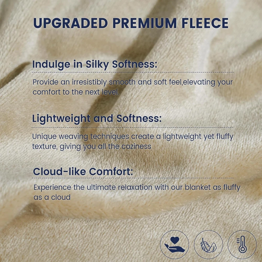 Store New Arrivals Add to Favorite View Feedback Contact Ultra Soft Fleece Blanket Queen Size No Shed No Pilling Plush 90" X 90" Khaki Description Age Range Description Adult,Teenager Style Modern Number of Items 1 Pattern Solid Material Type Fleece Blanket Form Throw Blanket Theme Plain Unit Count 1 Count Fabric Type Fleece,flannel Material Fleece Seasons All Sport Type Camping Special Feature Soft,Lightweight,Durable Item Dimensions L x W 90"L x 90"W Fabric Warmth Description Lightweight Color Khaki Product Care Instructions Machine Wash Recommended Uses For Product Backpacking Style Name Modern Upgraded Softness & Coziness: This plush blanket is made of 300GSM upgraded microfleece-each fiber contains 160 count sub-fiber, obviously of higher density than normals. The length of each fiber is 6mm, 1mm longer than normals-Upgrade microfleece material offers wool-like luxurious feeling and features better warmth, softness and breathability. Our blanket is perfect by itself for daily use or as an extra sheet on cold nights, offering extreme comfort and fresh sleeping experience all year round Lightweight & Thickness: Indulge in ultimate comfort with this flannel fleece blanket - perfect weight and warmth balance offers lightweight feel, while remaining ultra-soft and airy, Its gentle and calming touch will provide you with a cozy snuggle whenever you need it. Versatile Blanket: This blanket is not only for adults, but also for children and pets, because it does not contain any heavy metal and harmful chemicals such as phthalates, non polluting and recyclable, and is totally skin-friendly. This fleece blanket can be used as a sofa and bed blanket, bedspreads or bed layering. It is also suitable for outdoor use like going picnic,traveling, backpacking or just when you nap in your office or carry it in cars. Easy Care: Machine wash cold with like colors. Gentle cycle. Do not bleach. Tumble dry low. Remove promptly from dryer to avoid wrinkles.Cool iron if required. No pilling, no shrink, no fade, labor tests show that the throw blanket keep its shape and stay brands new after multiple wash cycles. Package Include: Flannel Fleece Blanket Queen Size(90" X 90"), perfect for bed couch sofa, essential daily use blanket and home decoration. Product Description Premium Material: Made of 100% microfleece, a suitable alternative to wool with comparable warmth, yet without the scratchiness, our flannel blanket is ultra soft, cozy, lightweight, breathable and skin-friendly for all people. No worry about any skin irritations. Easy Care Machine wash cold with like colors. Gentle cycle. Do not bleach. Tumble dry low. Remove promptly from dryer to avoid wrinkles.Cool iron if required. No pilling, no shrink, no fade. ABOUT US We offer the best prices around on high quality products. Our E-store includes media such as books, movies, music and games while offering electronics, toys, sporting apparel, clothing, tools, general home, garden items and more. SHIPPING We are always working hard to ensure your package arrives as soon as possible. Please understand that some factors like weather, high postal traffic, and the performance of shipping companies are outside of our control. We offer free shipping to the lower 48 states and ship within 2 business days of payment, usually sooner. We do not accept P.O. Boxes. Please provide a physical address. RETURNS We offer a 30-Day Return Policy on items which you are not completely satisfied with. You have the option for a full-refund or an exchange of the item. No returns are available on items shipped outside of the USA. PAYMENT We accept PayPal. CONTACT US This page content is yet to come Please ad us to your favorite seller and visit again later Thank You CUSTOMER SATISFACTION We try our very best to make sure every customer is completely satisfied. If there's a problem, message us! We're happy to help.