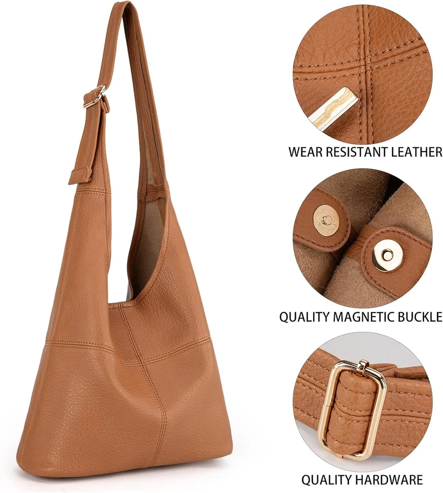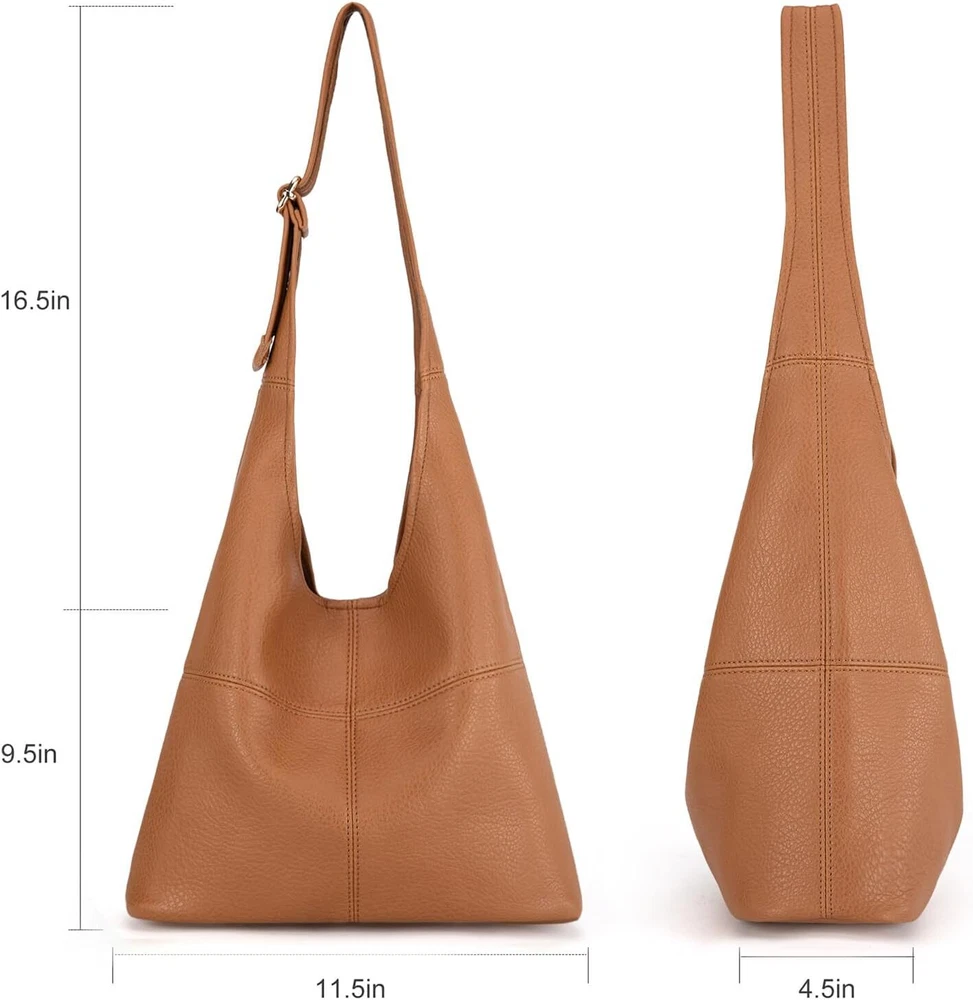 Stylish Hobo Bags for Women: This slouchy hobo bag exudes chic style with its soft, vegan leather, unlined design. The spacious interior features a convenient pouch for extra storage. Handbags with Magnetic Closure: Featuring a magnetic closure, this handbag provides easy access to your essentials while keeping them secure. Its roomy design makes it ideal for everyday use. Shoulder Bag with Adjustable Strap: The wide and adjustable shoulder strap ensures a comfortable fit, allowing you to carry it on your shoulder easily. Its slouchy, relaxed silhouette adds a touch of laid-back elegance. Perfect for Any Occasion: This small yet practical shoulder bag is perfect for work, weekends, and everything in between. Whether you’re heading to the office, running errands, or enjoying a casual day out, it complements any outfit and occasion. Great Gift Choice: Measuring 11.5"x4.5"x9.5" with a 16.5" drop, this handbag combines style and practicality. It makes a thoughtful gift for anniversaries, Christmas, Valentine's Day, birthdays, or any special event